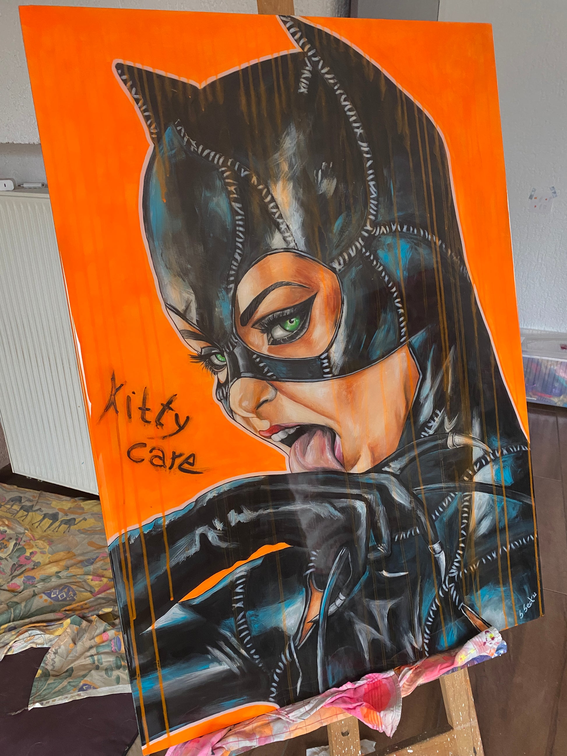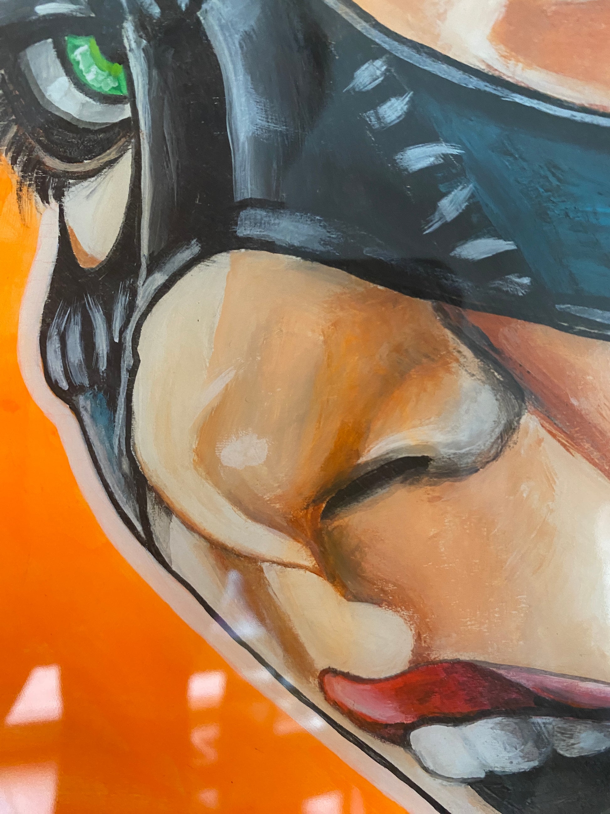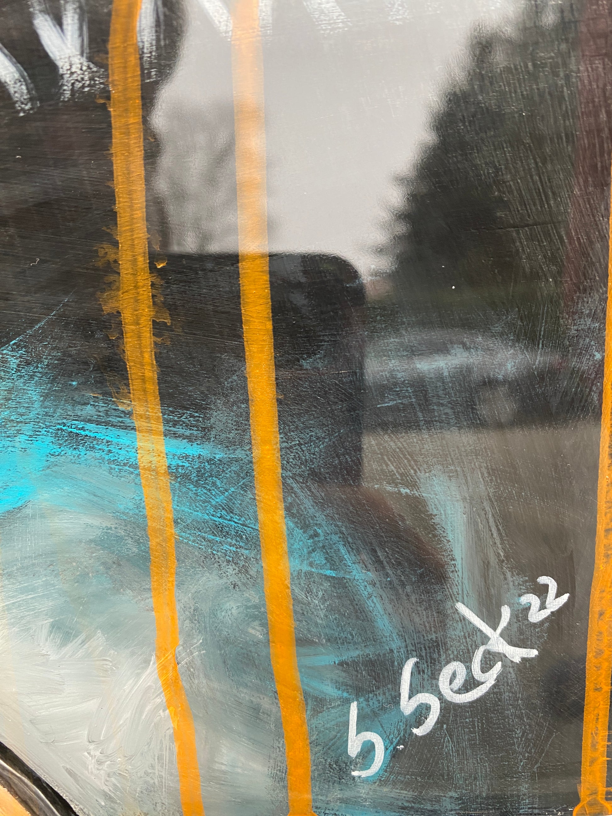 Das Werk wurde auf einer Holzleinwand mit Acryl gemalt und mit UV-beständigen Epodex-Resin überzogen.
