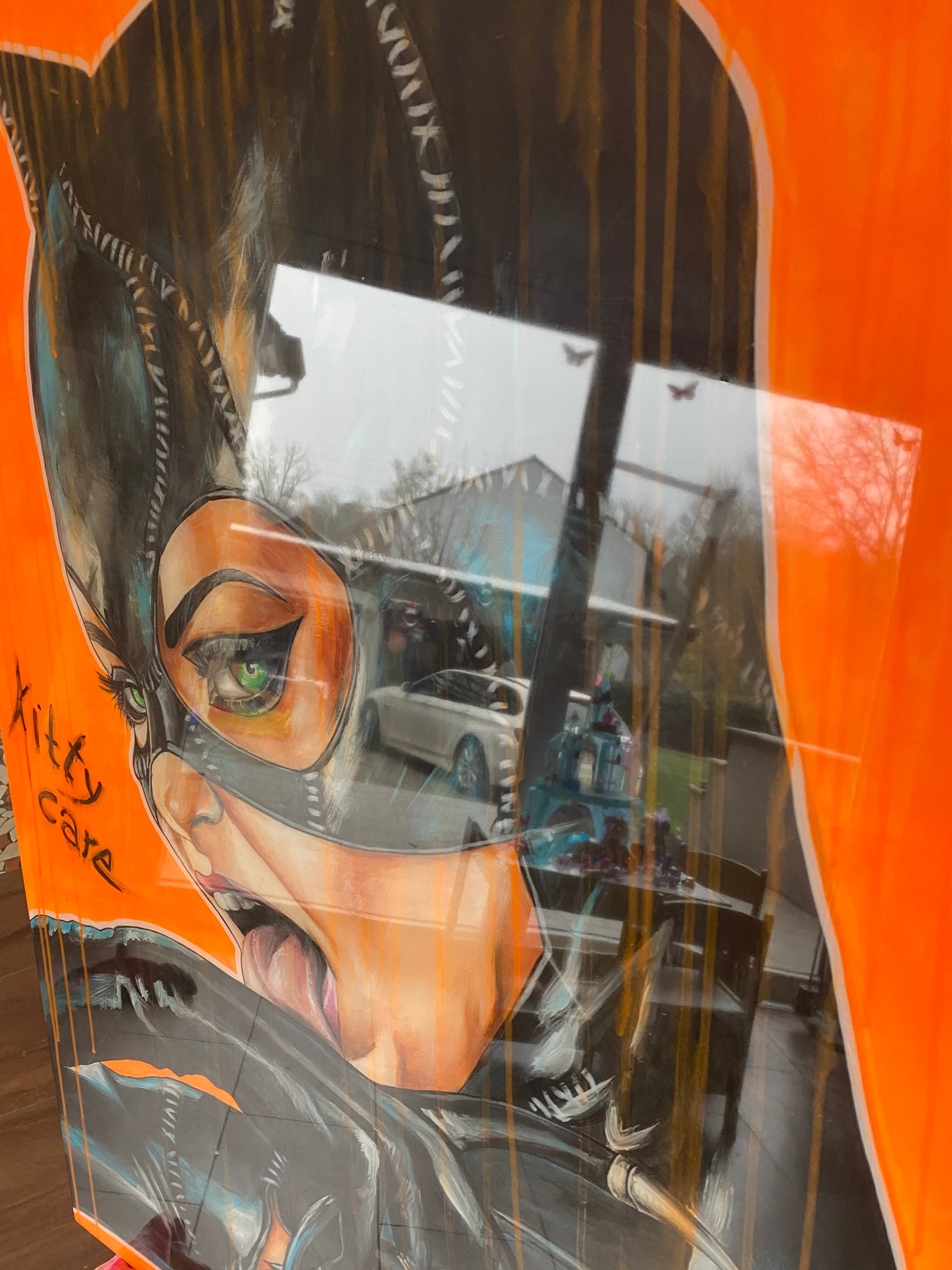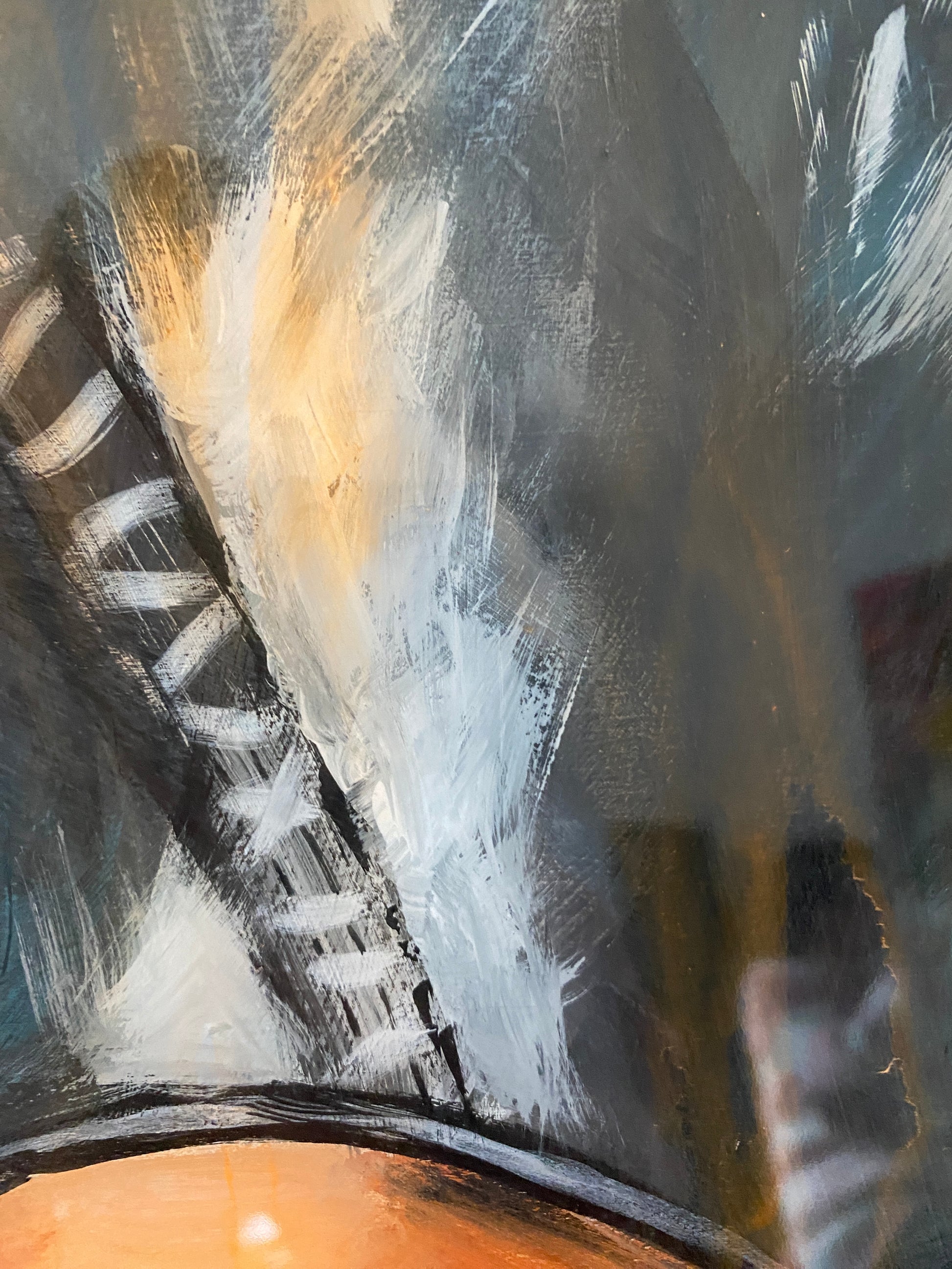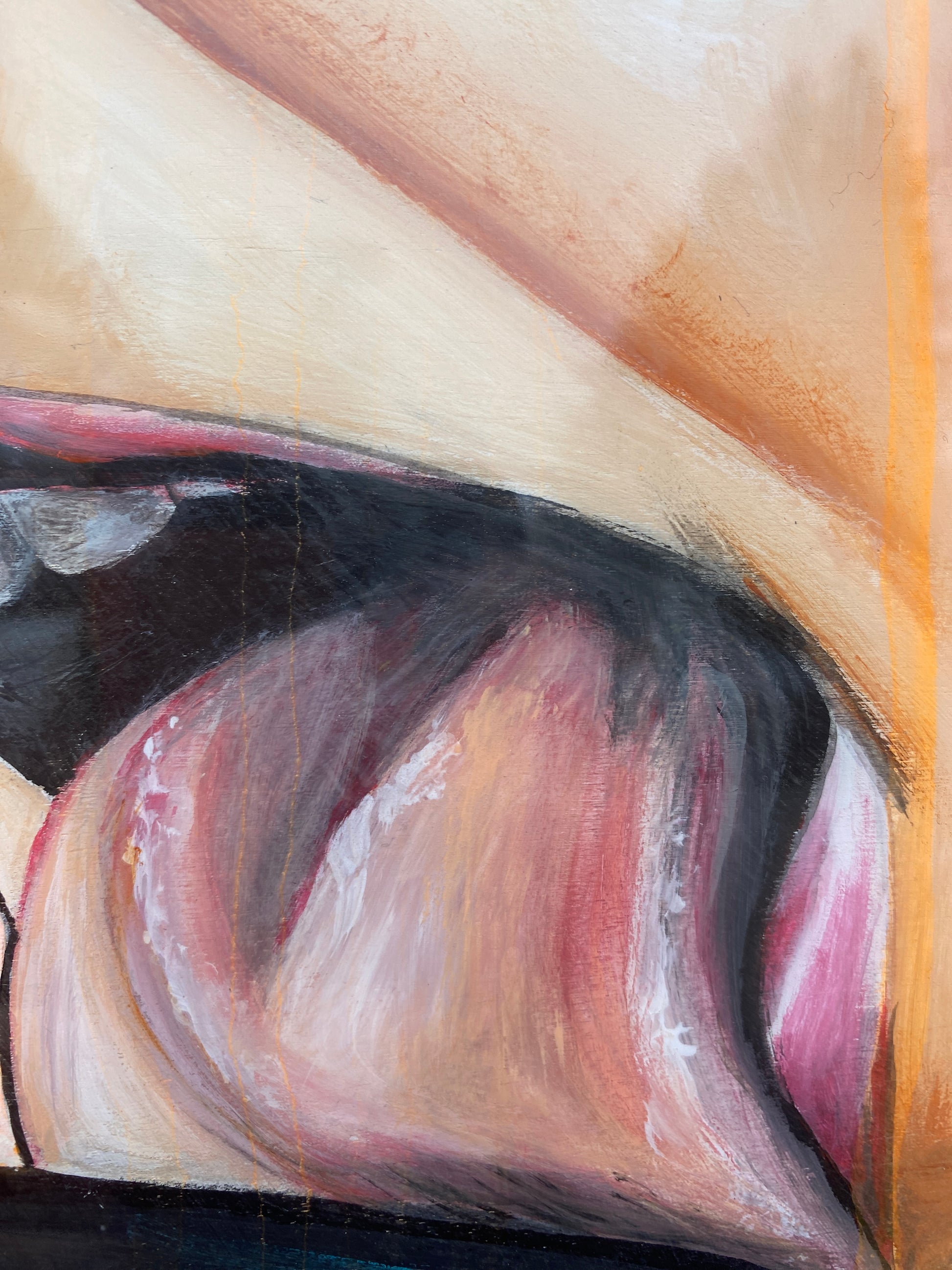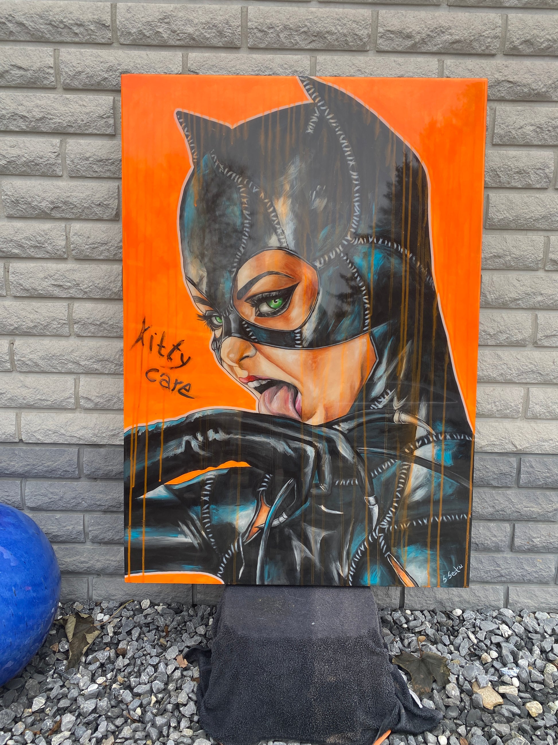 Das Werk wurde auf einer Holzleinwand mit Acryl gemalt und mit UV-beständigen Epodex-Resin überzogen.