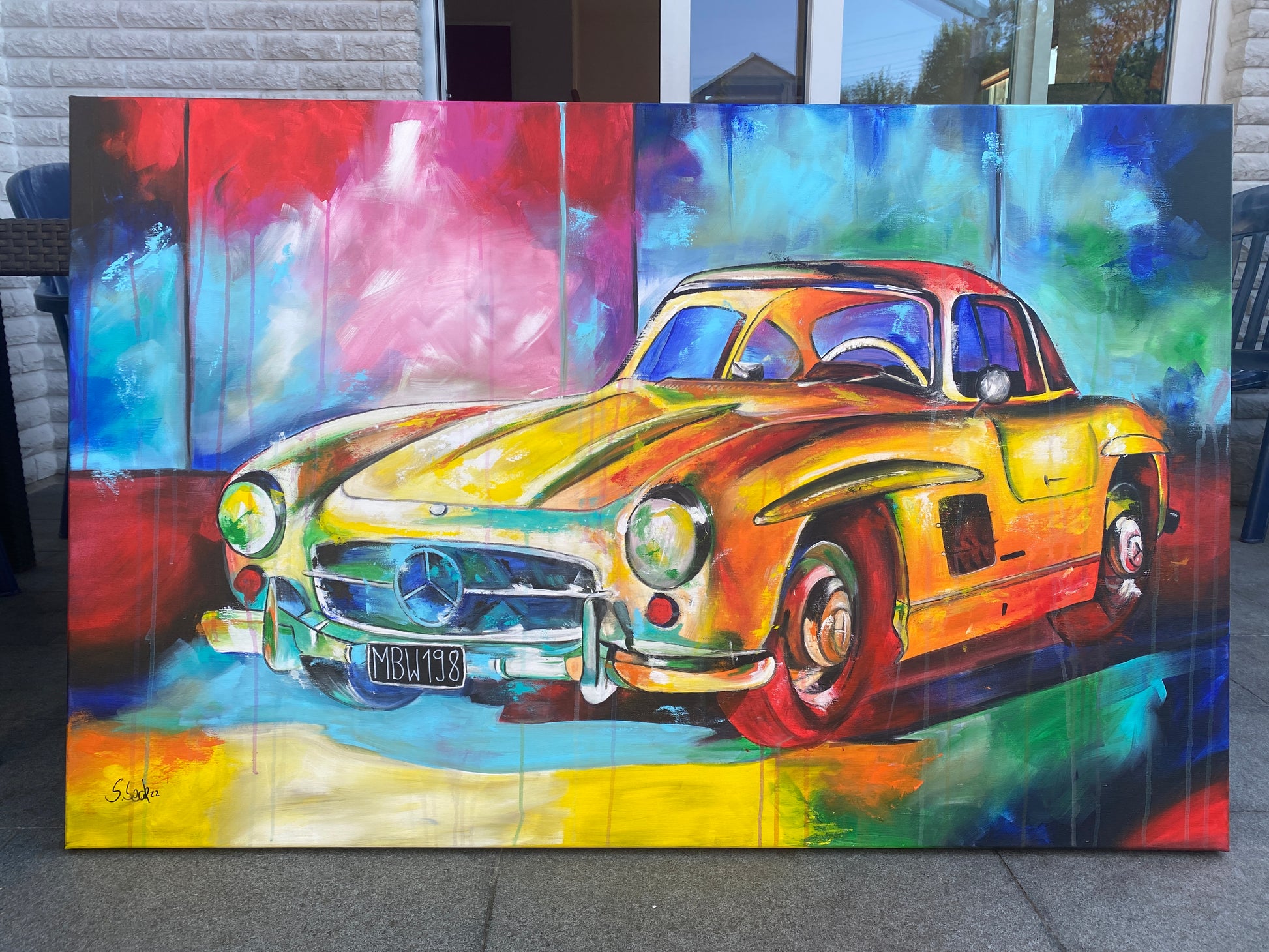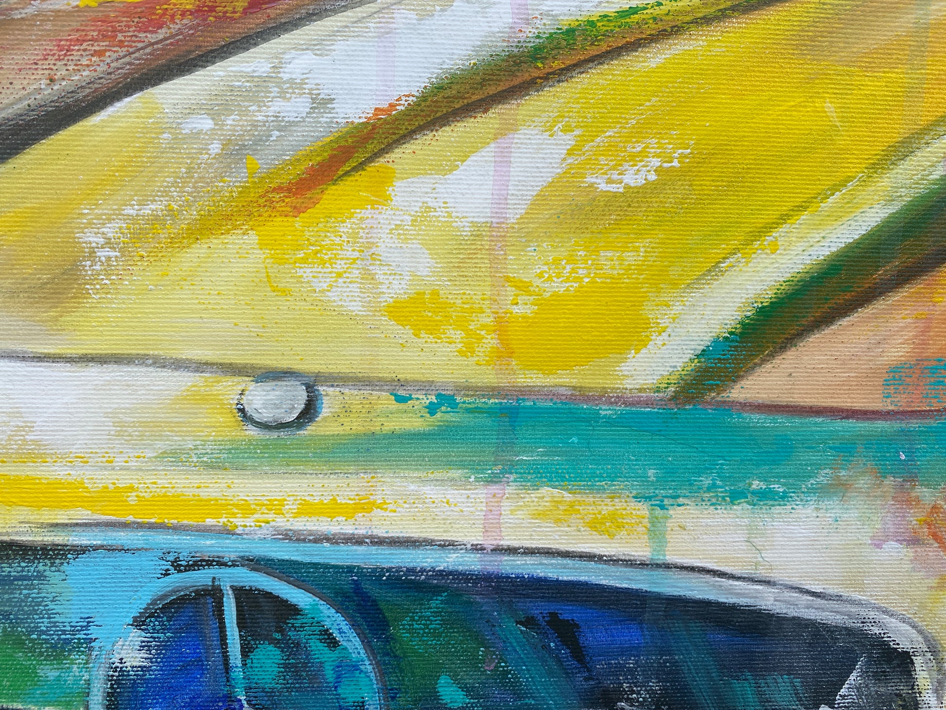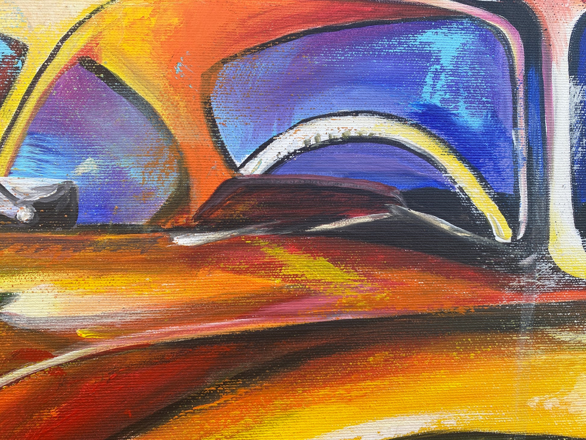 Mit diesem Werk habe ich die Energie und Eleganz des Wagens eingefangen, indem ich lebendige Farben und kraftvolle Pinselstriche kombiniere. Die Mischung aus Expressionismus, Pop Art und Realismus bringt den Klassiker in ein neues Licht und lässt ihn fast lebendig wirken. Dieses Bild bringt Schwung, Nostalgie und Lebensfreude in jeden Raum – ein leidenschaftliches Zusammenspiel von Bewegung und Stil.