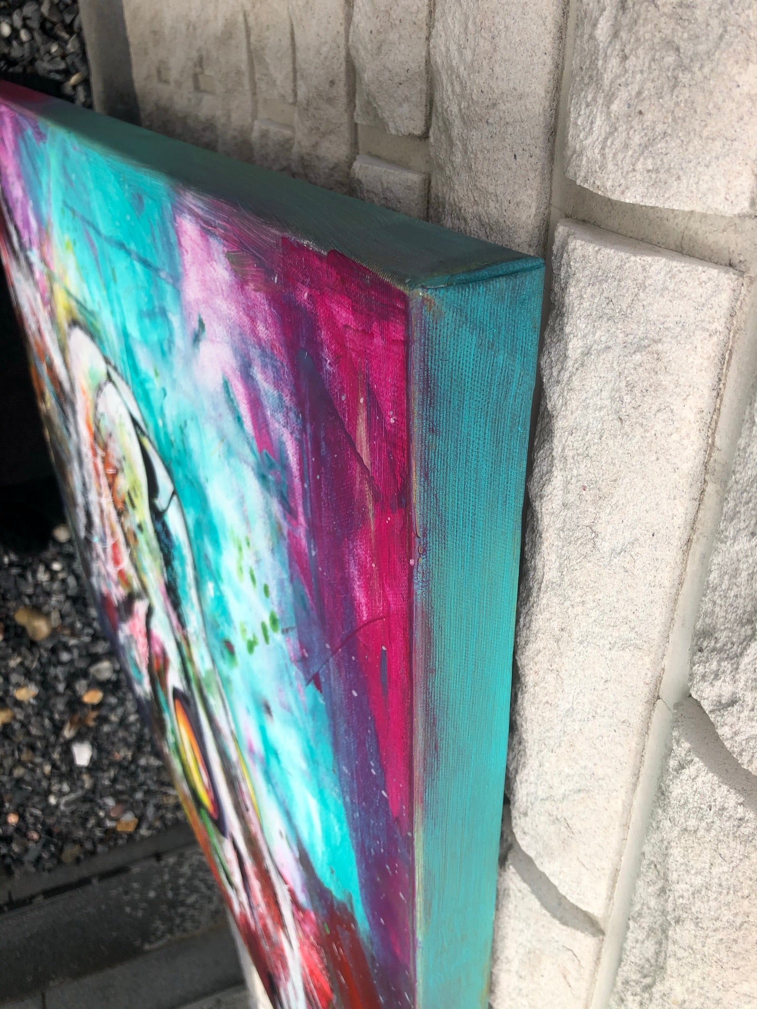 Ränder bemalt, somit ein sofortiges Aufhängen möglich.