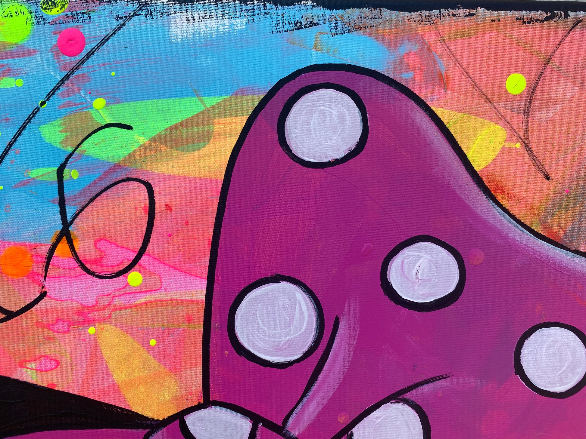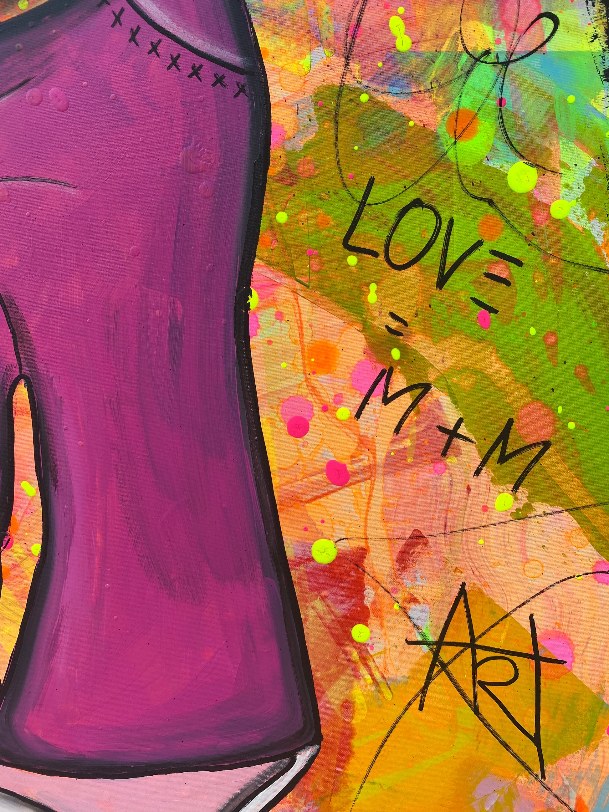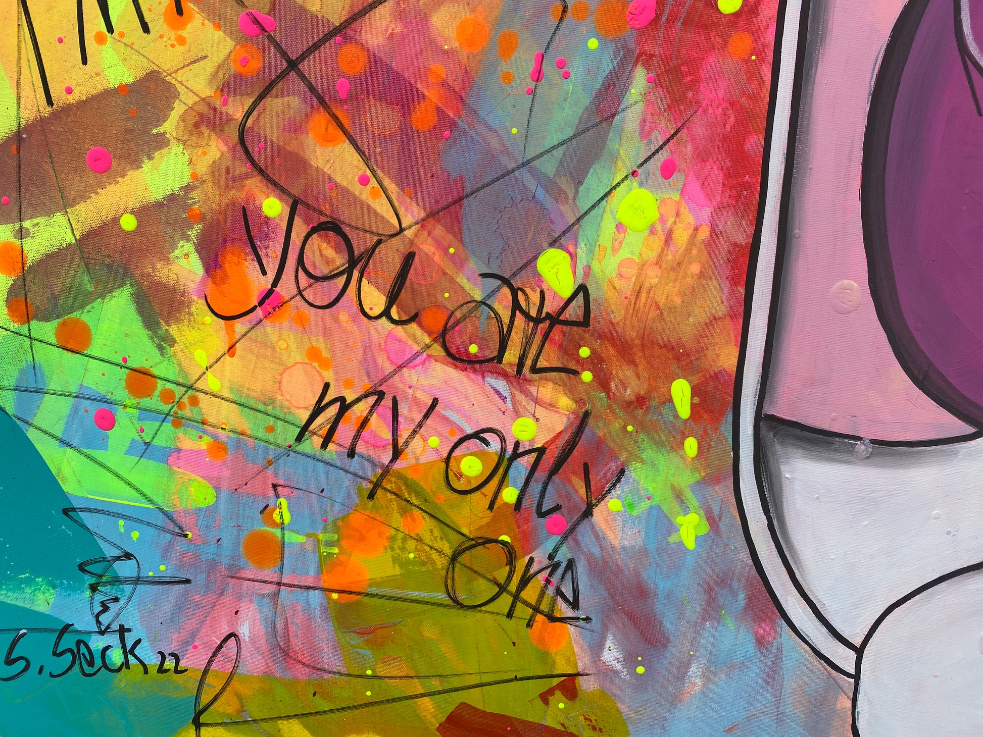 Mit Acryl auf Leinwand gemalt, die auf einem Keilrahmen aufgezogen ist.