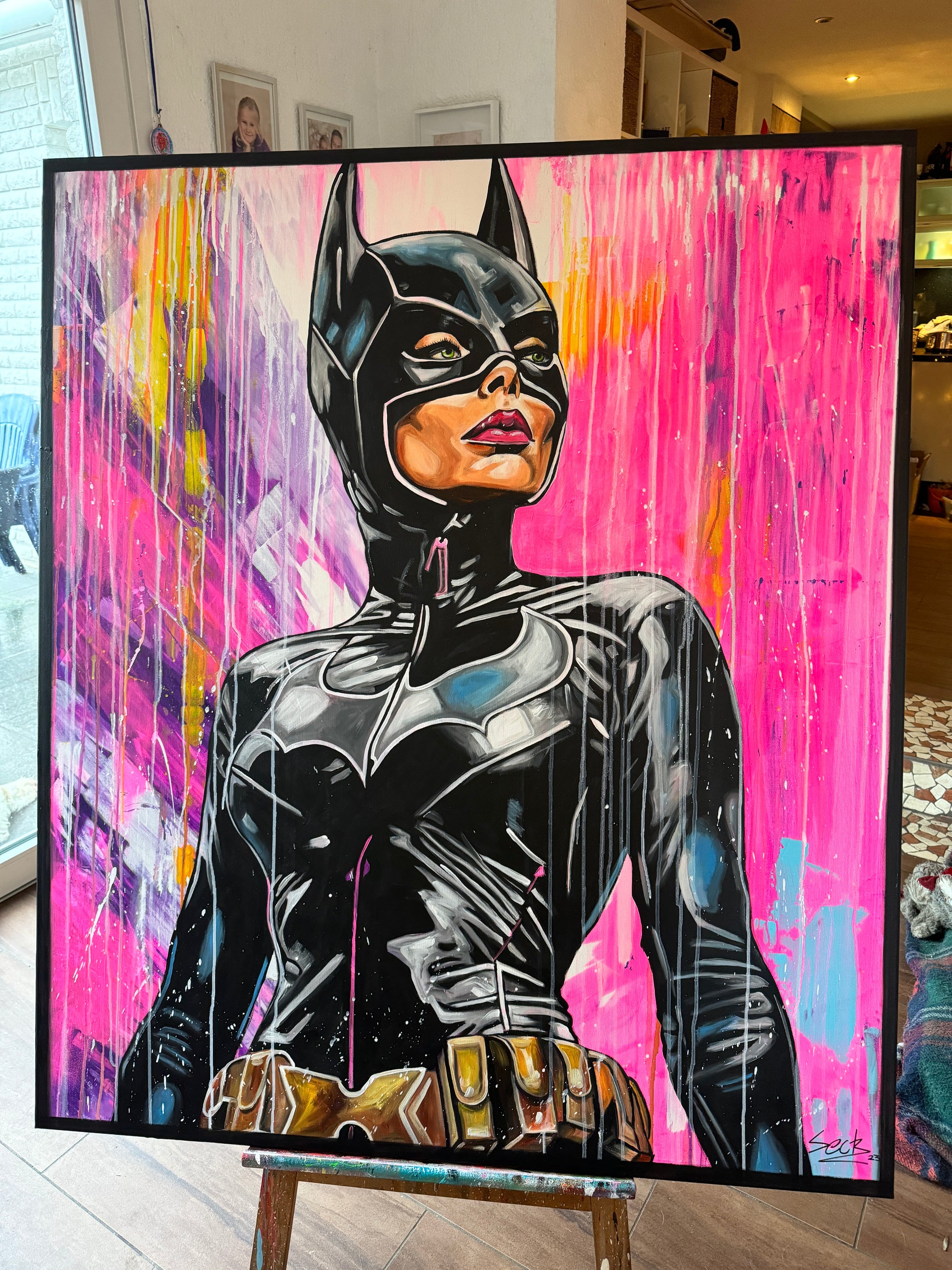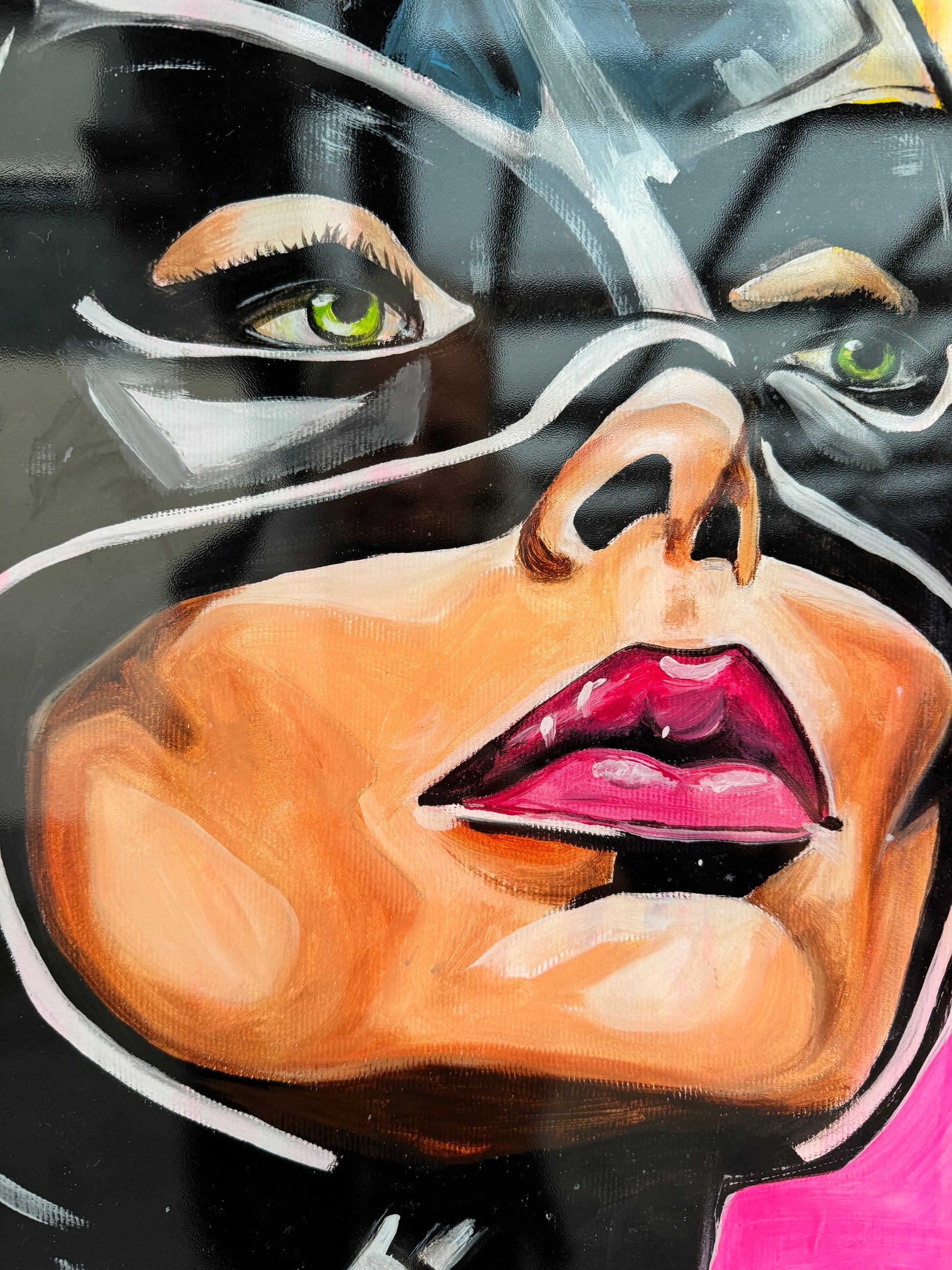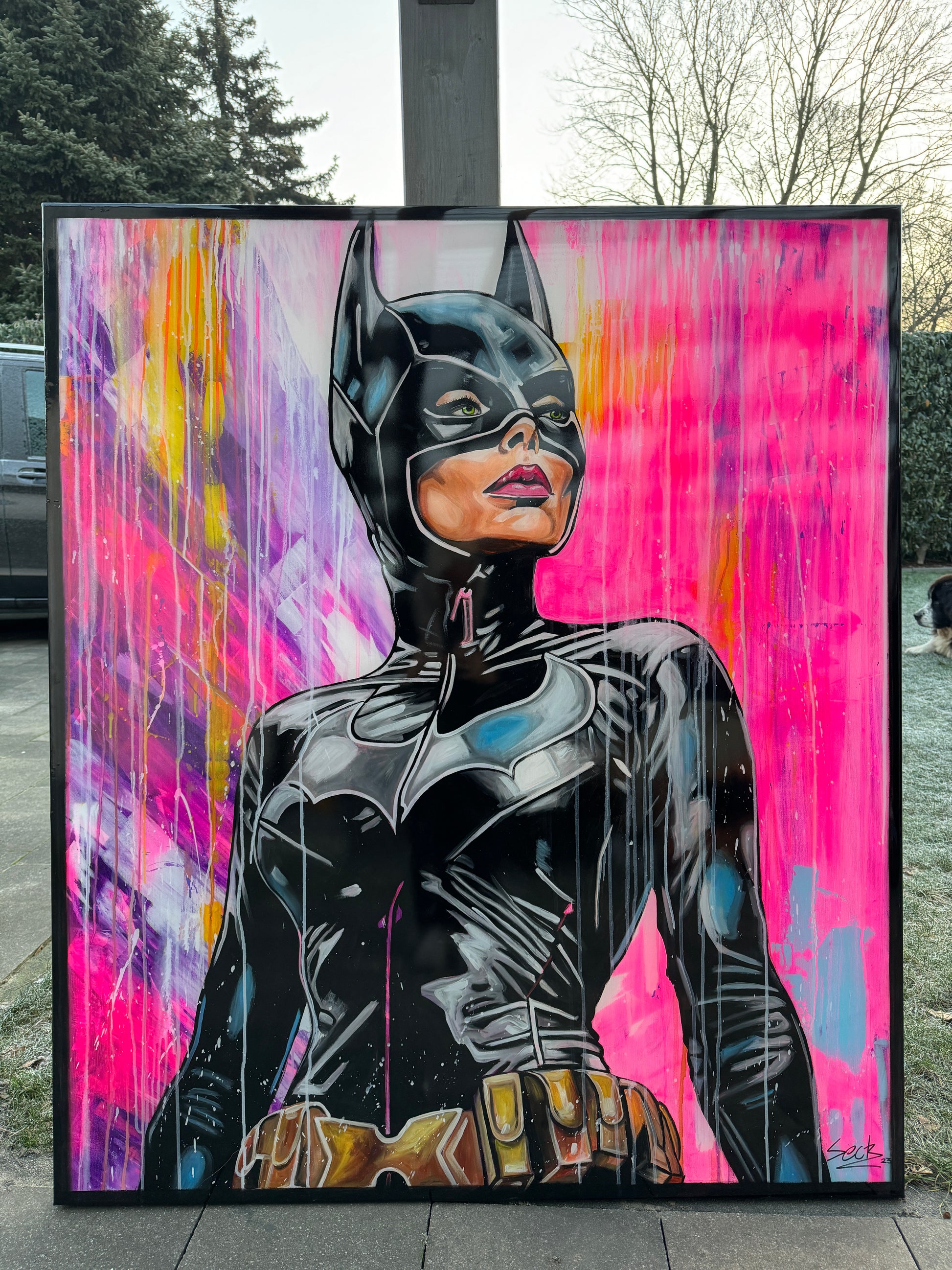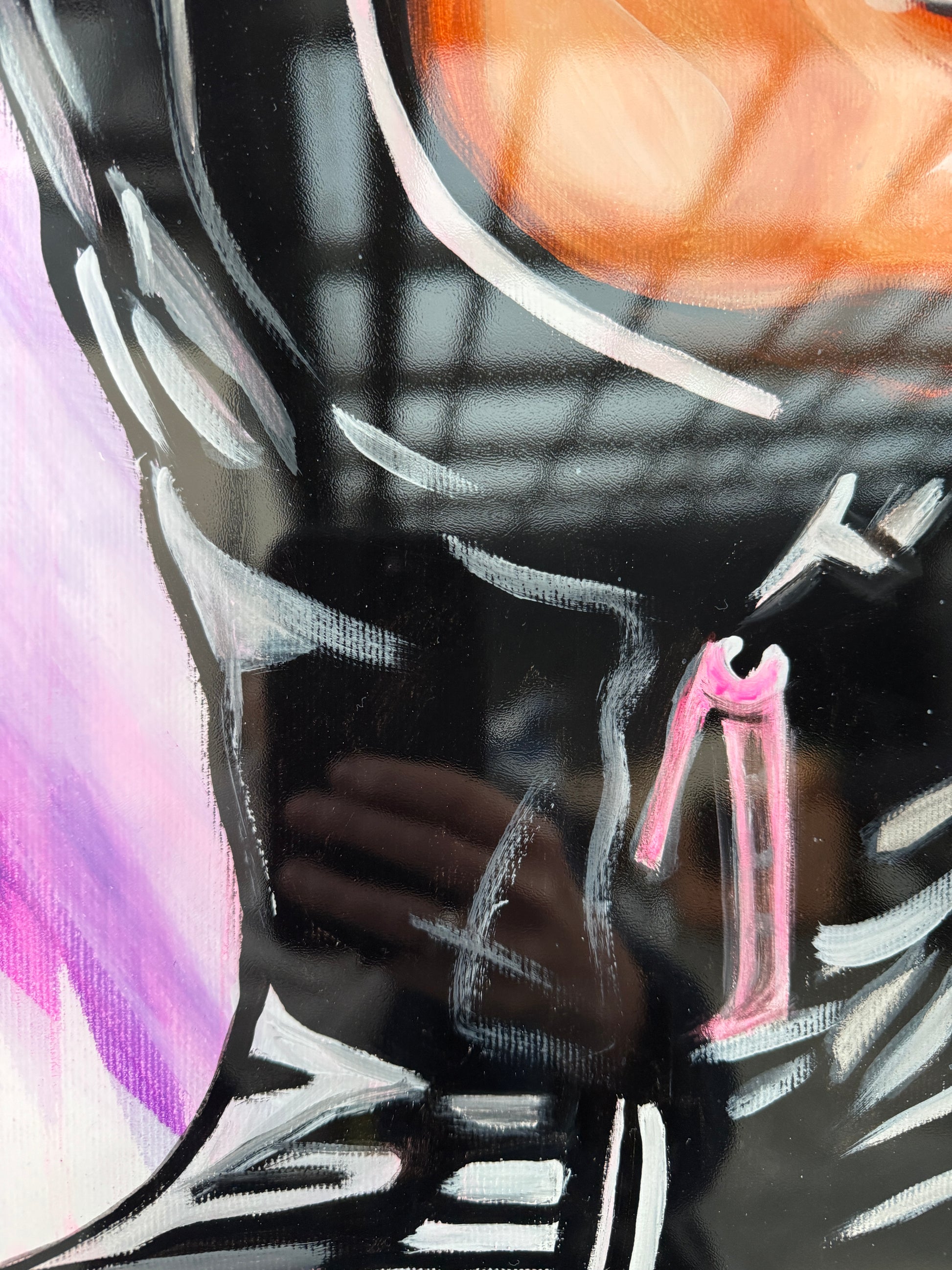 In meinem Kunstwerk habe ich die lebendigen Farben der Acrylmalerei mit der Tiefe des Harzes verbunden, um ein kräftiges, dynamisches Bild zu schaffen. Inspiriert von Comics und Pop-Art, verbindet die Darstellung ein realistisches Gefühl mit der fantastischen Welt der Figuren. Diese leuchtende Energie wird Ihrem Raum ein Gefühl von Mut und eine Atmosphäre der Faszination verleihen.