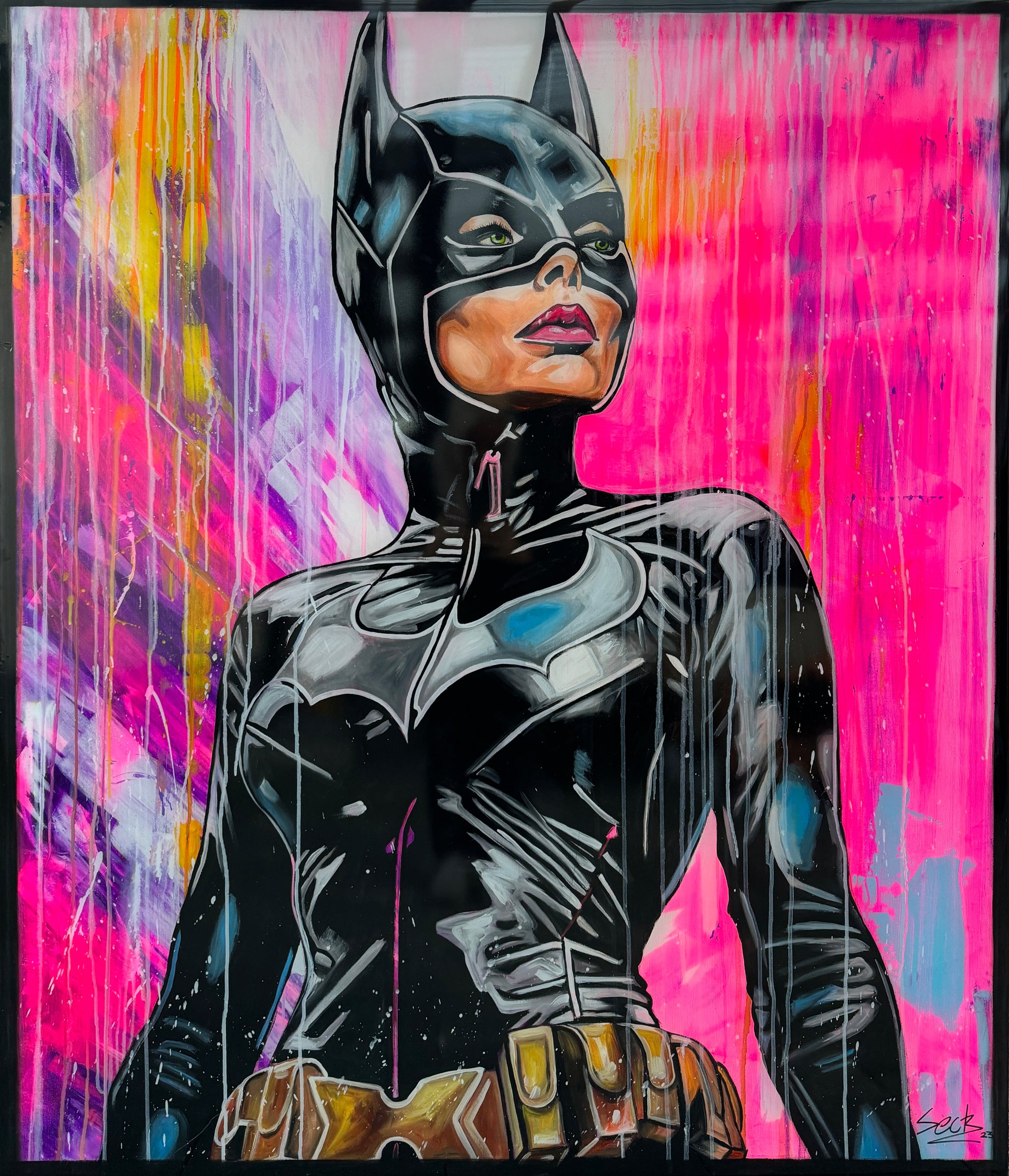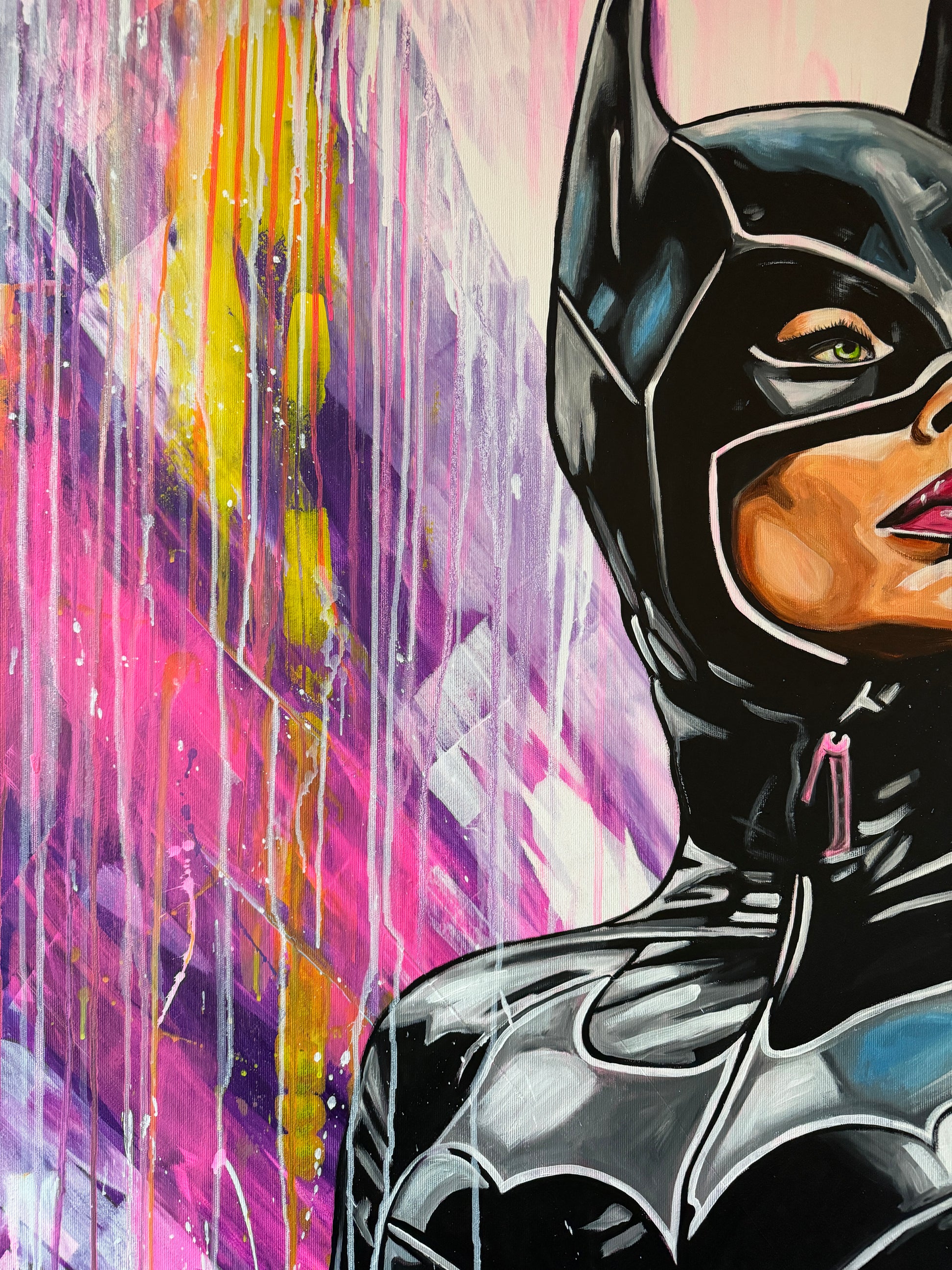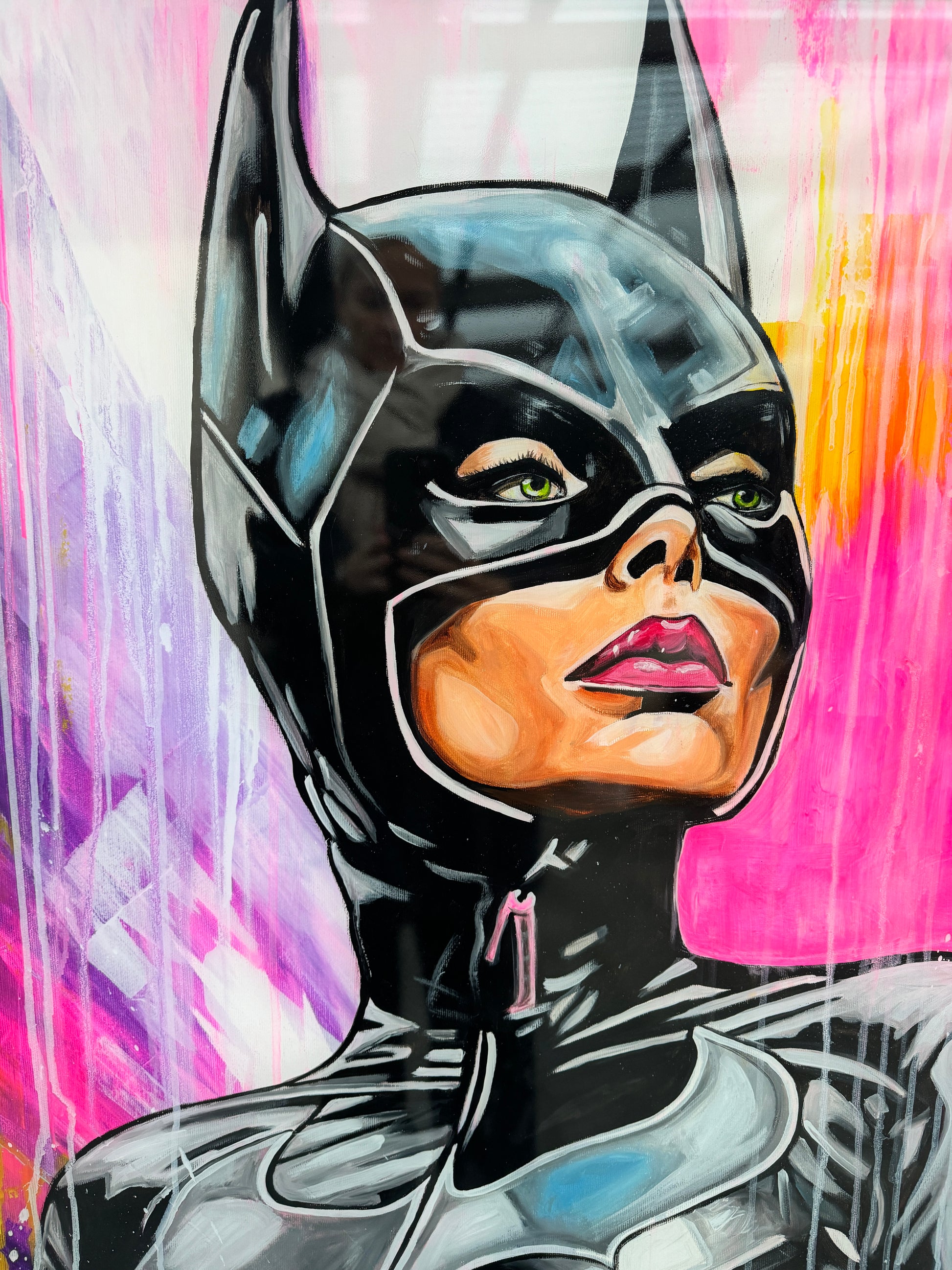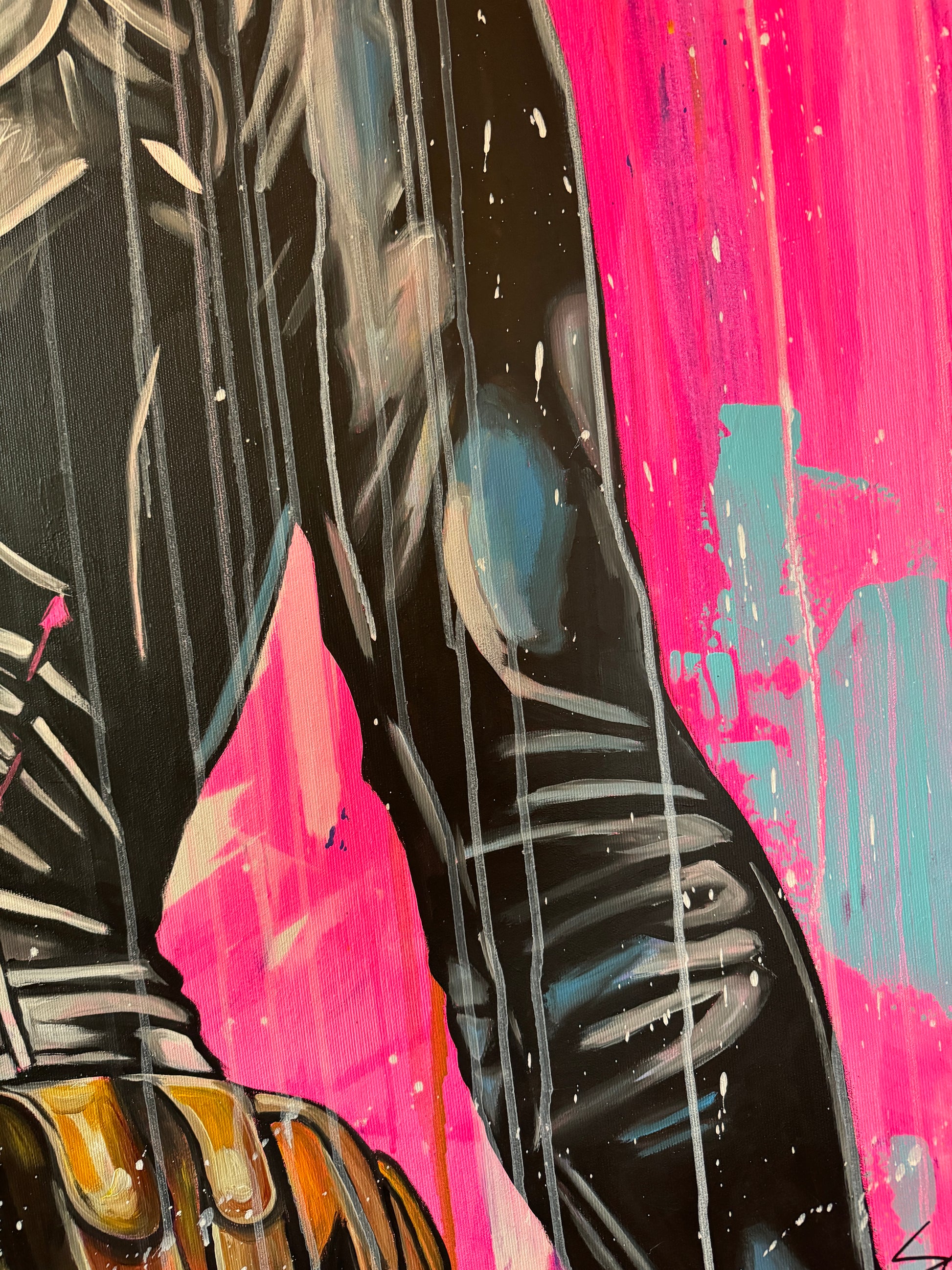 In meinem Kunstwerk habe ich die lebendigen Farben der Acrylmalerei mit der Tiefe des Harzes verbunden, um ein kräftiges, dynamisches Bild zu schaffen. Inspiriert von Comics und Pop-Art, verbindet die Darstellung ein realistisches Gefühl mit der fantastischen Welt der Figuren. Diese leuchtende Energie wird Ihrem Raum ein Gefühl von Mut und eine Atmosphäre der Faszination verleihen.