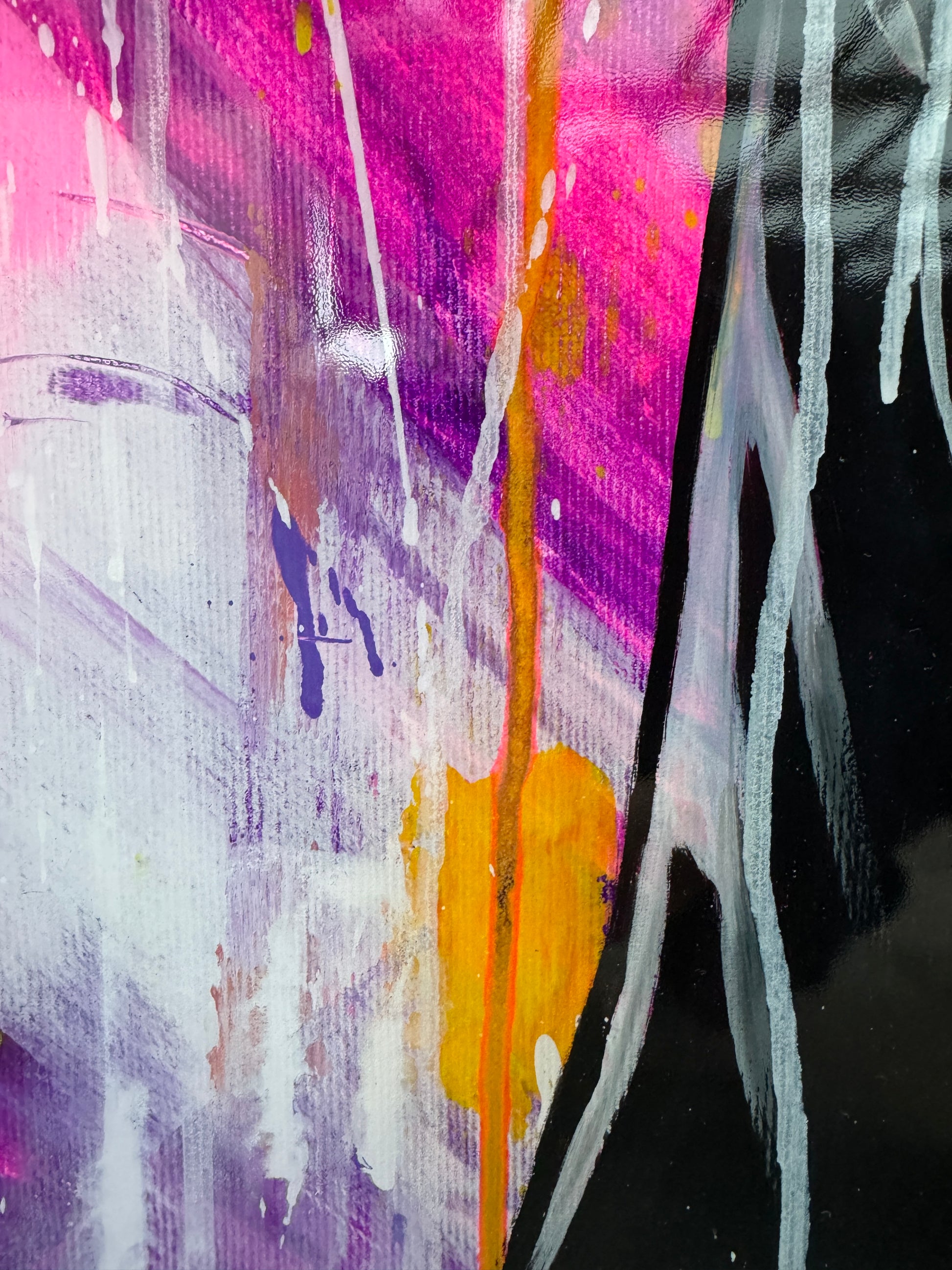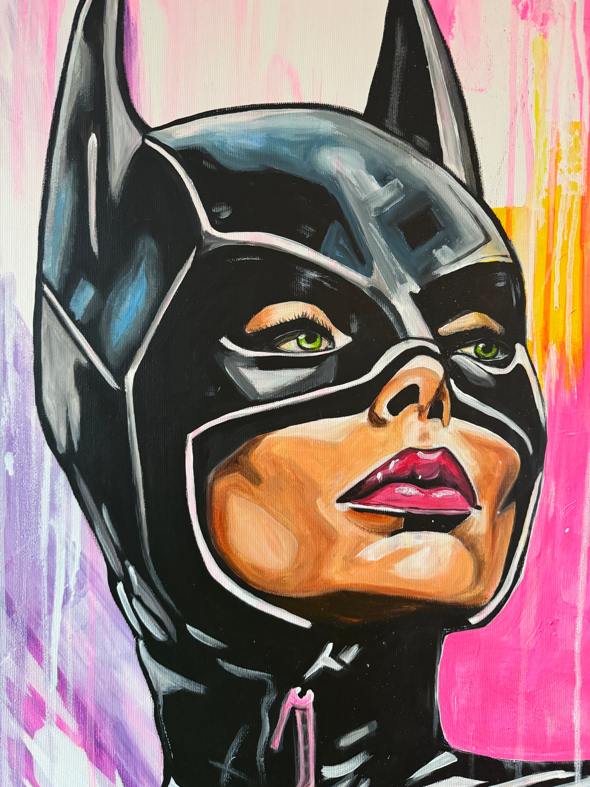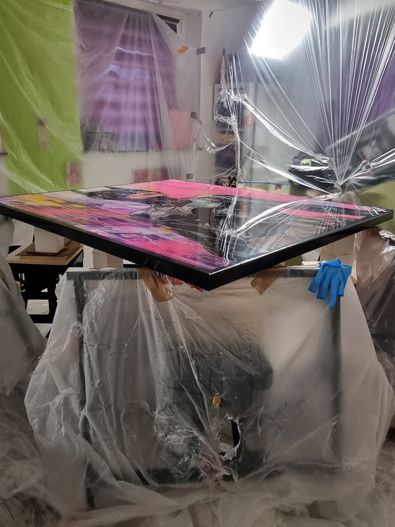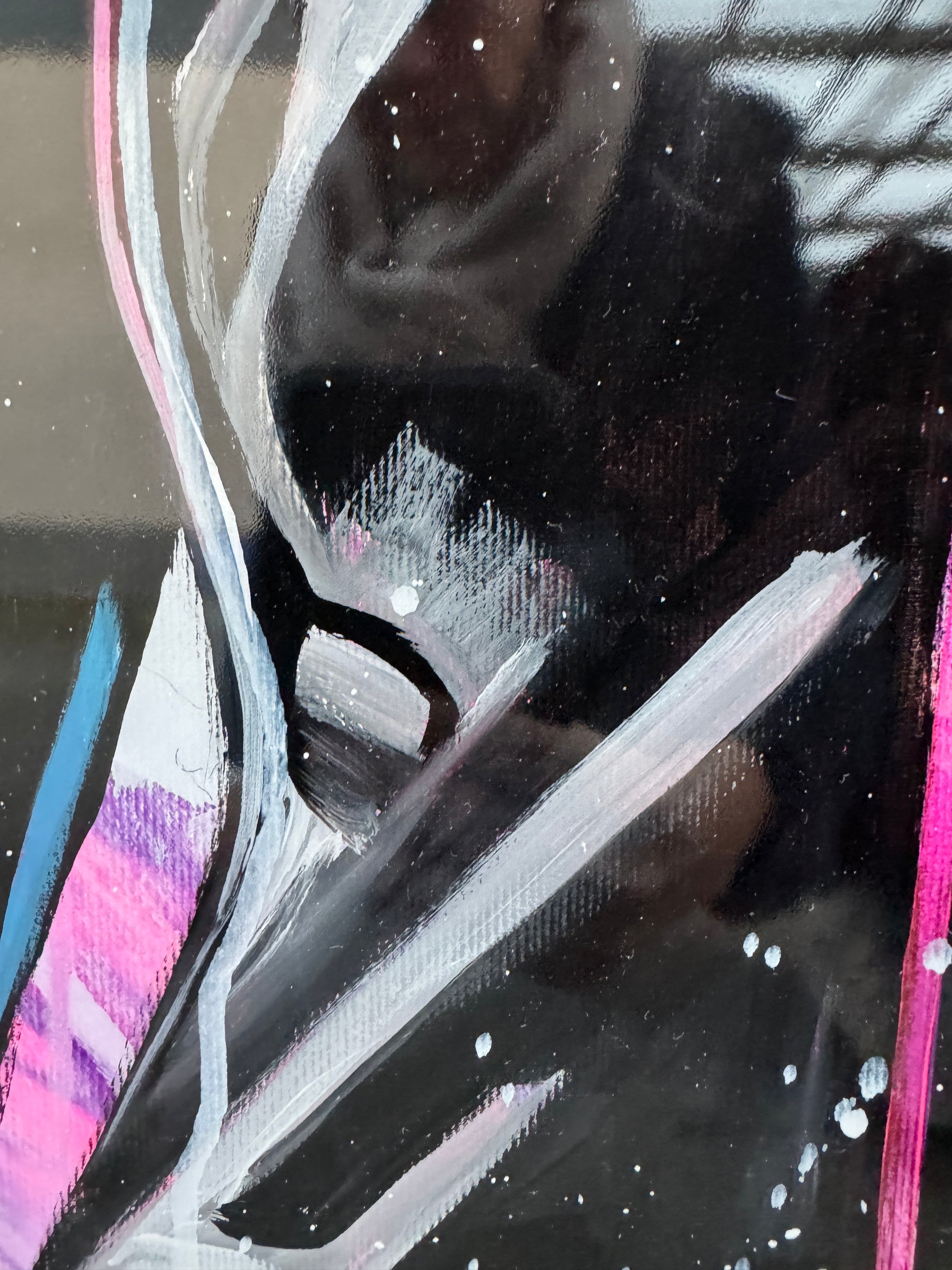 In meinem Kunstwerk habe ich die lebendigen Farben der Acrylmalerei mit der Tiefe des Harzes verbunden, um ein kräftiges, dynamisches Bild zu schaffen. Inspiriert von Comics und Pop-Art, verbindet die Darstellung ein realistisches Gefühl mit der fantastischen Welt der Figuren. Diese leuchtende Energie wird Ihrem Raum ein Gefühl von Mut und eine Atmosphäre der Faszination verleihen.
