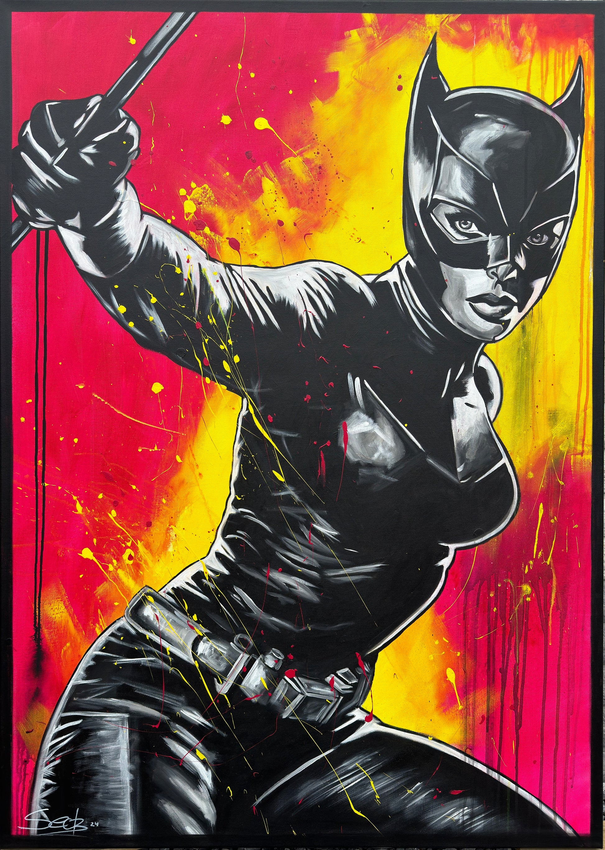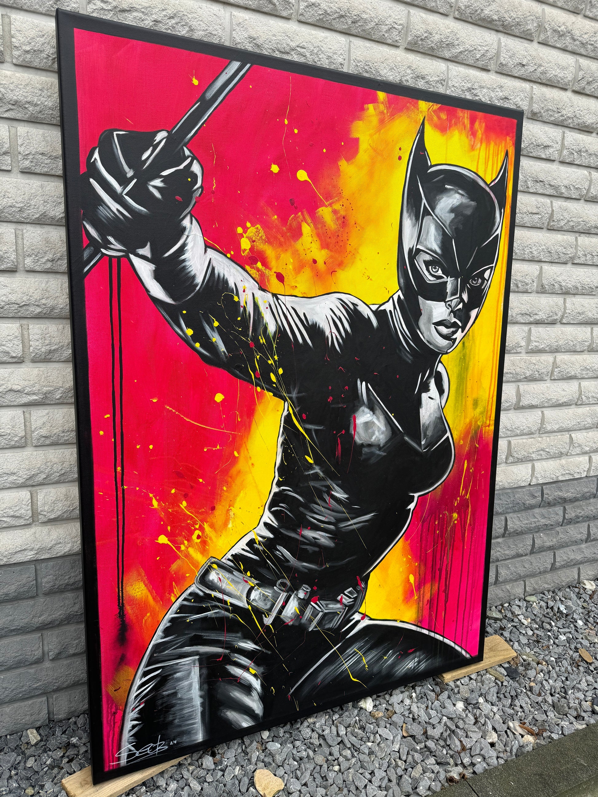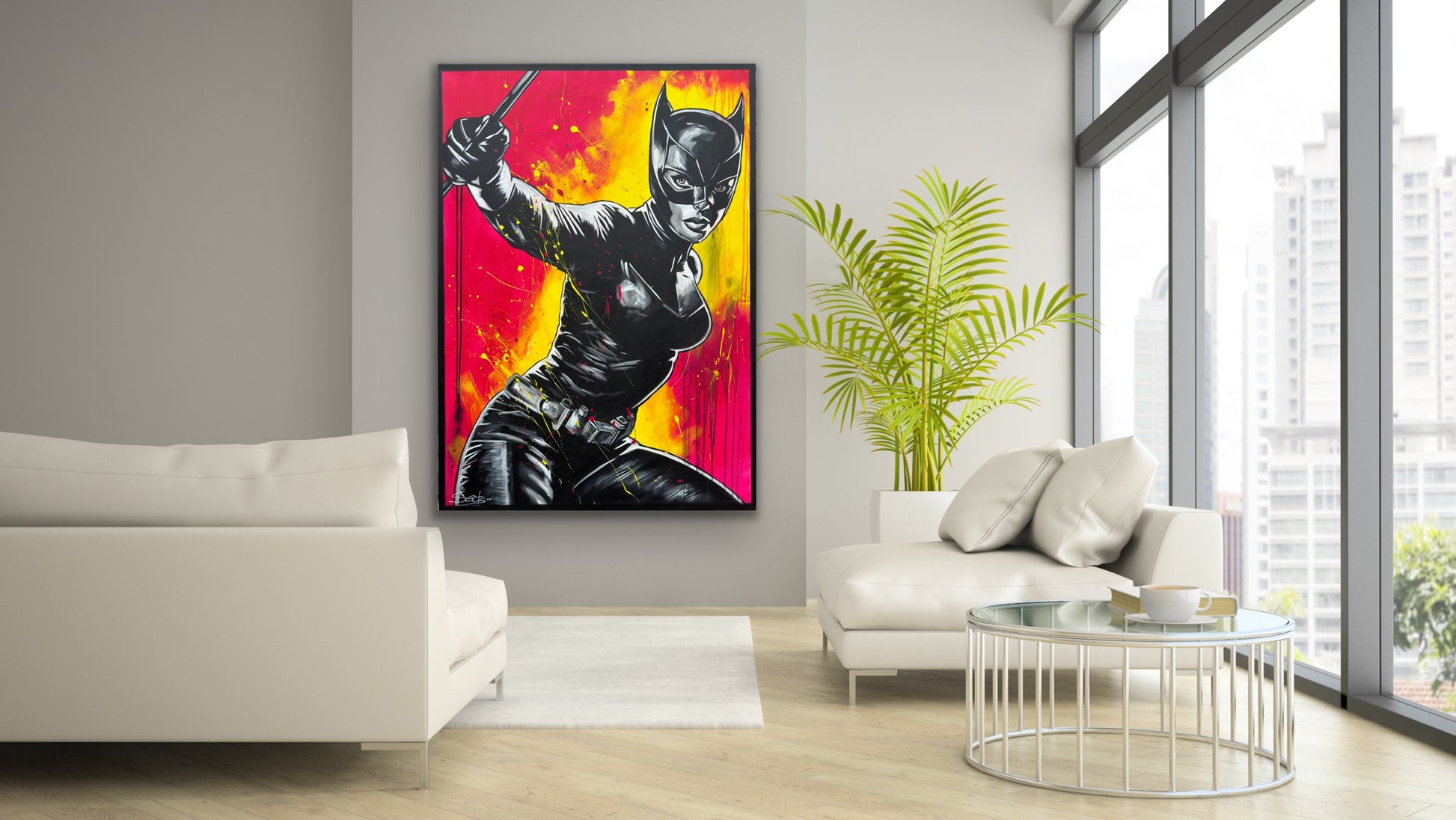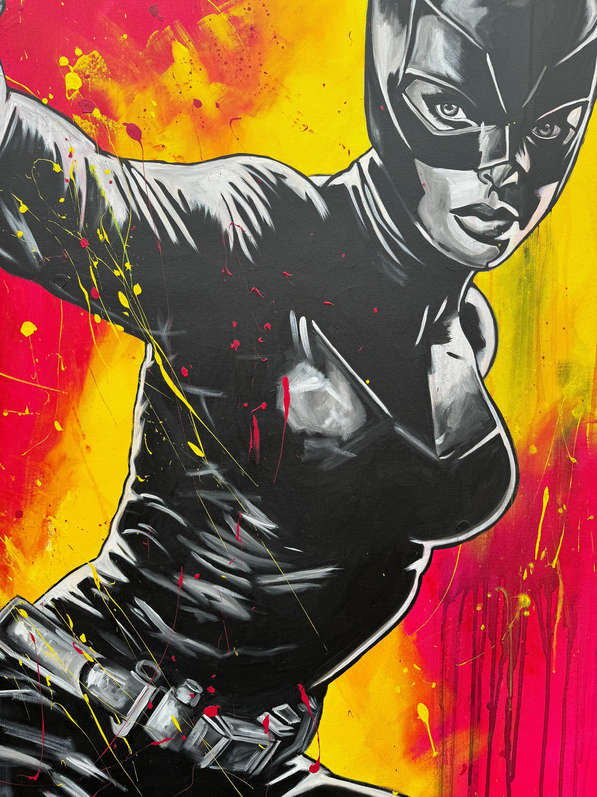 In diesem Kunstwerk vermische ich Dynamik und Stärke, um eine lebhafte Emotion zu erwecken. Mit Acryl und Harz habe ich die kraftvolle Haltung der kämpferischen CAT dargestellt, die in der Tradition von Comics und Pop-Art steht. Die Verbindung von Realismus und figurativer Darstellung macht das Bild zu etwas Besonderem. Starke Kontraste und knallige Farben bringen Energie und Antrieb in jeden Raum. Es ist eine Ode an Mut und Entschlossenheit, an Selbstbewusstsein und an den Power der Frau.