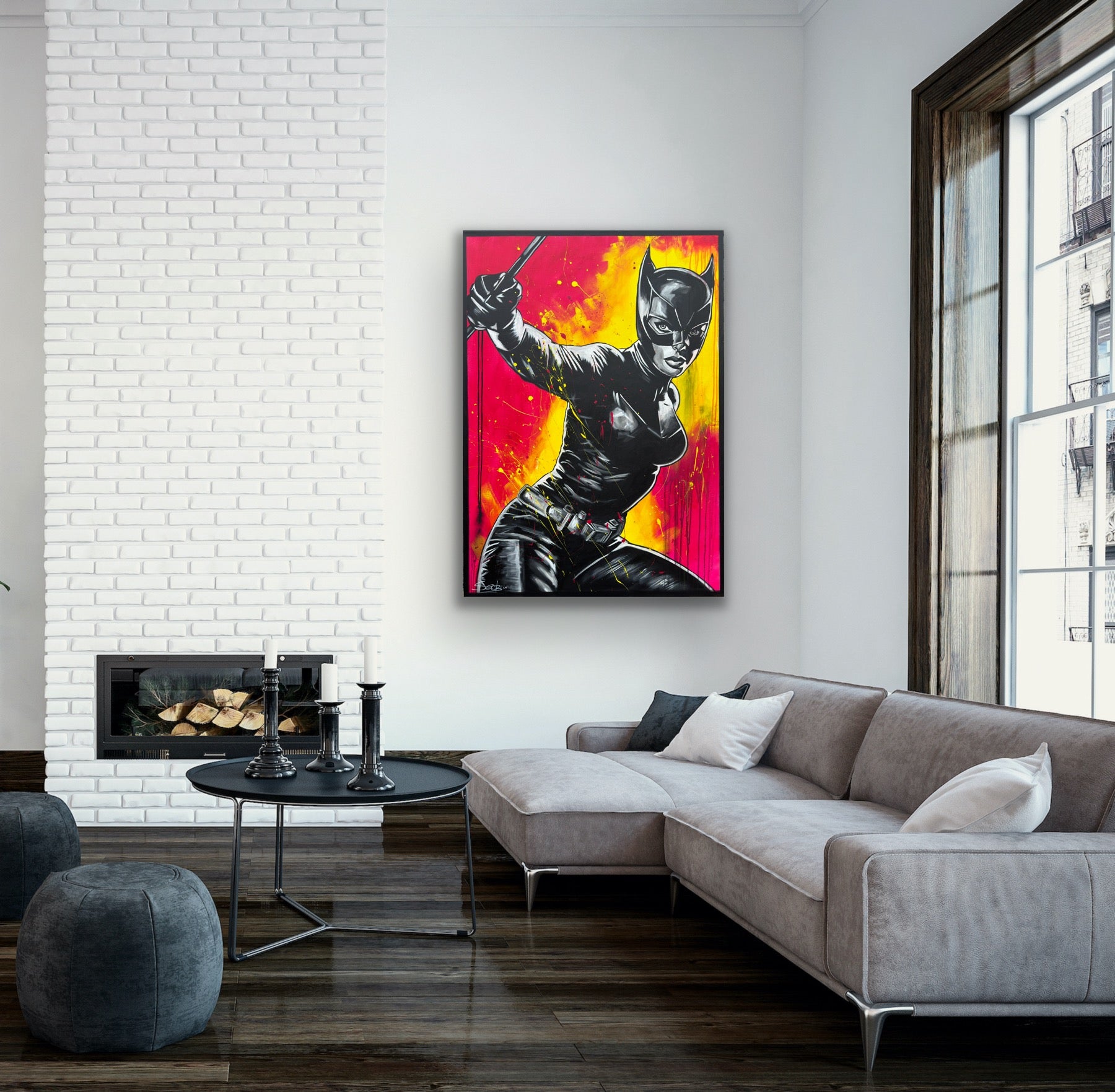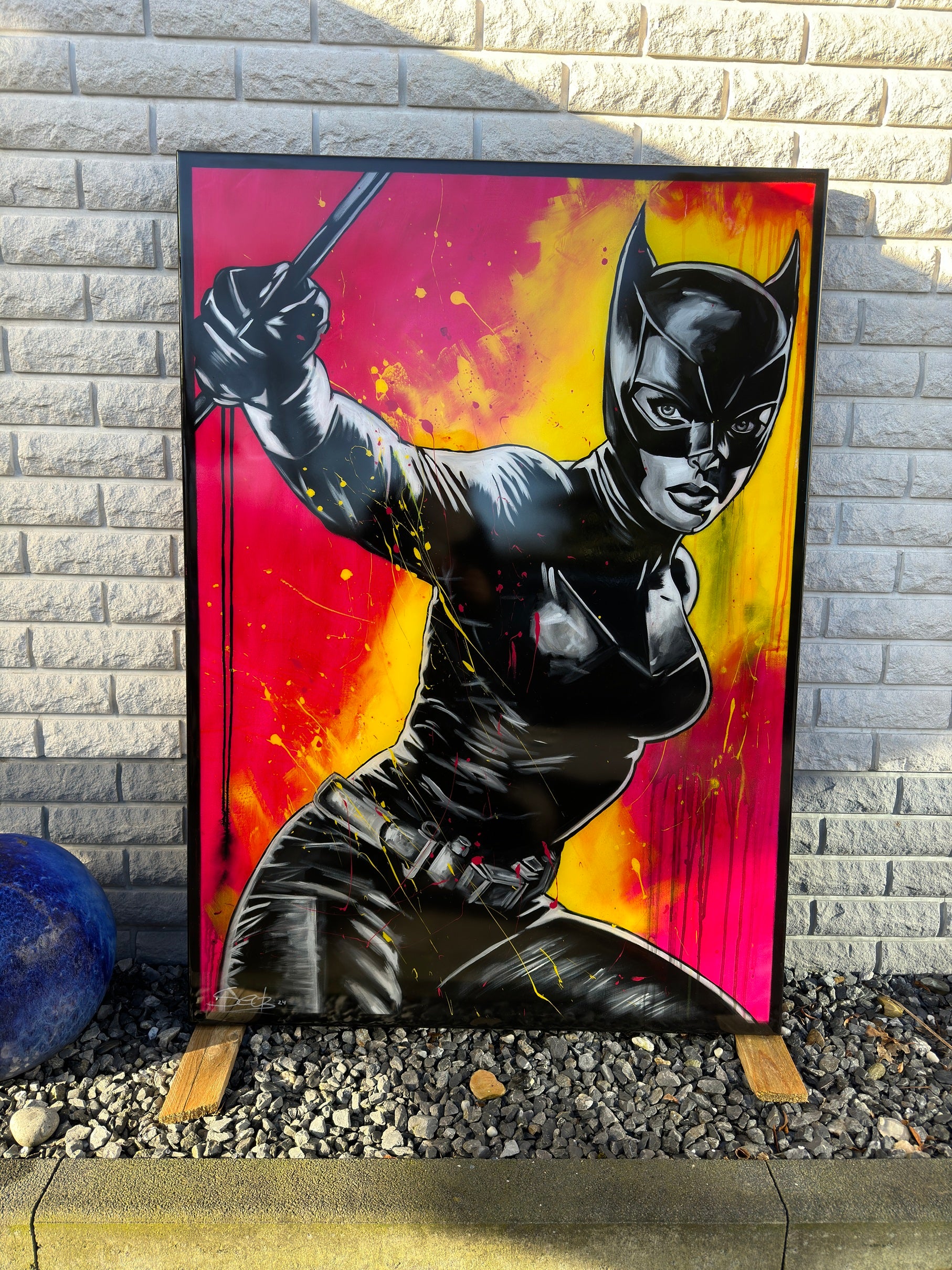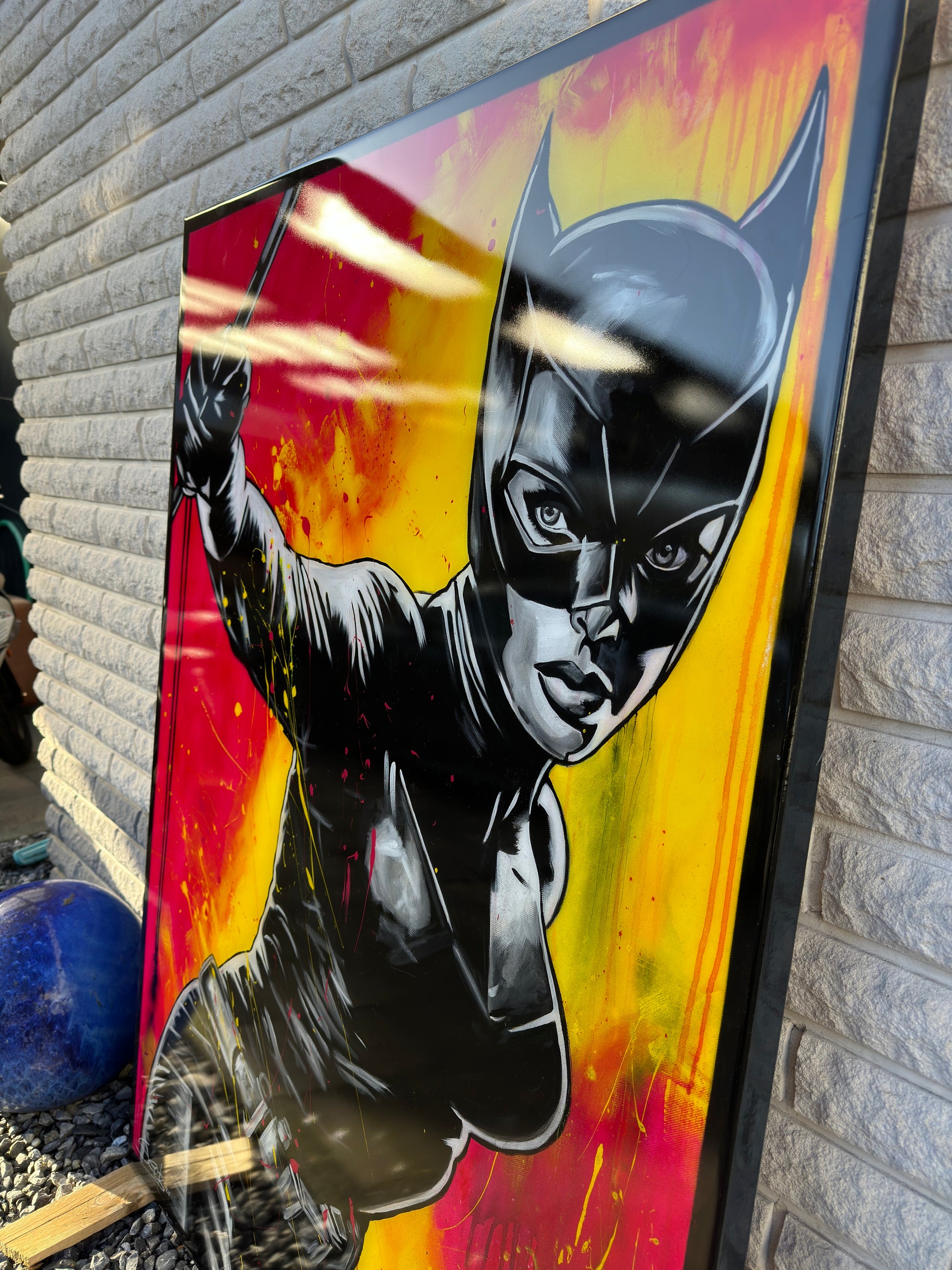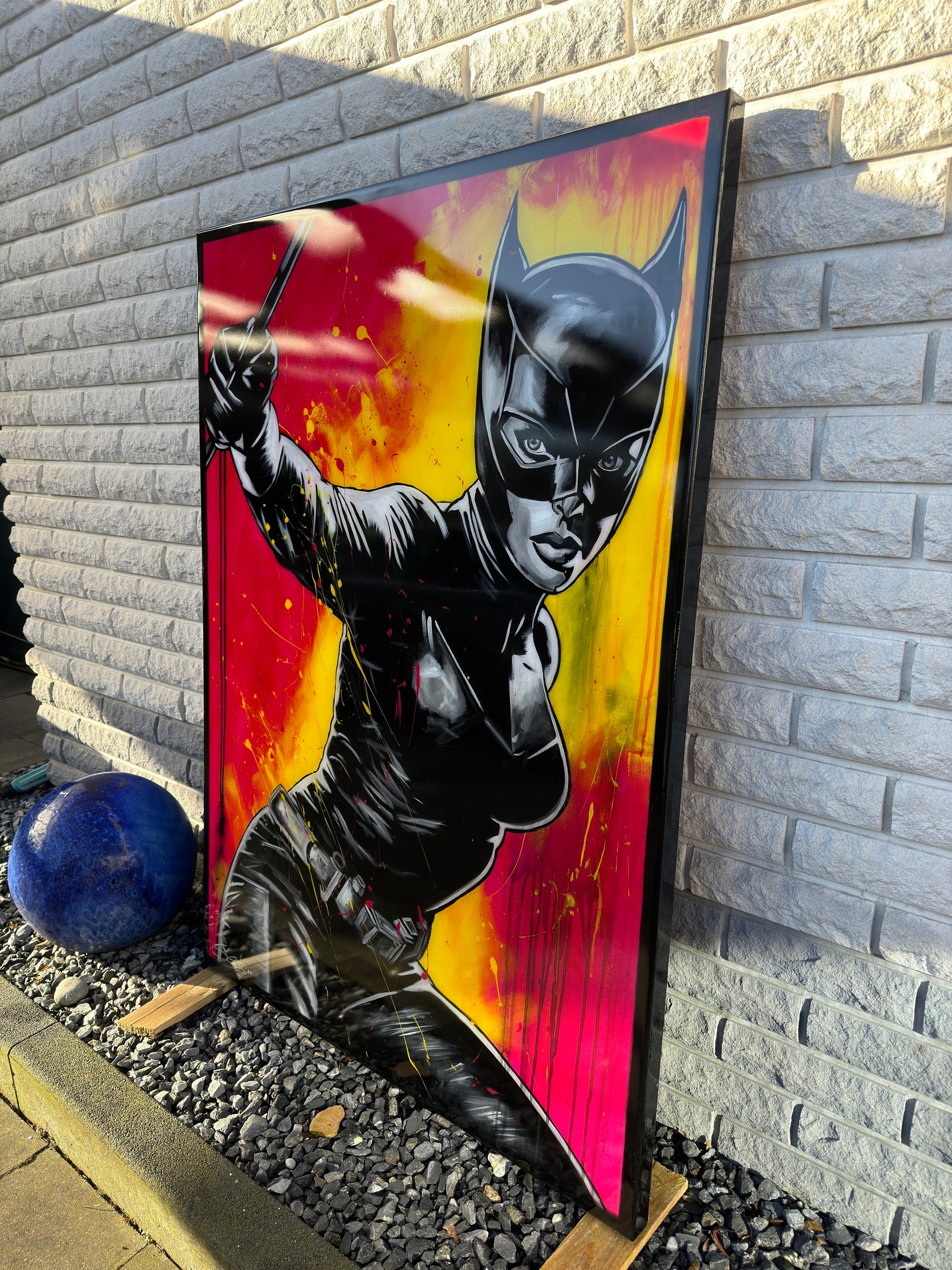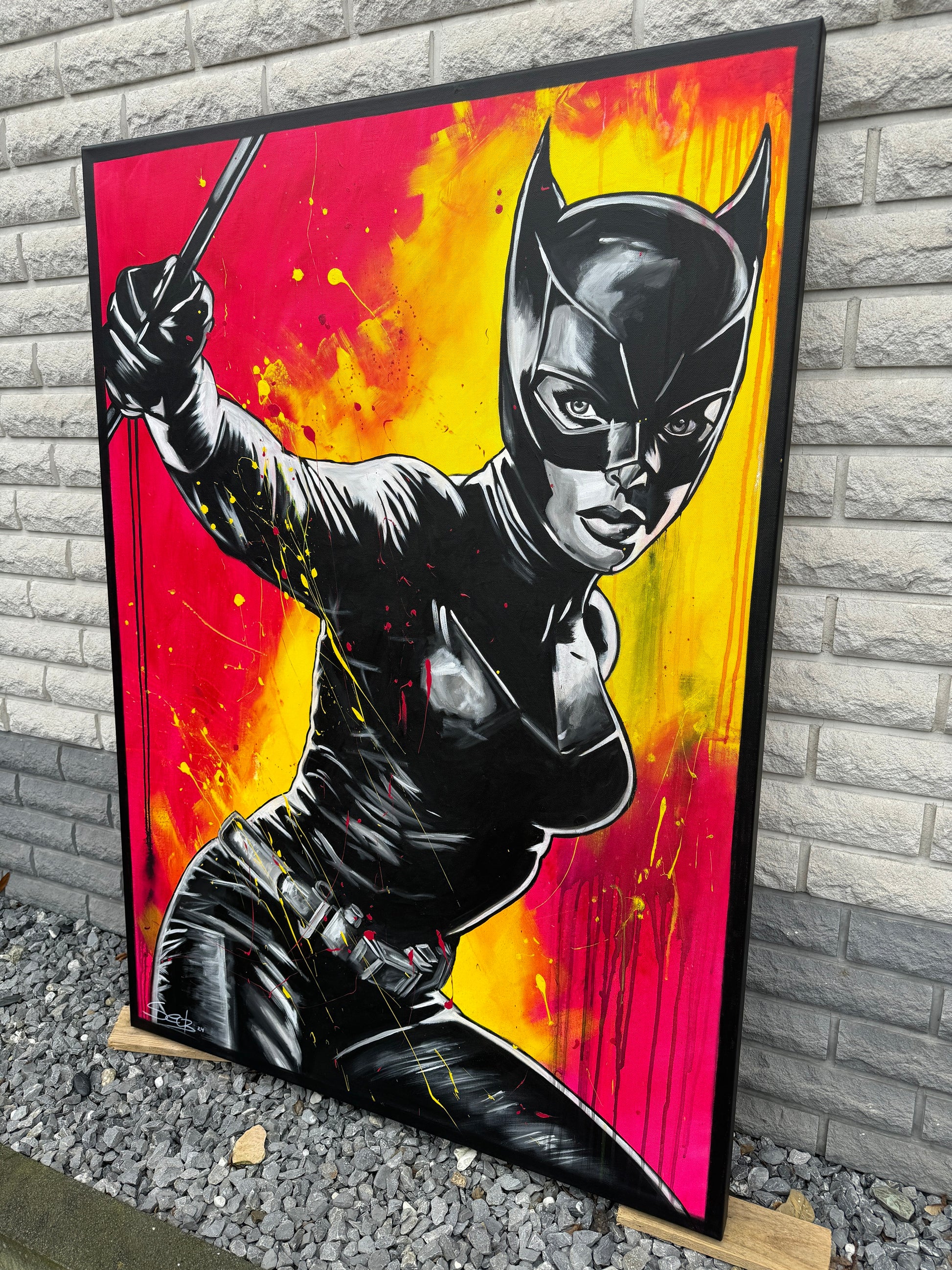In diesem Kunstwerk vermische ich Dynamik und Stärke, um eine lebhafte Emotion zu erwecken. Mit Acryl und Harz habe ich die kraftvolle Haltung der kämpferischen CAT dargestellt, die in der Tradition von Comics und Pop-Art steht. Die Verbindung von Realismus und figurativer Darstellung macht das Bild zu etwas Besonderem. Starke Kontraste und knallige Farben bringen Energie und Antrieb in jeden Raum. Es ist eine Ode an Mut und Entschlossenheit, an Selbstbewusstsein und an den Power der Frau.