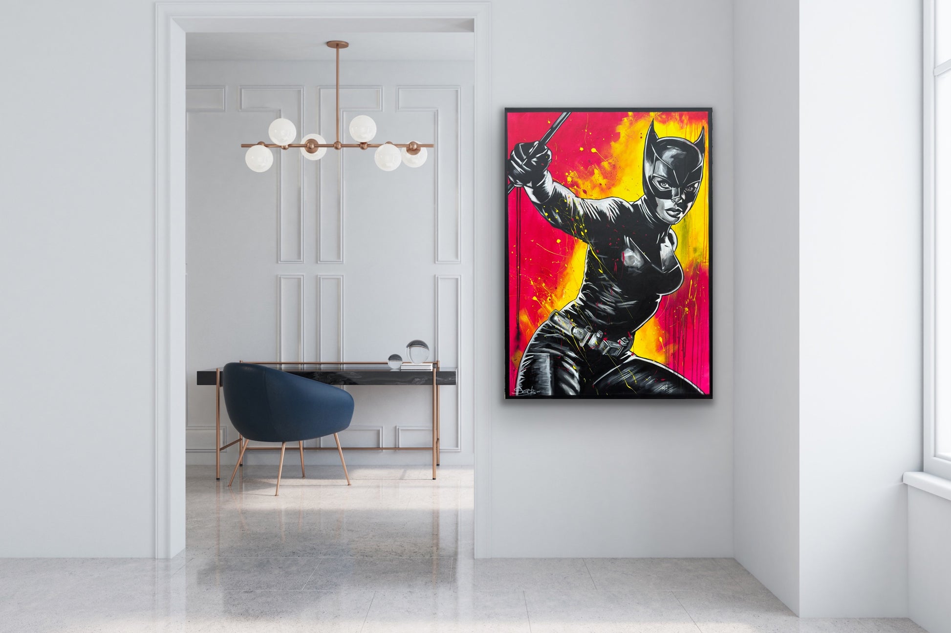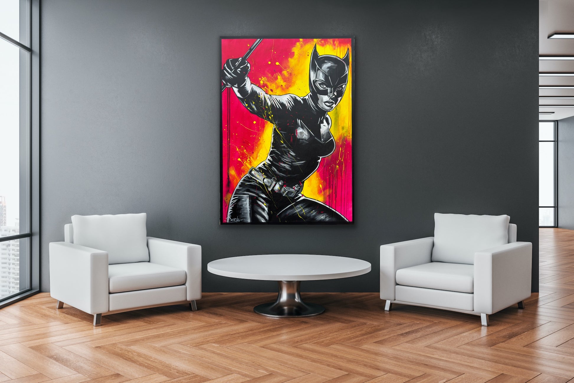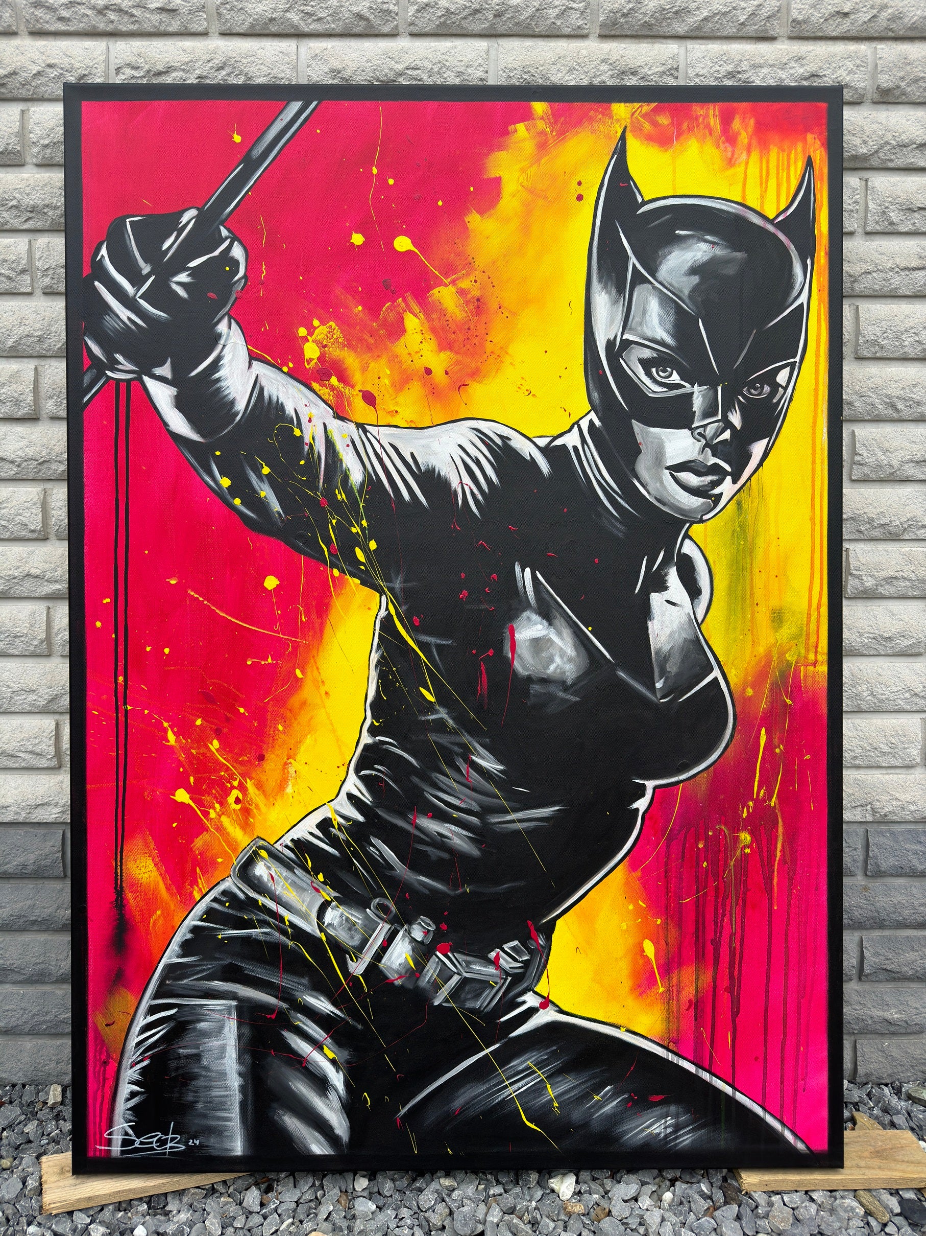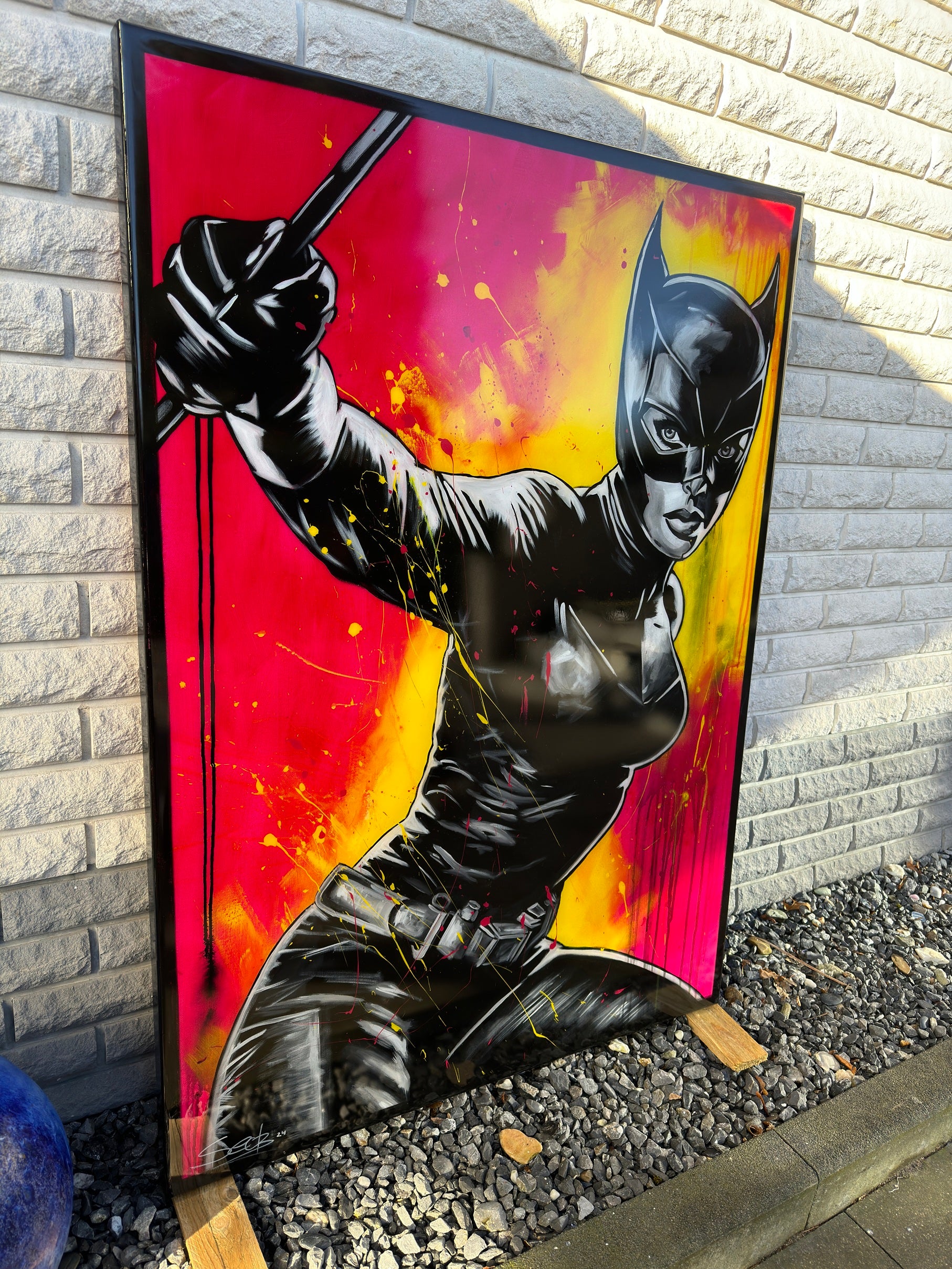 In diesem Kunstwerk vermische ich Dynamik und Stärke, um eine lebhafte Emotion zu erwecken. Mit Acryl und Harz habe ich die kraftvolle Haltung der kämpferischen CAT dargestellt, die in der Tradition von Comics und Pop-Art steht. Die Verbindung von Realismus und figurativer Darstellung macht das Bild zu etwas Besonderem. Starke Kontraste und knallige Farben bringen Energie und Antrieb in jeden Raum. Es ist eine Ode an Mut und Entschlossenheit, an Selbstbewusstsein und an den Power der Frau.