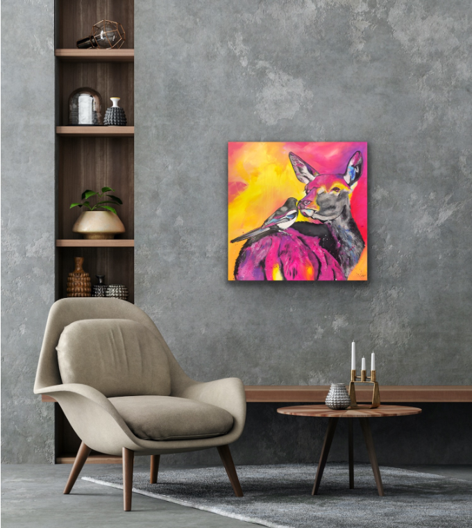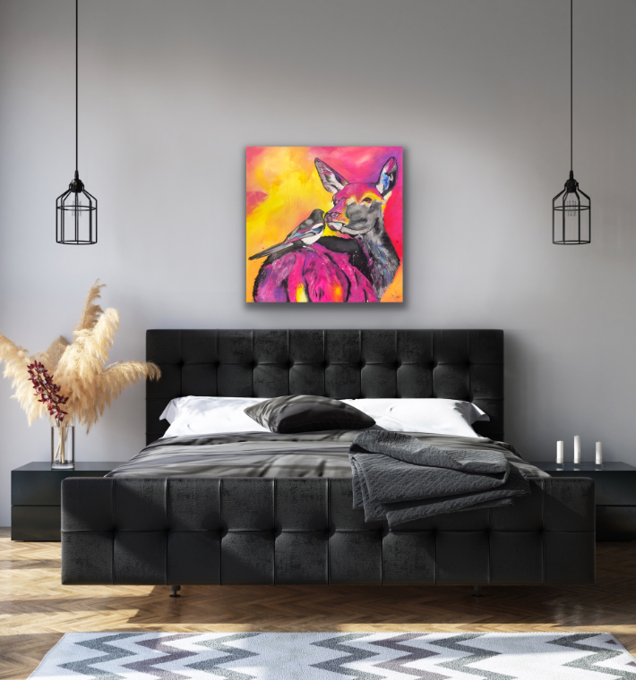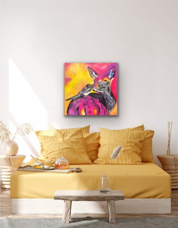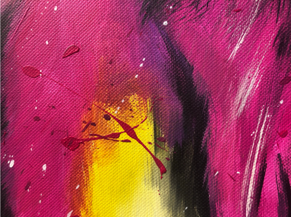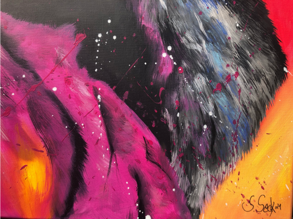 Ränder bemalt, Aufhängen ohne Rahmung möglich.