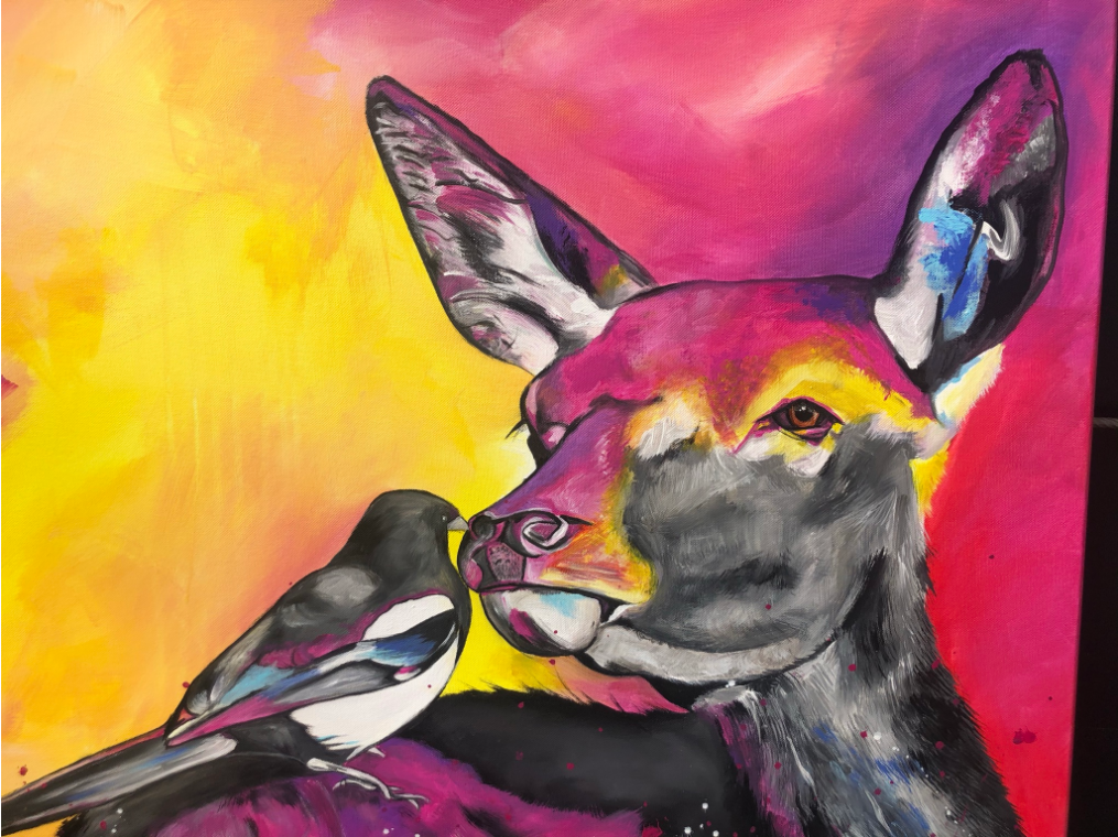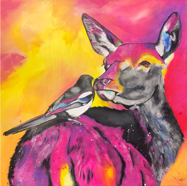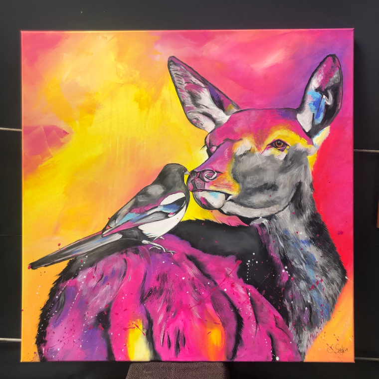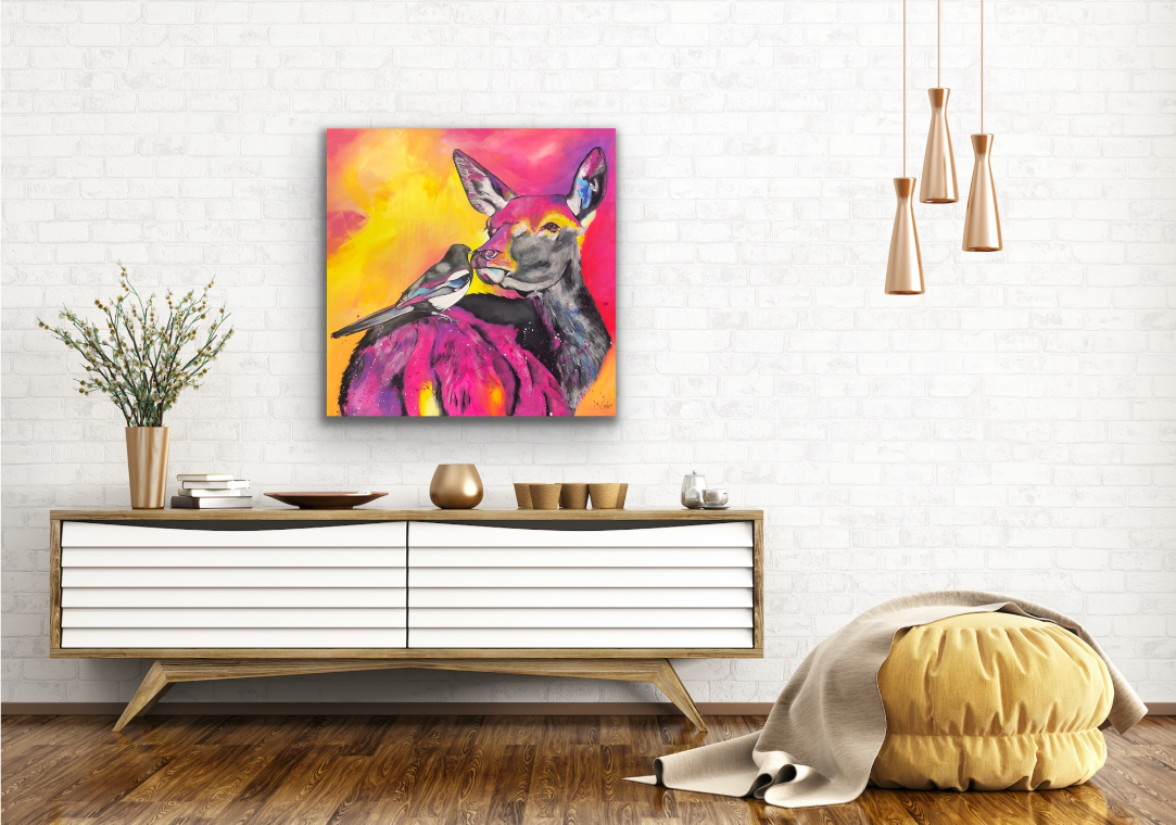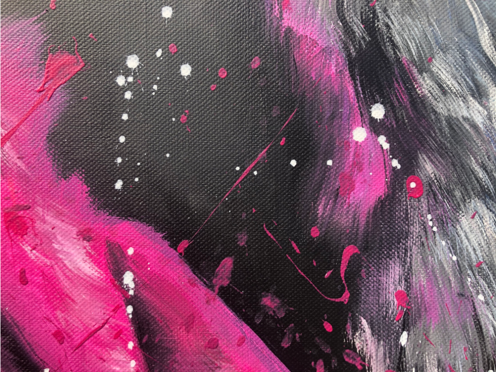 Ränder bemalt, Aufhängen ohne Rahmung möglich.