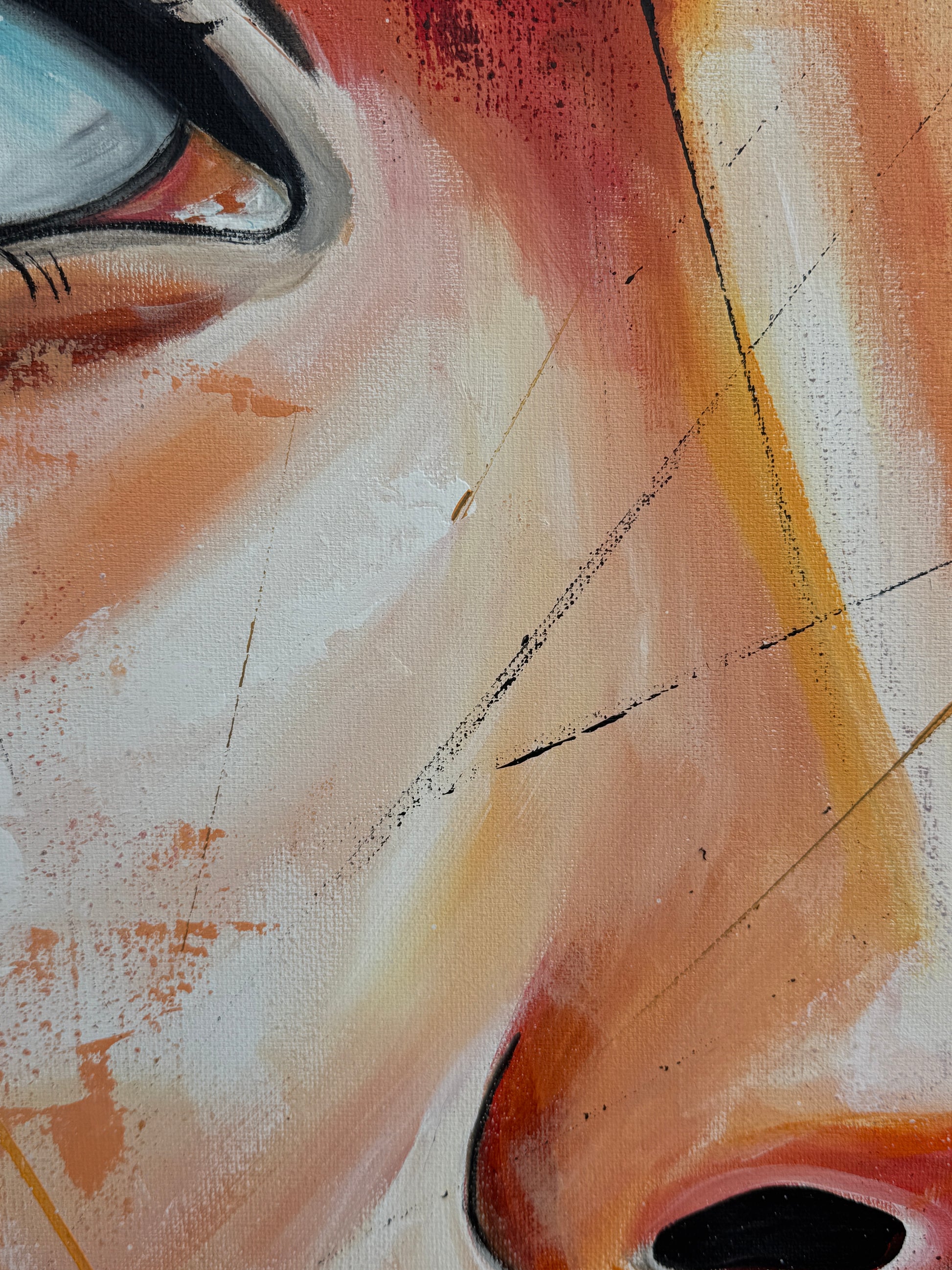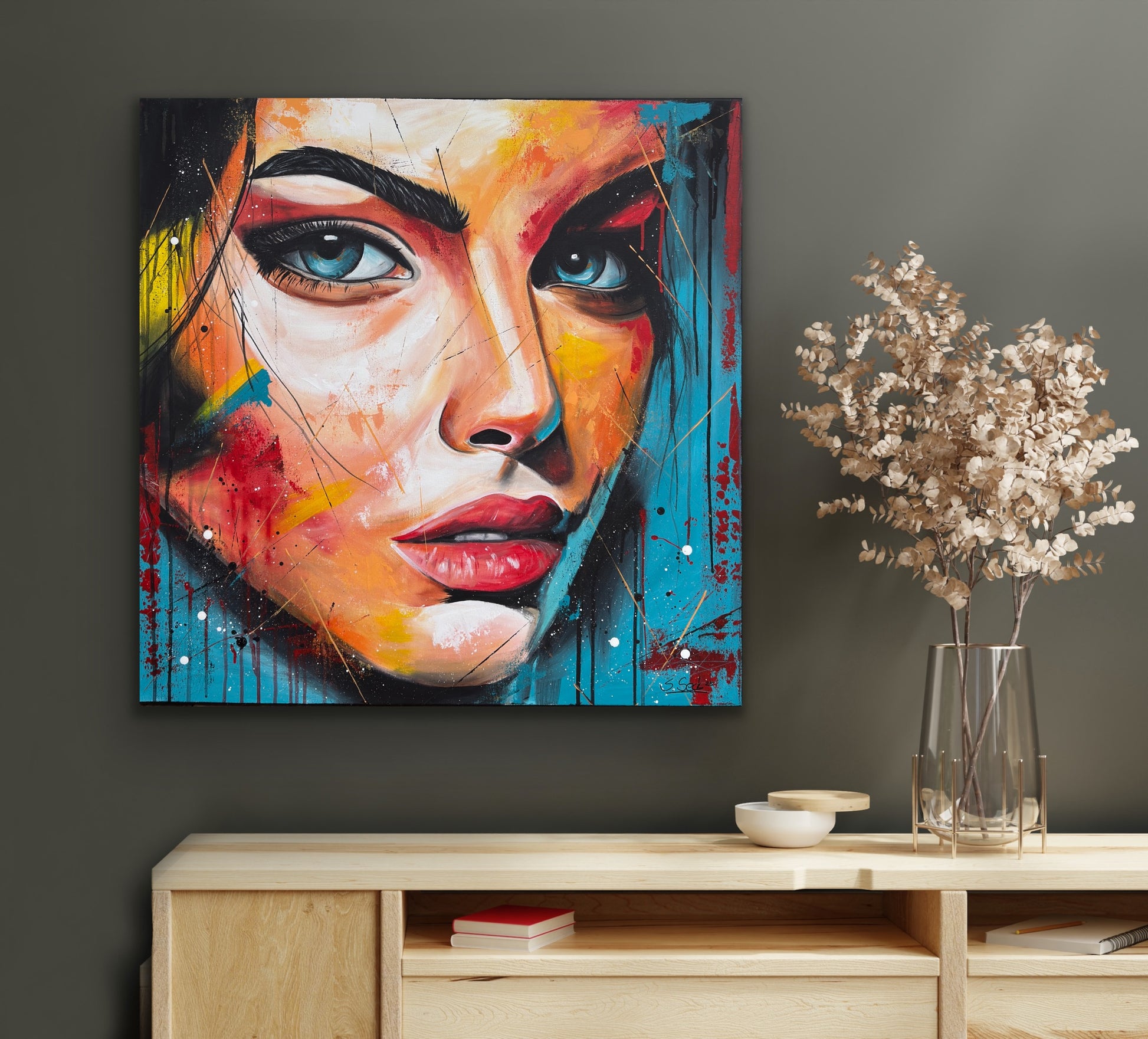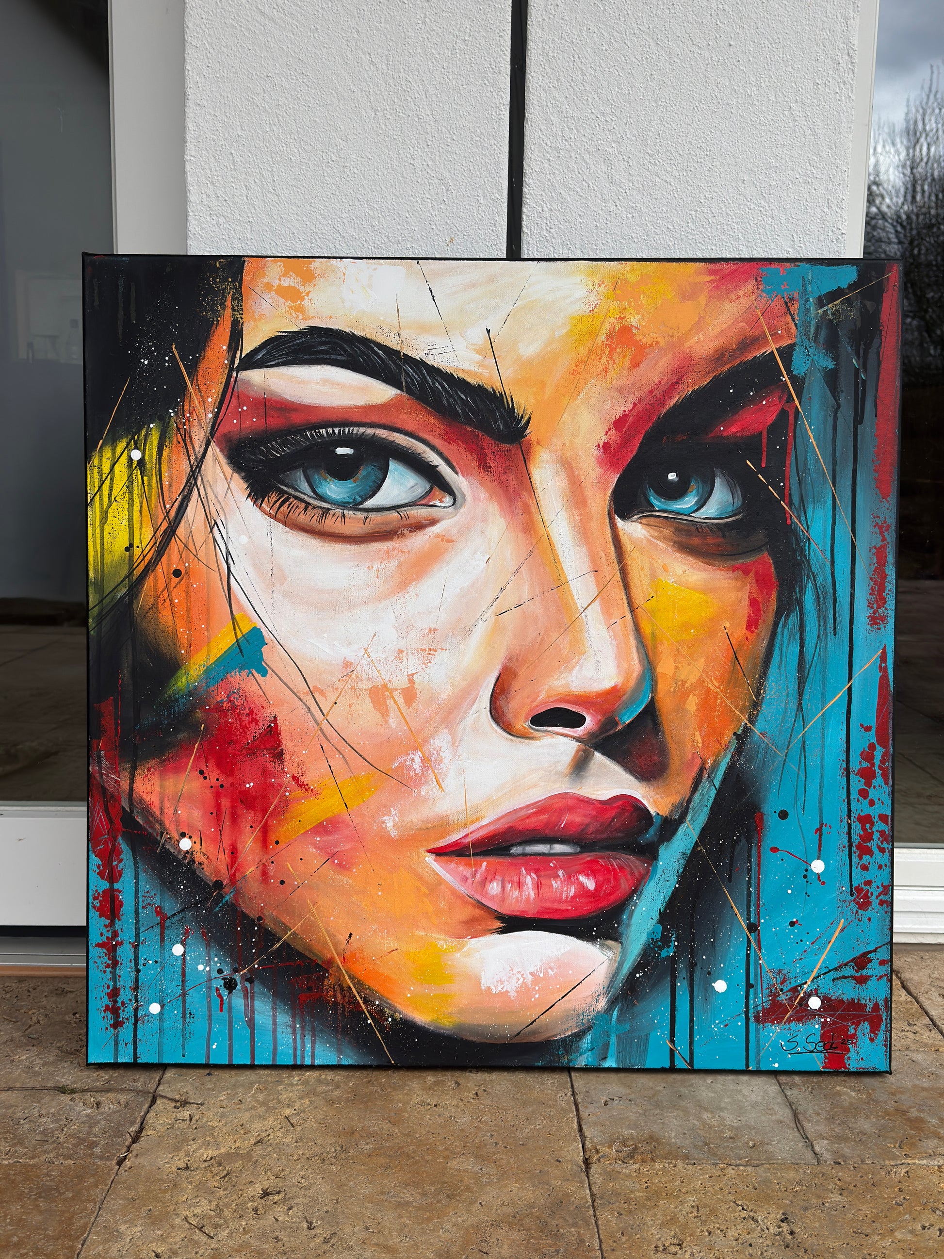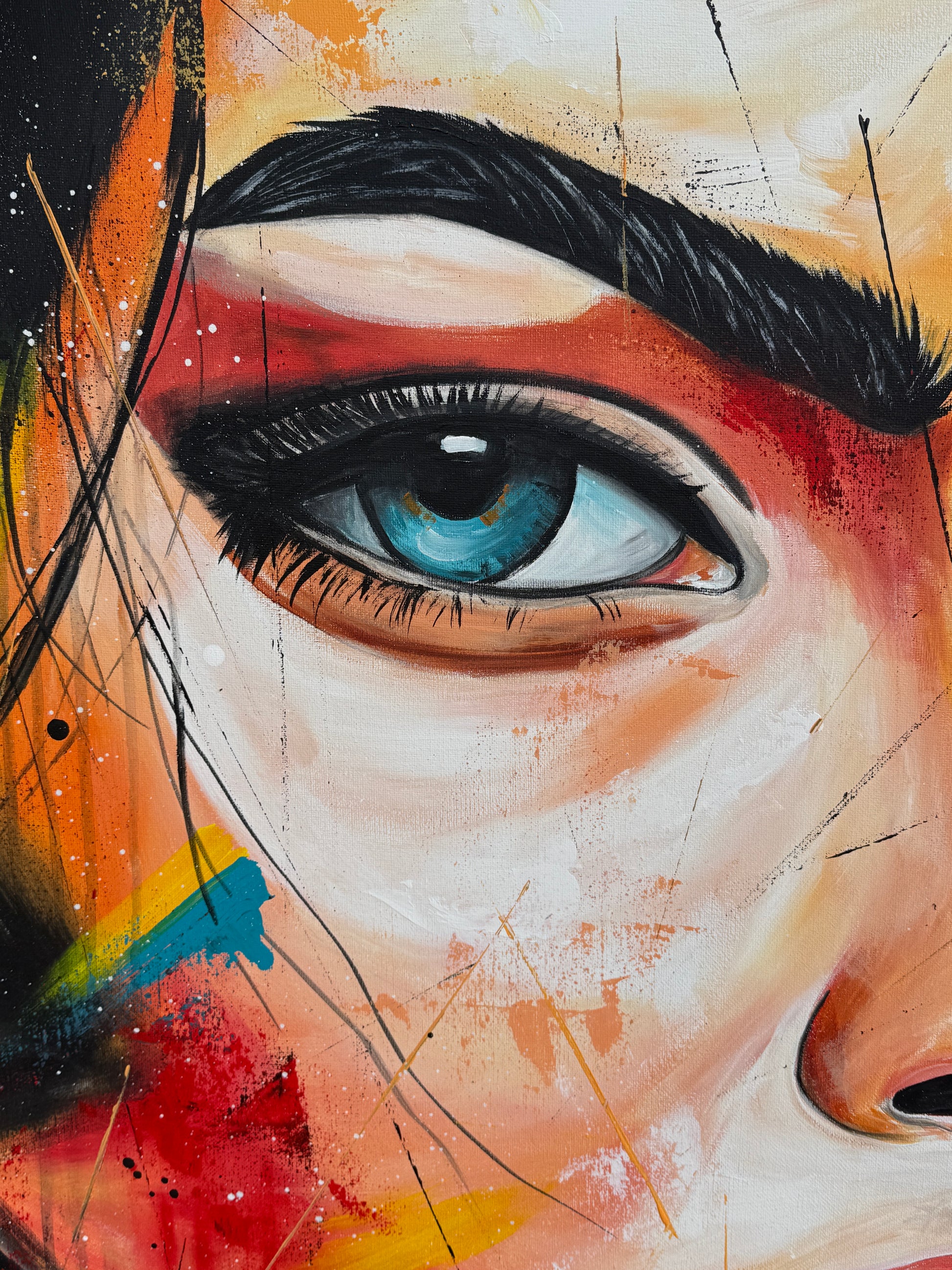 Romy ist ein kraftvolles Porträt einer Frau, die genau weiß, was sie möchte. Ihr Blick ist so bedeutend, dass man viel hinein interpretieren kann. Was sie denkt? Was will sie sagen? Welche Emotionen beschätigen sie. Jeder empfindet was anderes, wenn man in ihre tief blauen Augen schaut. Sie geben einen kleinen Blick auf die Seele frei. Was siehst du?