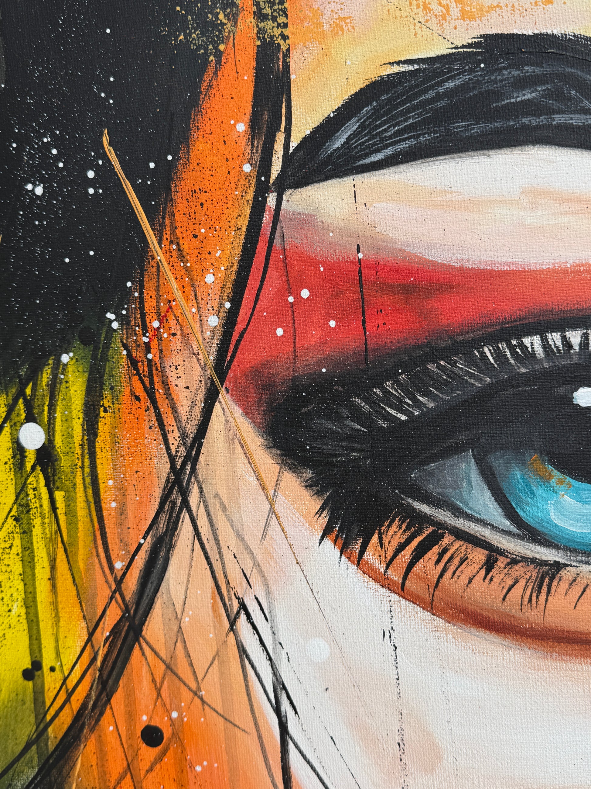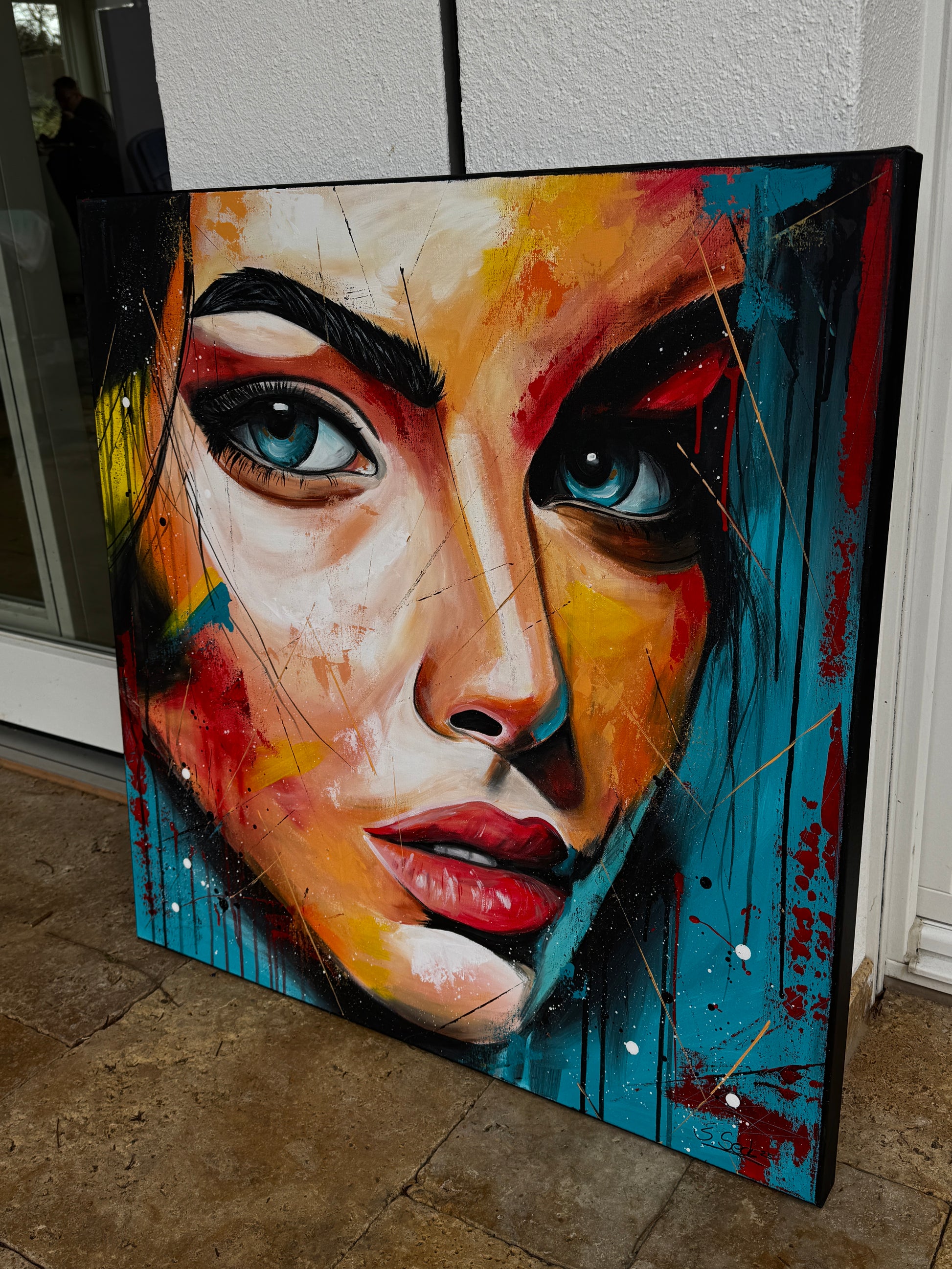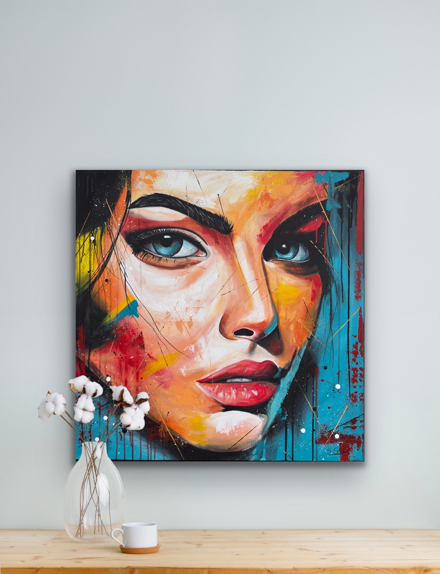Romy ist ein kraftvolles Porträt einer Frau, die genau weiß, was sie möchte. Ihr Blick ist so bedeutend, dass man viel hinein interpretieren kann. Was sie denkt? Was will sie sagen? Welche Emotionen beschätigen sie. Jeder empfindet was anderes, wenn man in ihre tief blauen Augen schaut. Sie geben einen kleinen Blick auf die Seele frei. Was siehst du?