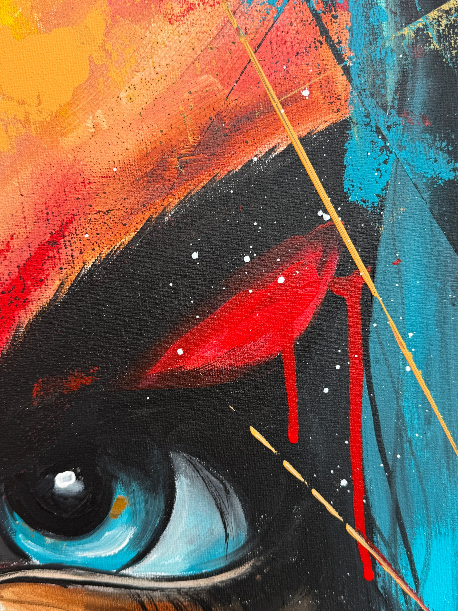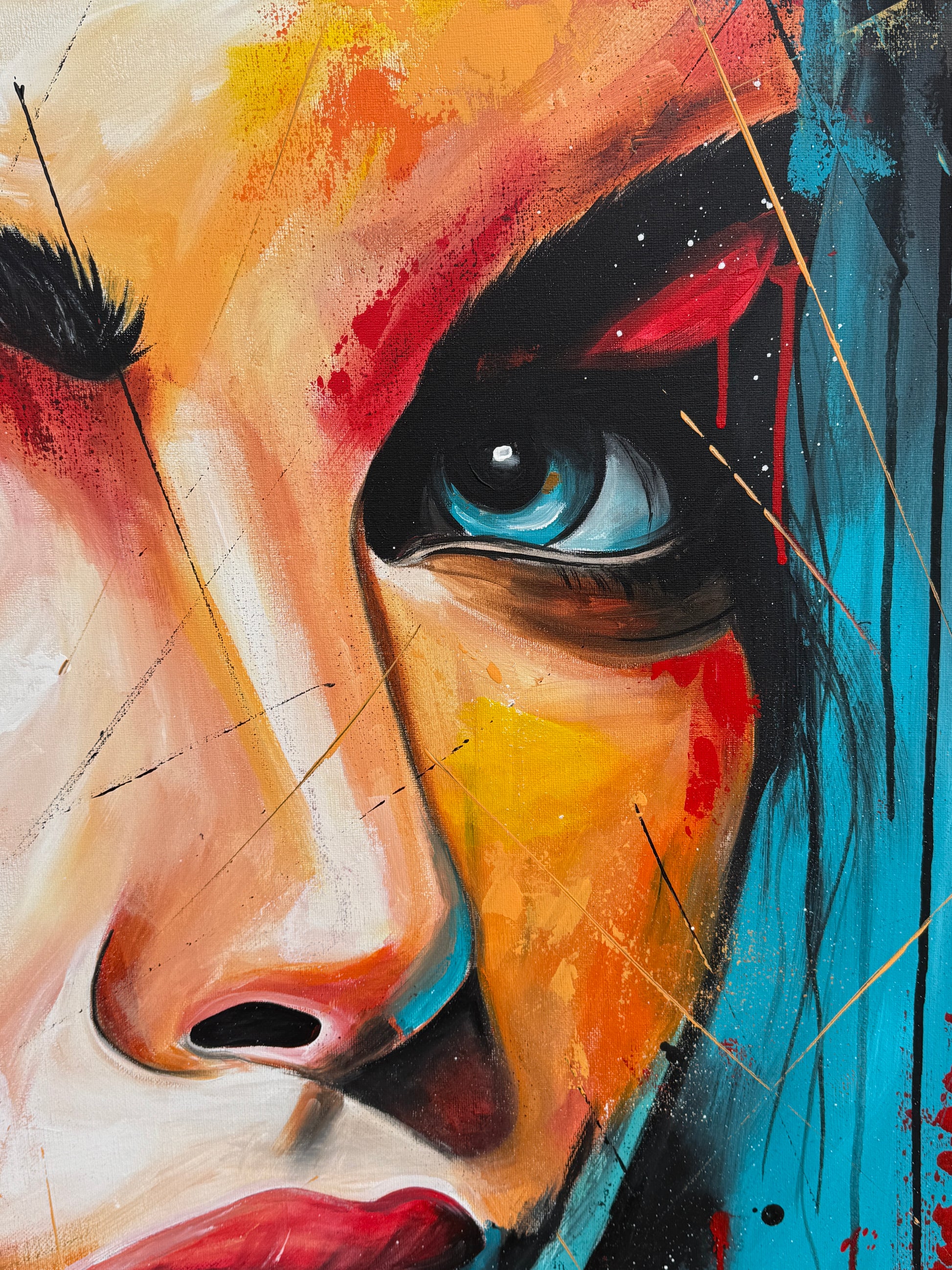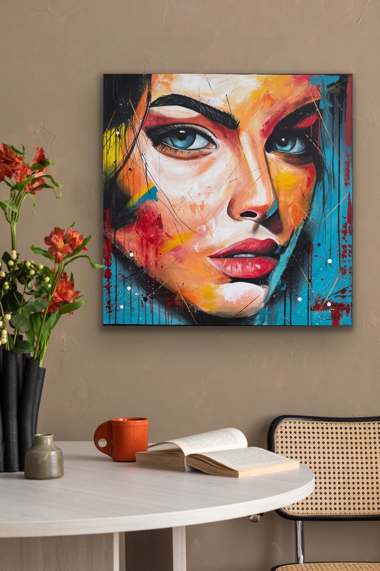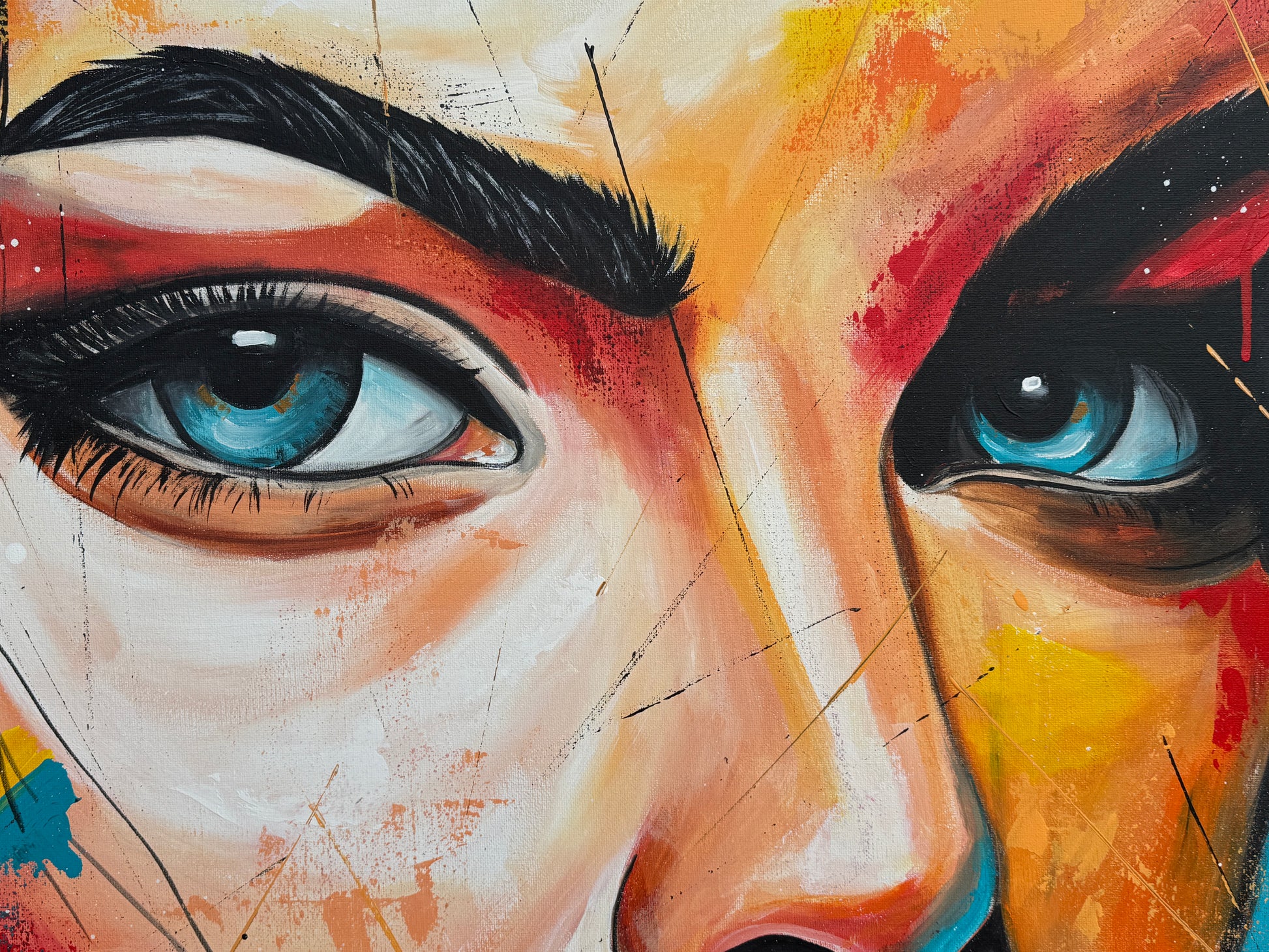 Romy ist ein kraftvolles Porträt einer Frau, die genau weiß, was sie möchte. Ihr Blick ist so bedeutend, dass man viel hinein interpretieren kann. Was sie denkt? Was will sie sagen? Welche Emotionen beschätigen sie. Jeder empfindet was anderes, wenn man in ihre tief blauen Augen schaut. Sie geben einen kleinen Blick auf die Seele frei. Was siehst du?