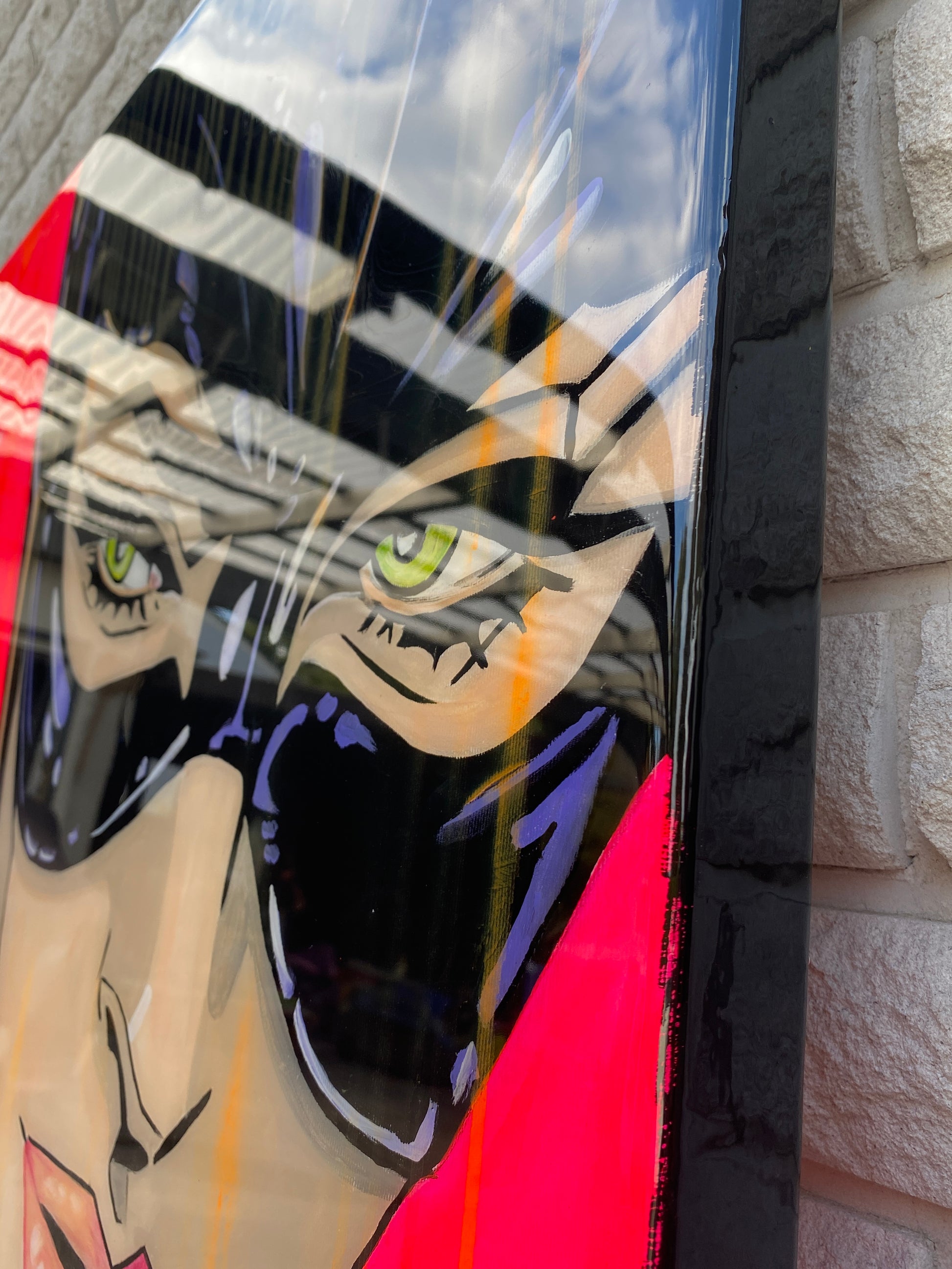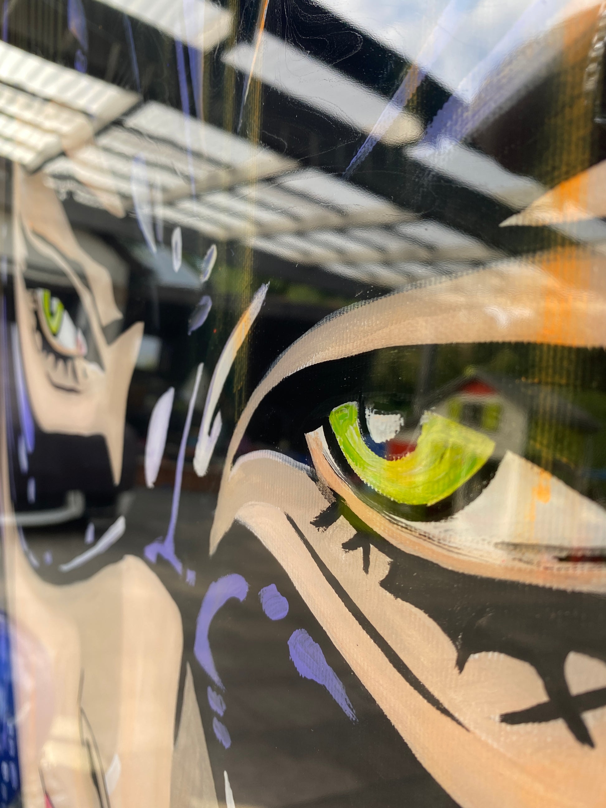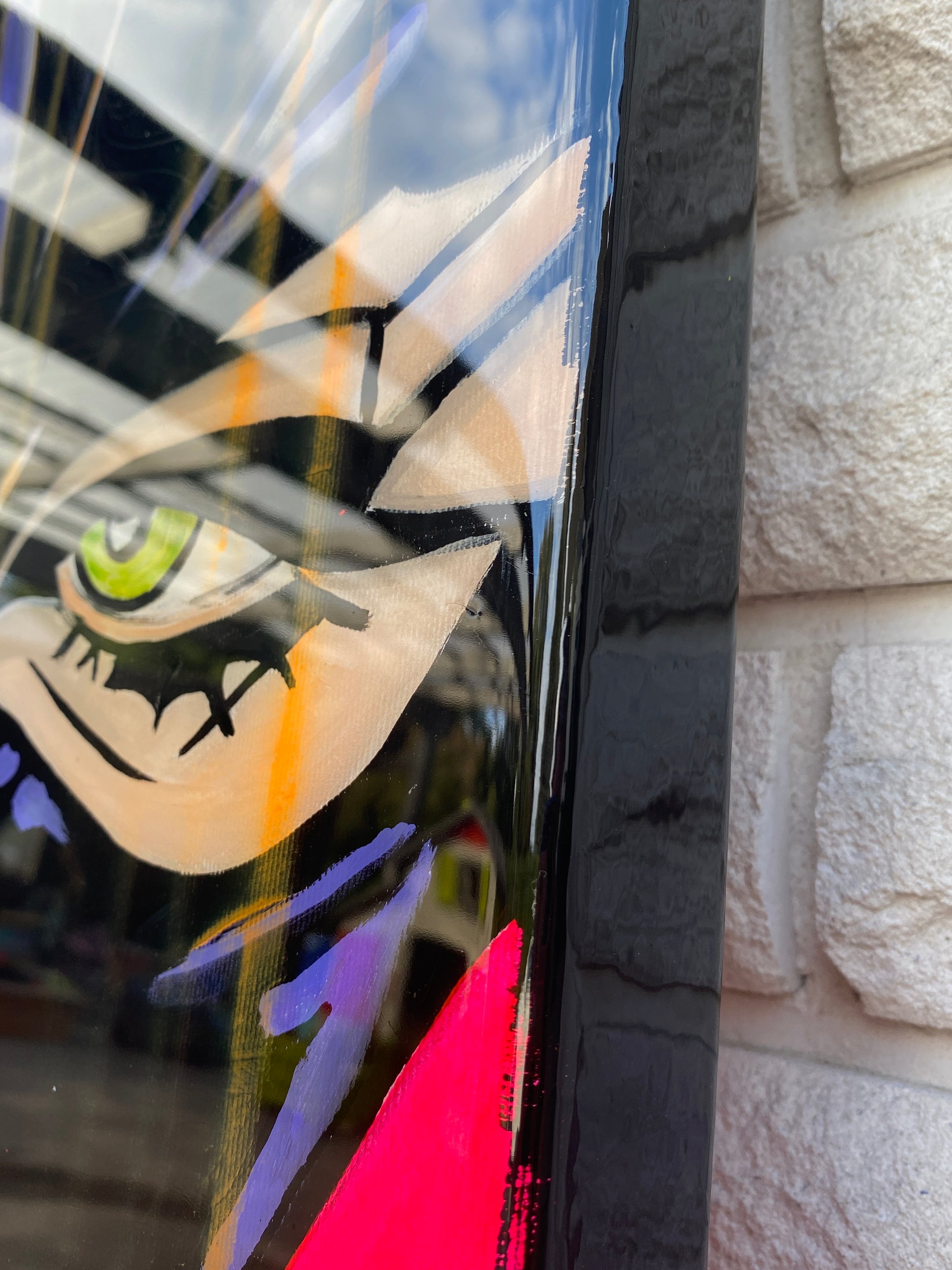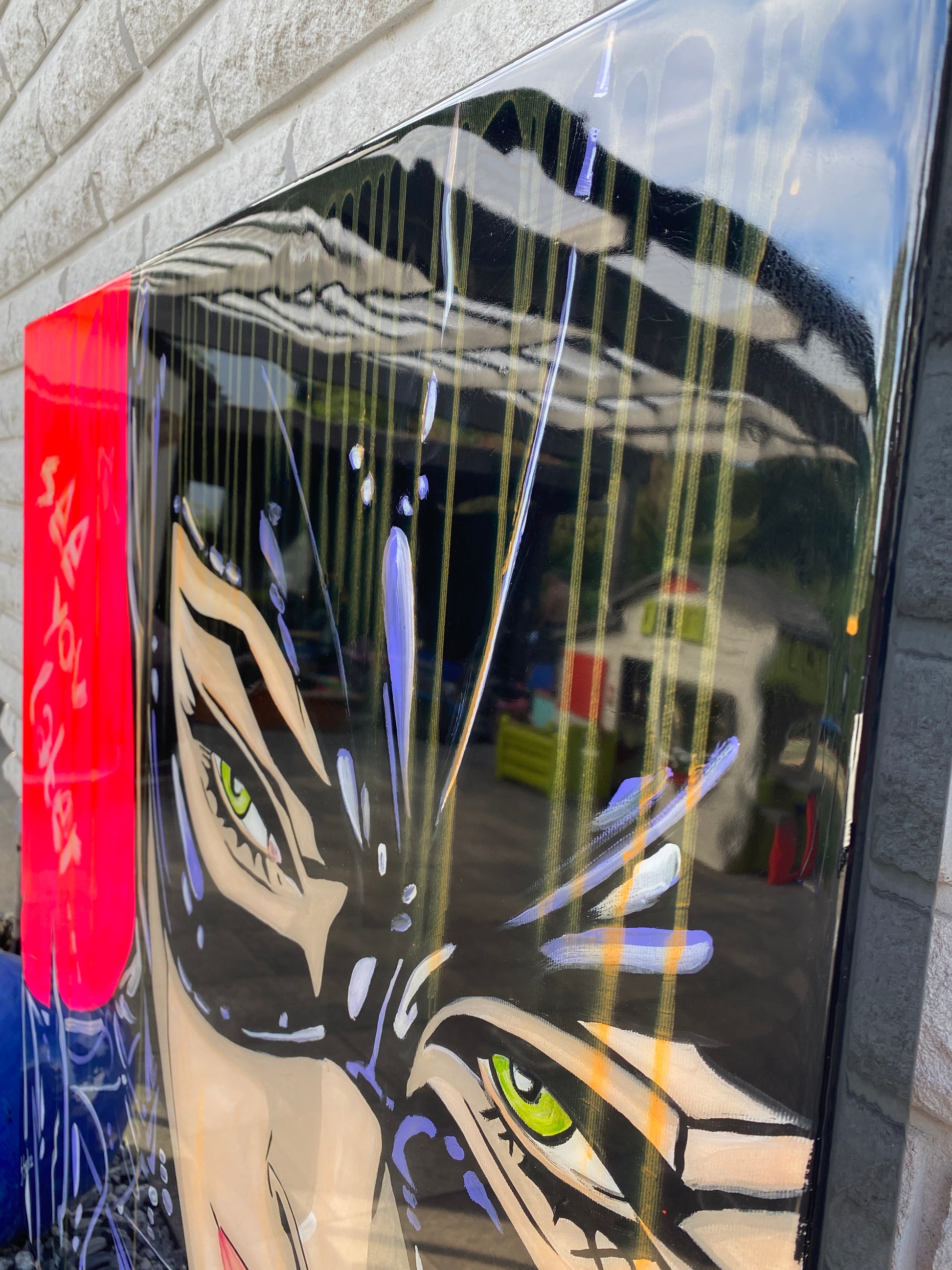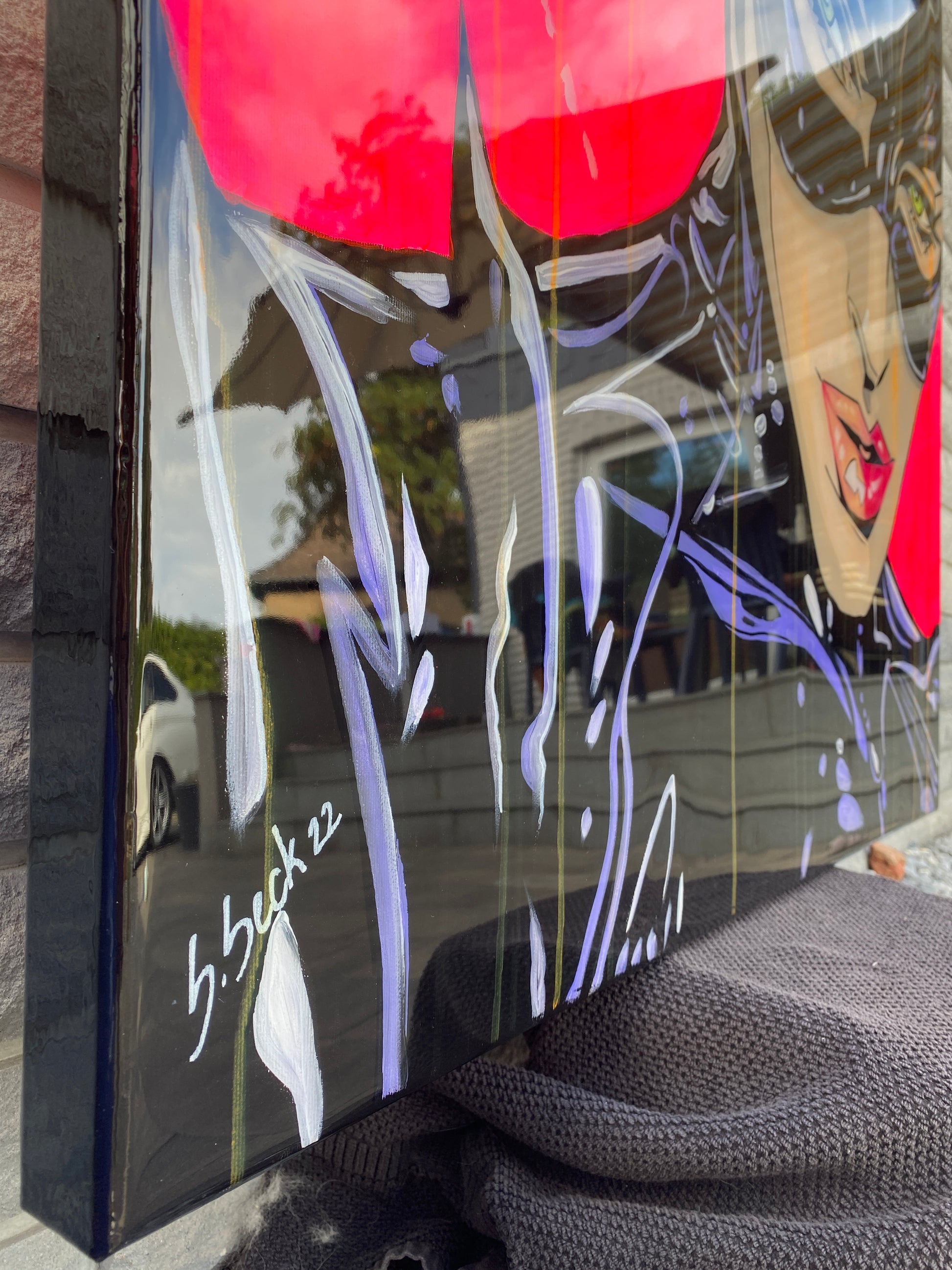 Die Arbeit habe ich mit einer Schicht Harz überzogen. Das hinterlässt einen wunderbaren Glanz, ähnlich wie bei einer Glasscheibe.