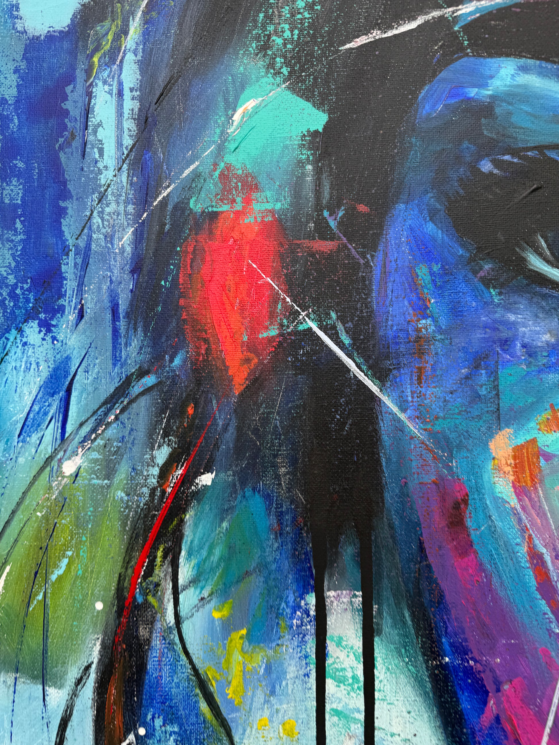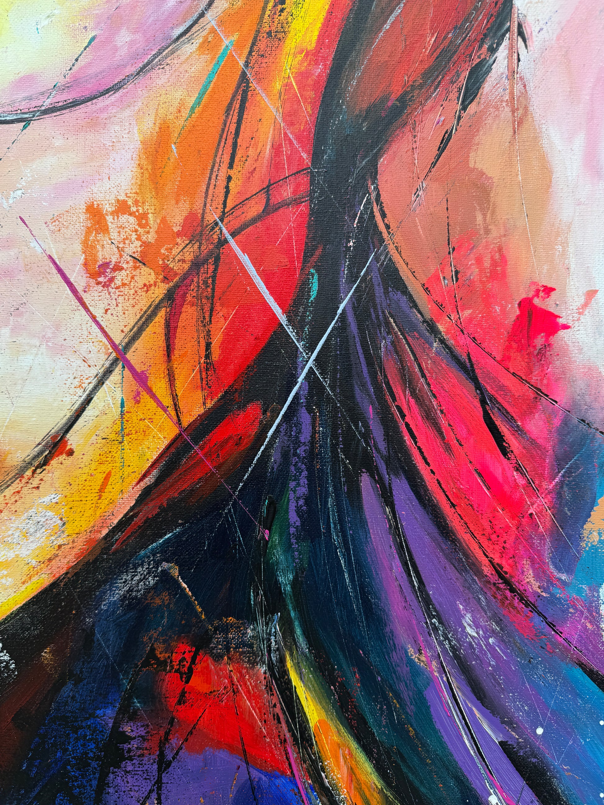 Dieses Bild bringt Energie und Leidenschaft in jeden Raum und lädt den Betrachter dazu ein, tief in die Vielfalt des Lebens einzutauchen.