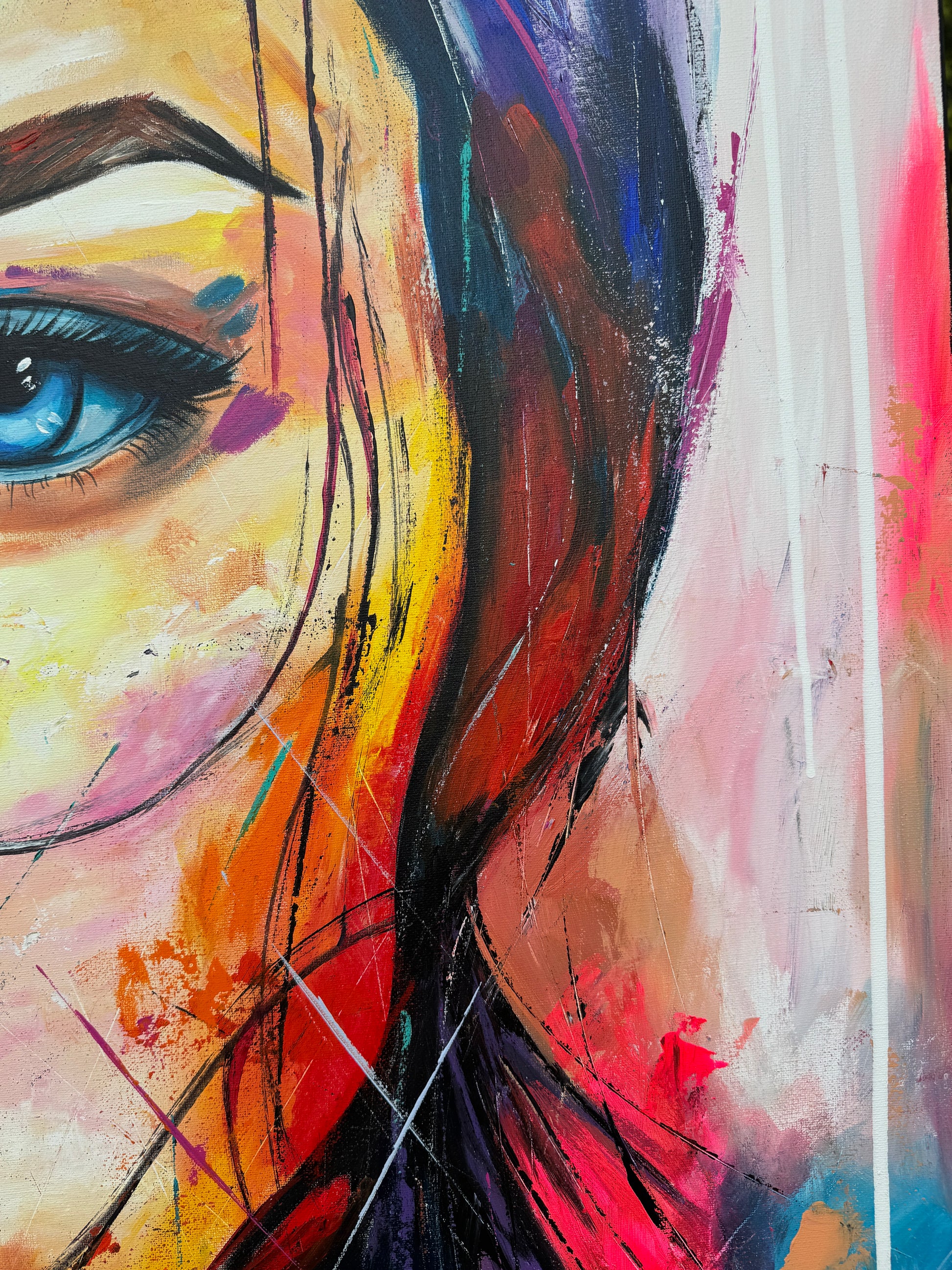 Jeder Mensch hat sie. Sie ist dass, was uns ausmacht. Und manchen mag man es nicht ansehen, von außen zierlich und zerbrechlich. Doch innerlich so stark wie ein felsiger Berg und rein wie wie ein Diamant. Die Kombination aus abstrakten und figurativen Elementen zeigt die komplexe Seele und innere Stärke, die in jedem von uns steckt.