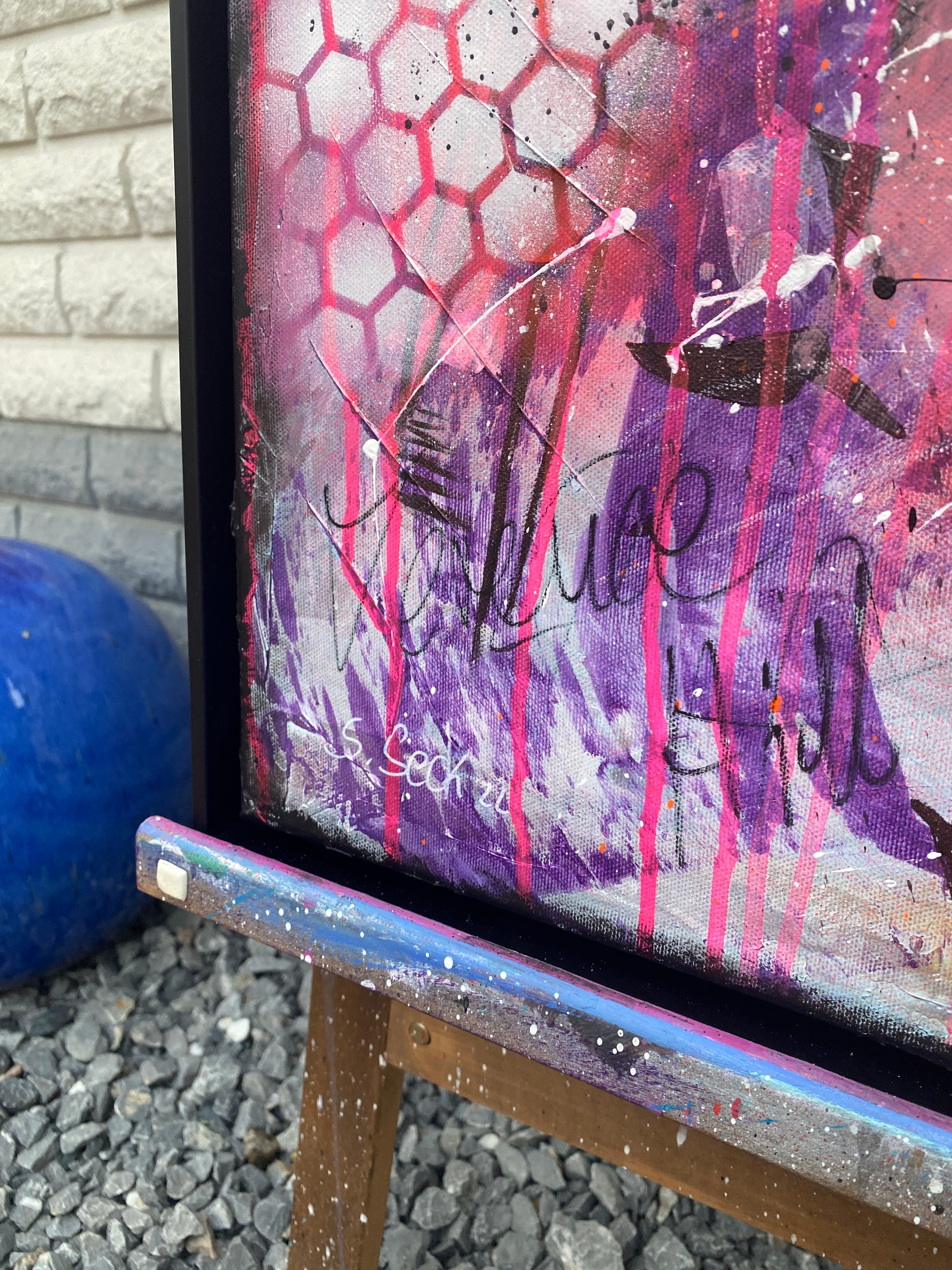 Das Werk ist mit einem Schattenfugenrahmen gerahmt.