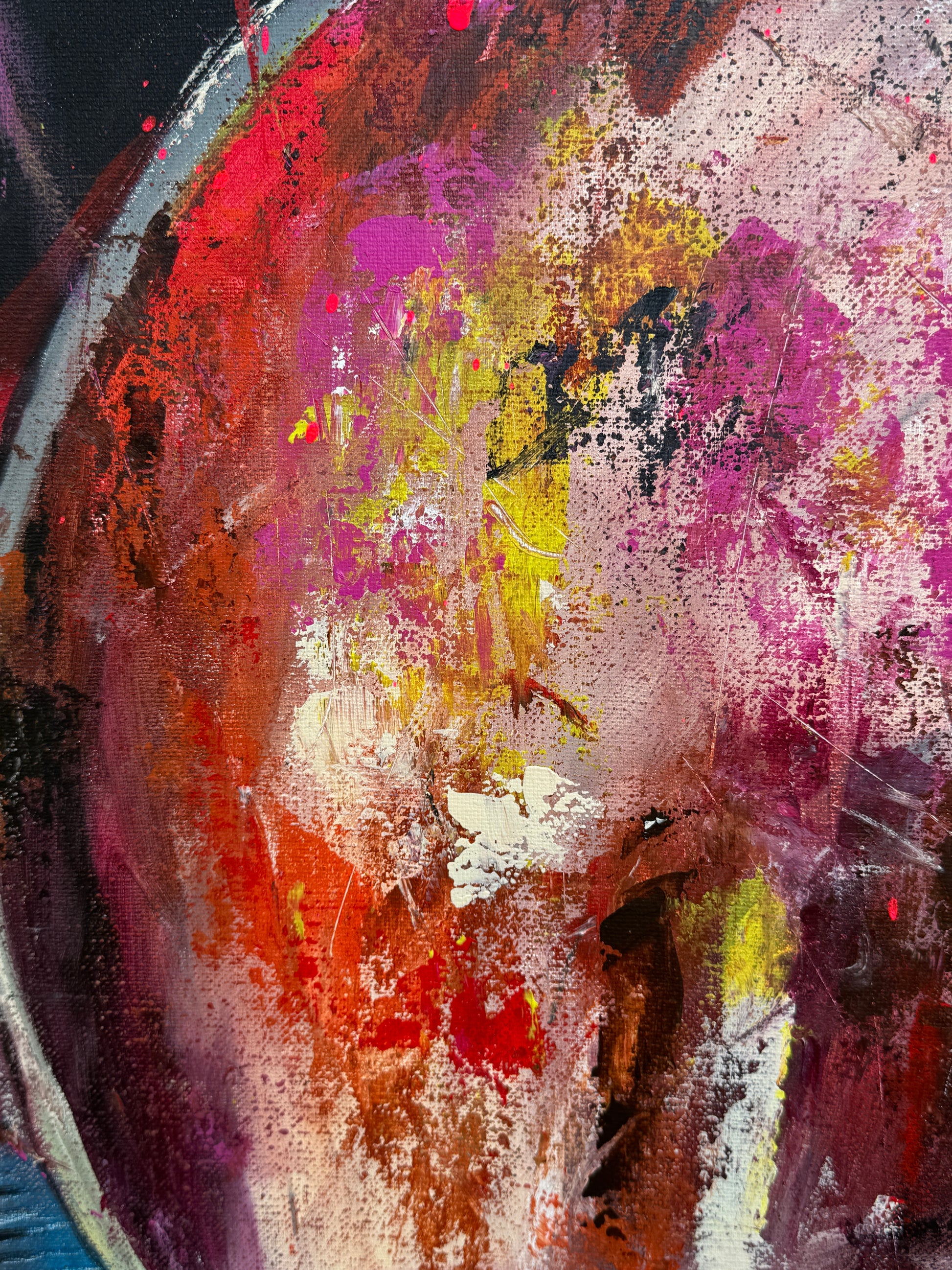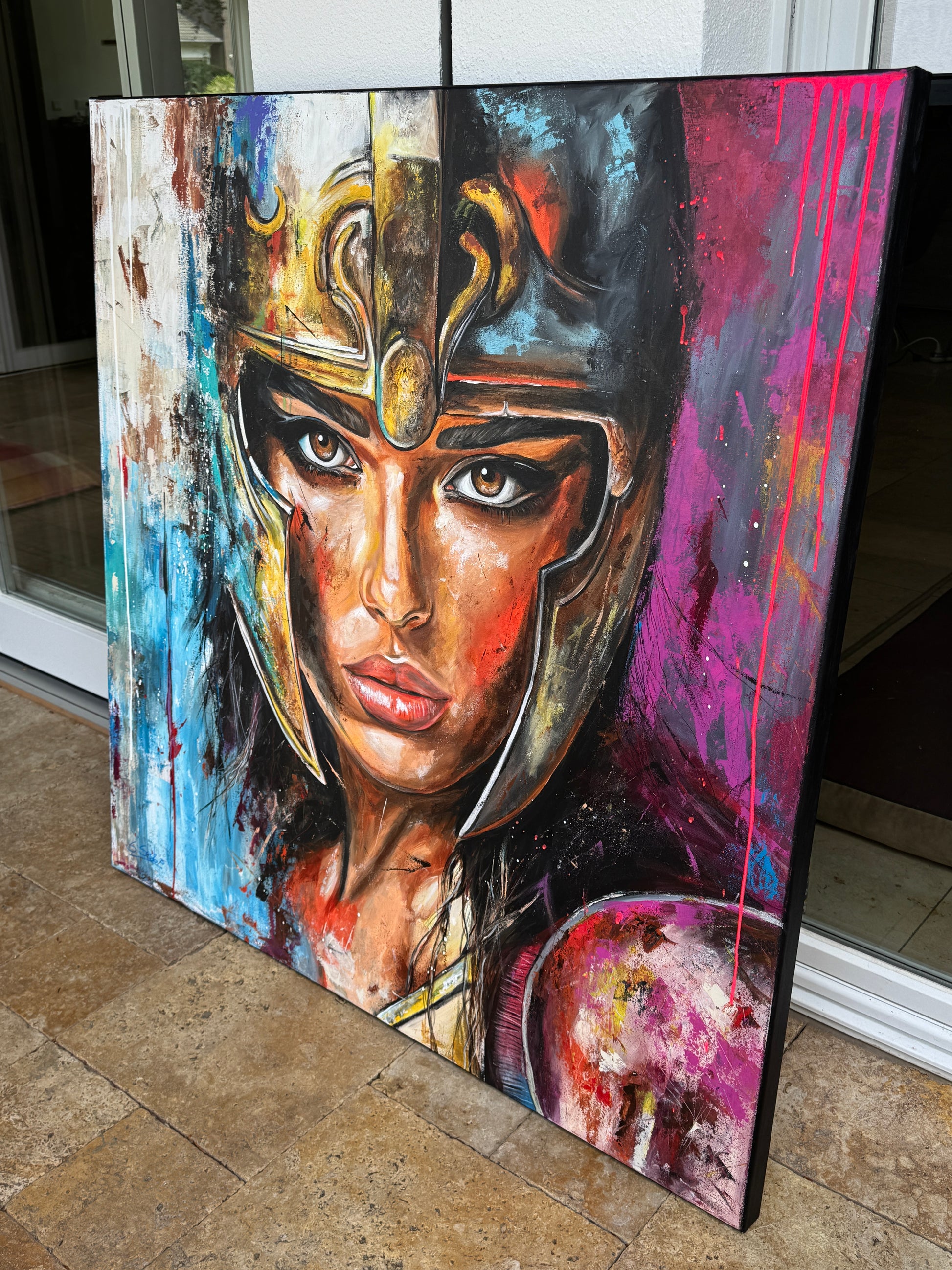 Dieses Werk soll den Betrachter inspirieren und motivieren, seine eigenen inneren oder auch äußere Kämpfe mit Mut und Stärke anzugehen. Es bringt eine leidenschaftliche und kraftvolle Energie in jedes Zuhause.