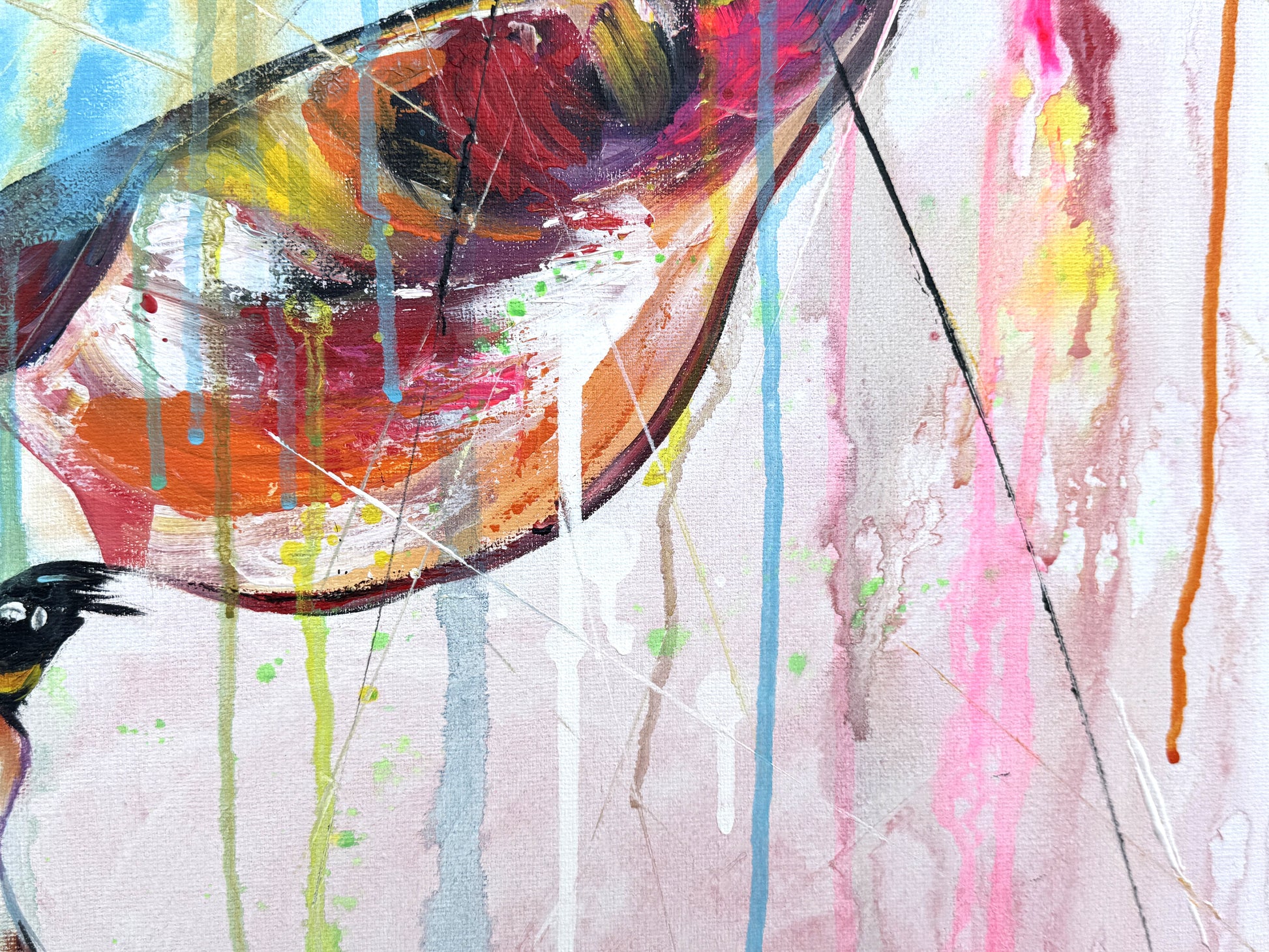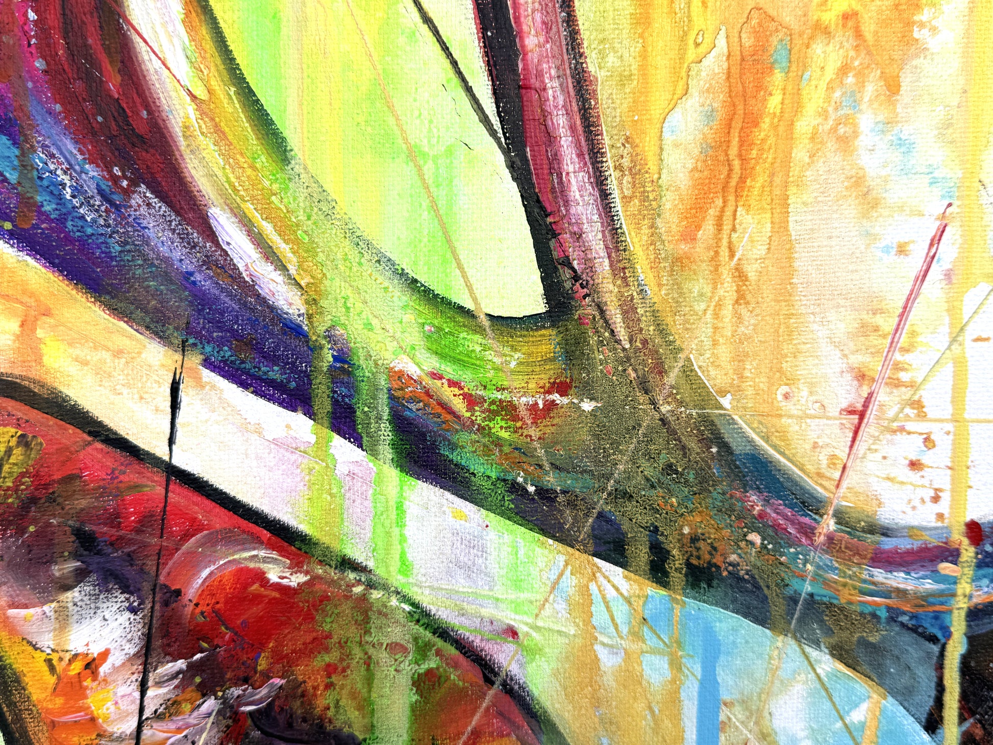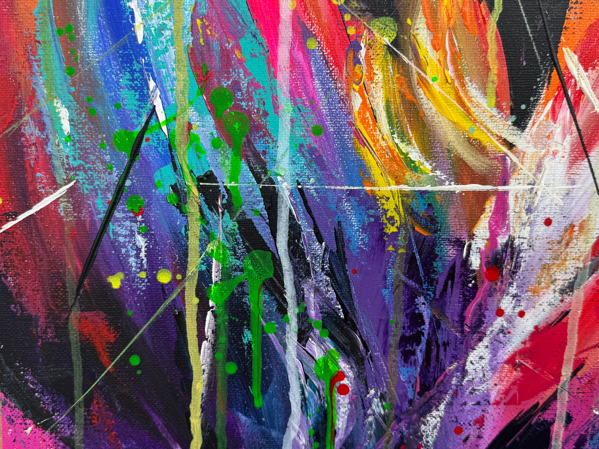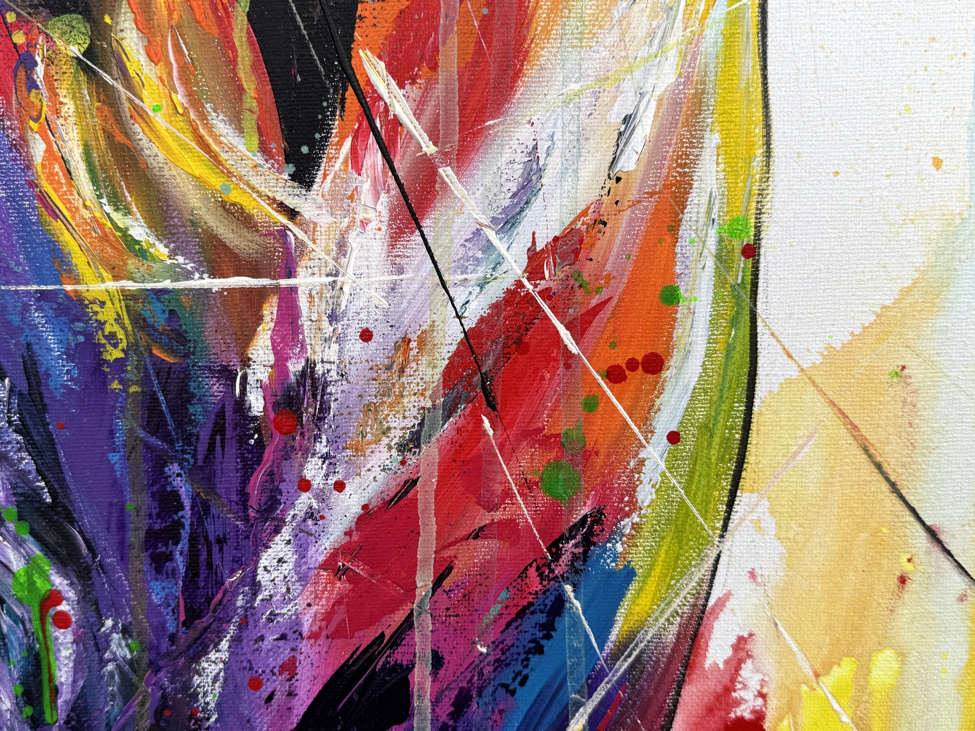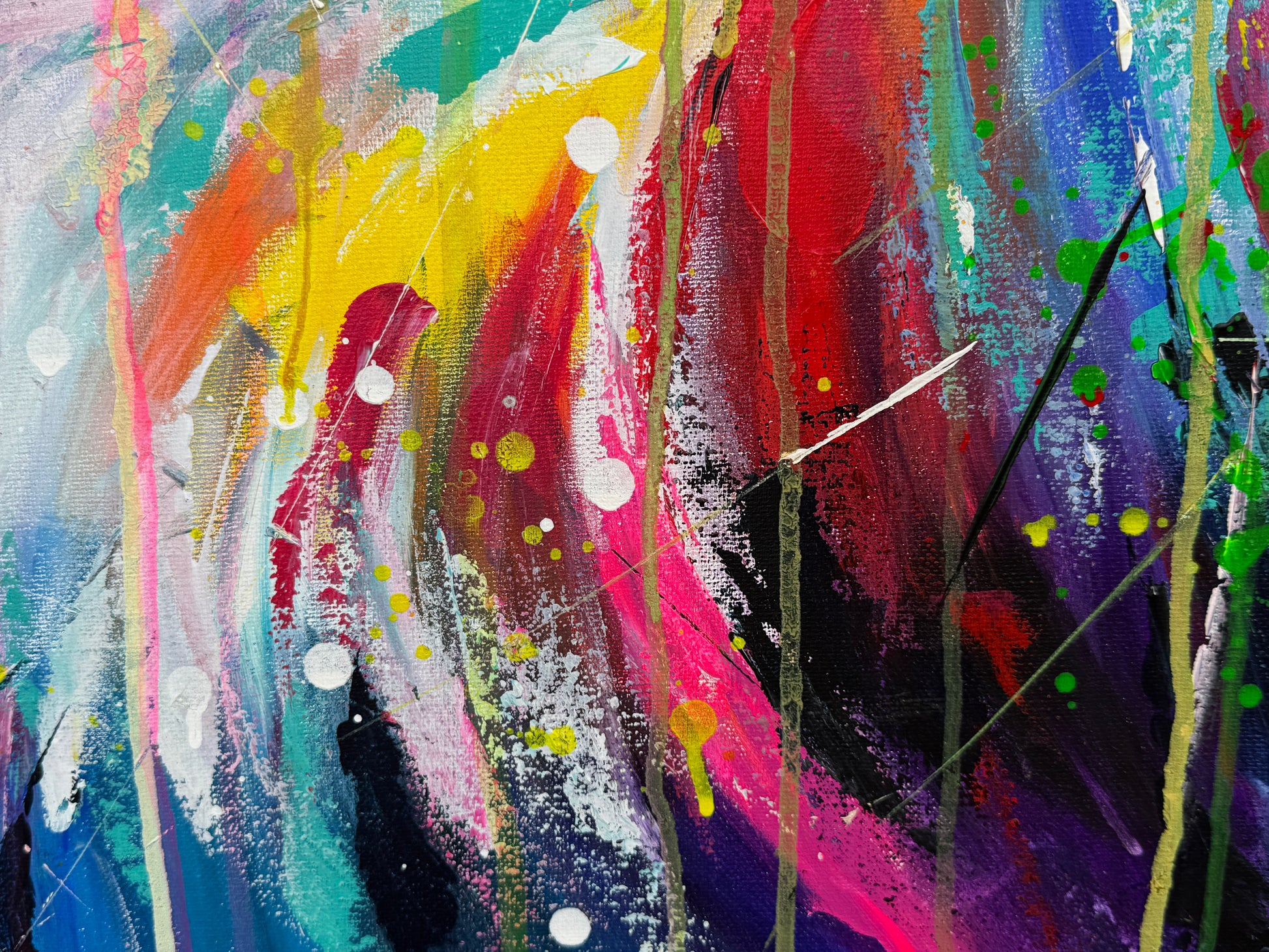 Der weiße Hirsch ist so selten wie ein Einhorn. In Deutschland gibt es schätzungsweise gerade mal 25 Exemplare. Als ich eines Tages über die Autobahn fuhr und ich meinen Blick schweifen ließ, sah ich auf der linken Seite im Feld eine Herde Rehe. Und ich hatte dass unfassbare Glück zu sehen, dass davon 2 weiß waren. Ich traute meinen Augen nicht und schaute nochmal zurück. Ich war so perplex, dass ich mir erst einredete, es könnten Alpakas gewesen sein. Aber ich habe sie vor meinem geisteigen Auge. Es waren tatsächlich 2 weiße Rehe. Ich fühlte mich gesegnet, sie gesehen zu haben und fühlte mich sofort inspiriert, einen weißen Hirsch zu malen. Die kräftigen Farbtropfen und energetischen Striche spiegeln die Freiheit und den Geist der Natur wider. Sie sollen die Einzigartigkeit, das Besondere erkennen lassen. Diese Darstellung soll einen Hauch von Wildheit und Inspiration in jedes Zuhause bringen, das sie ziert, und stets an die Schönheit des Ungezähmten und Seltenen erinnern.