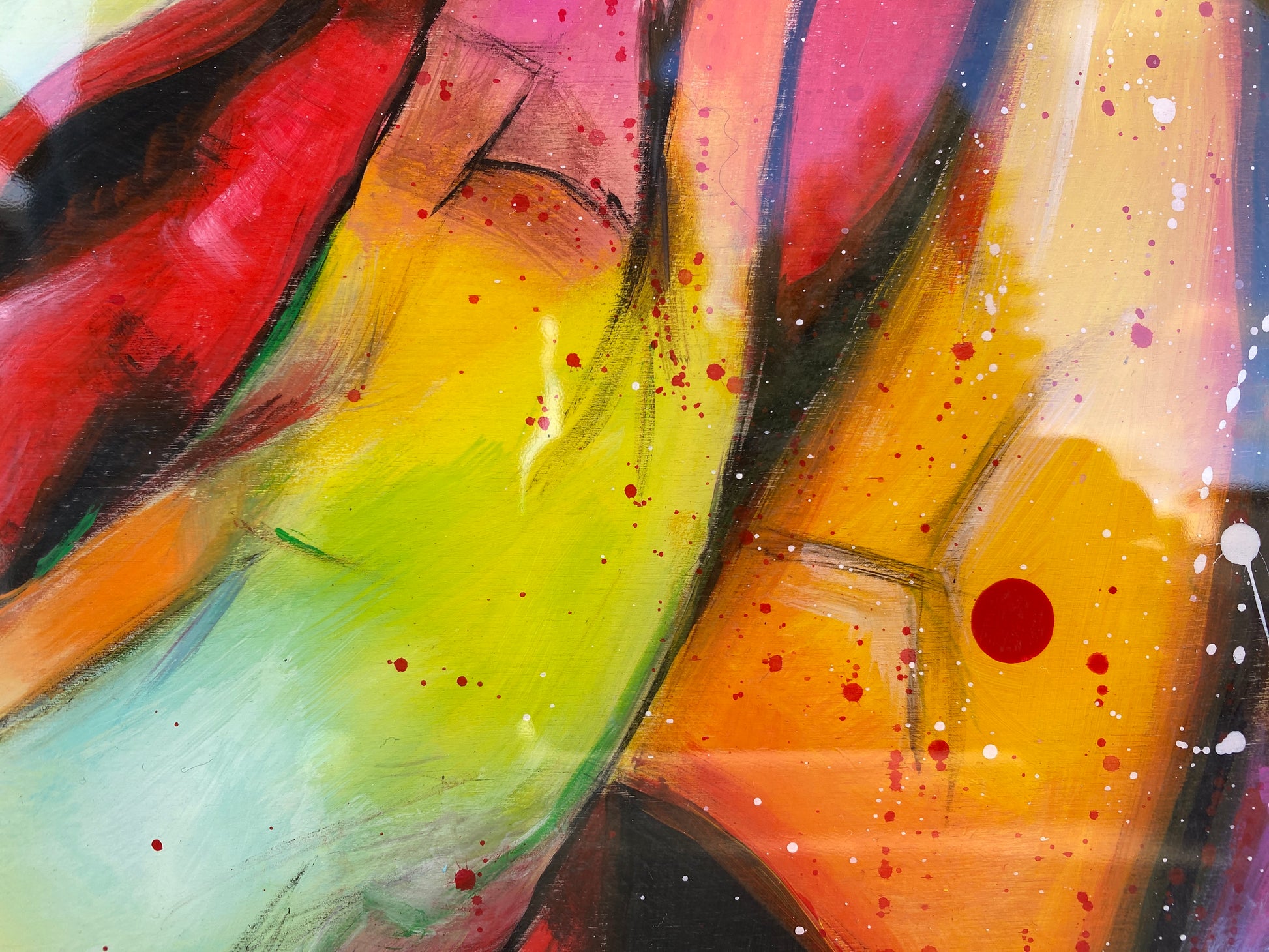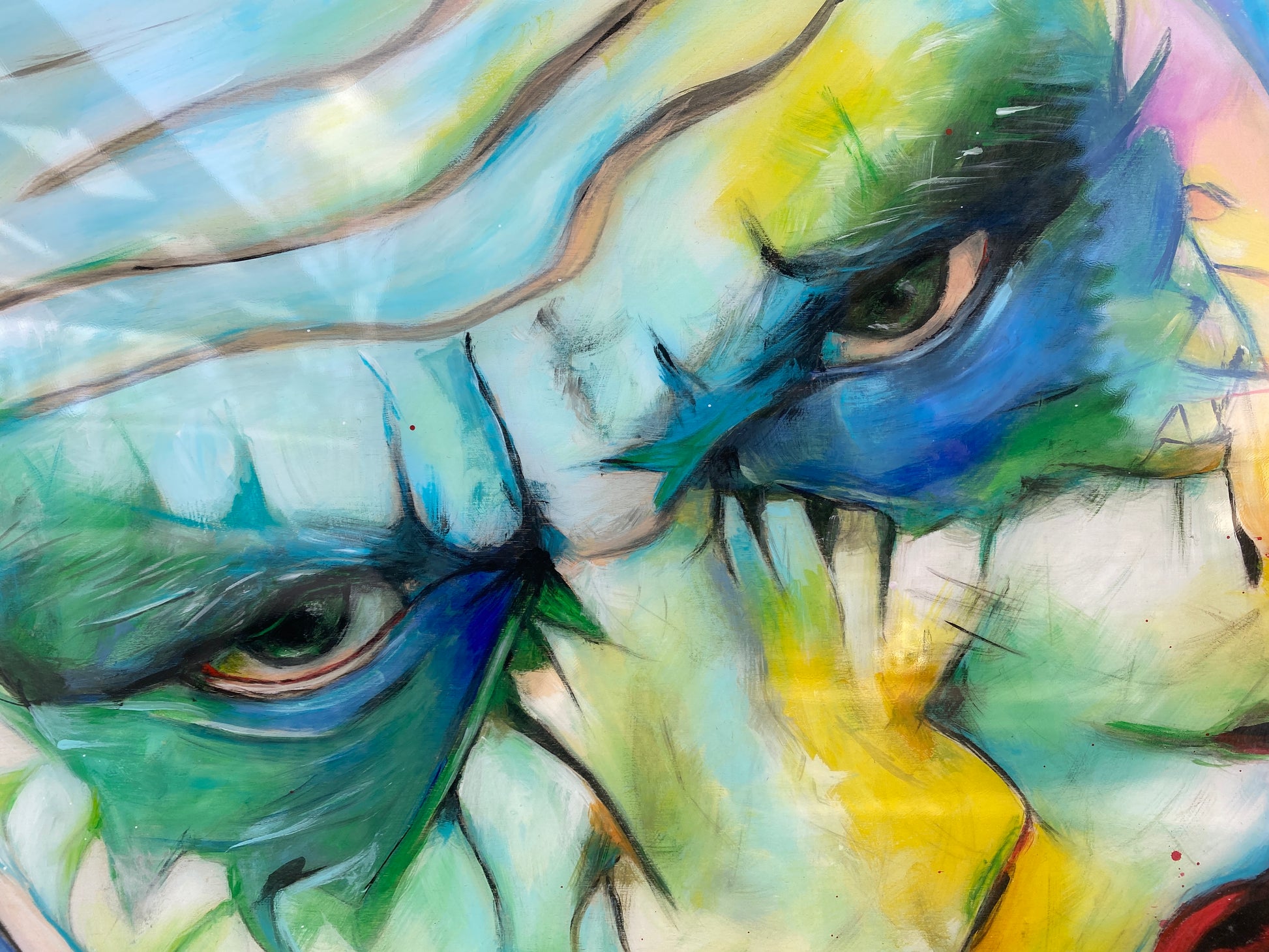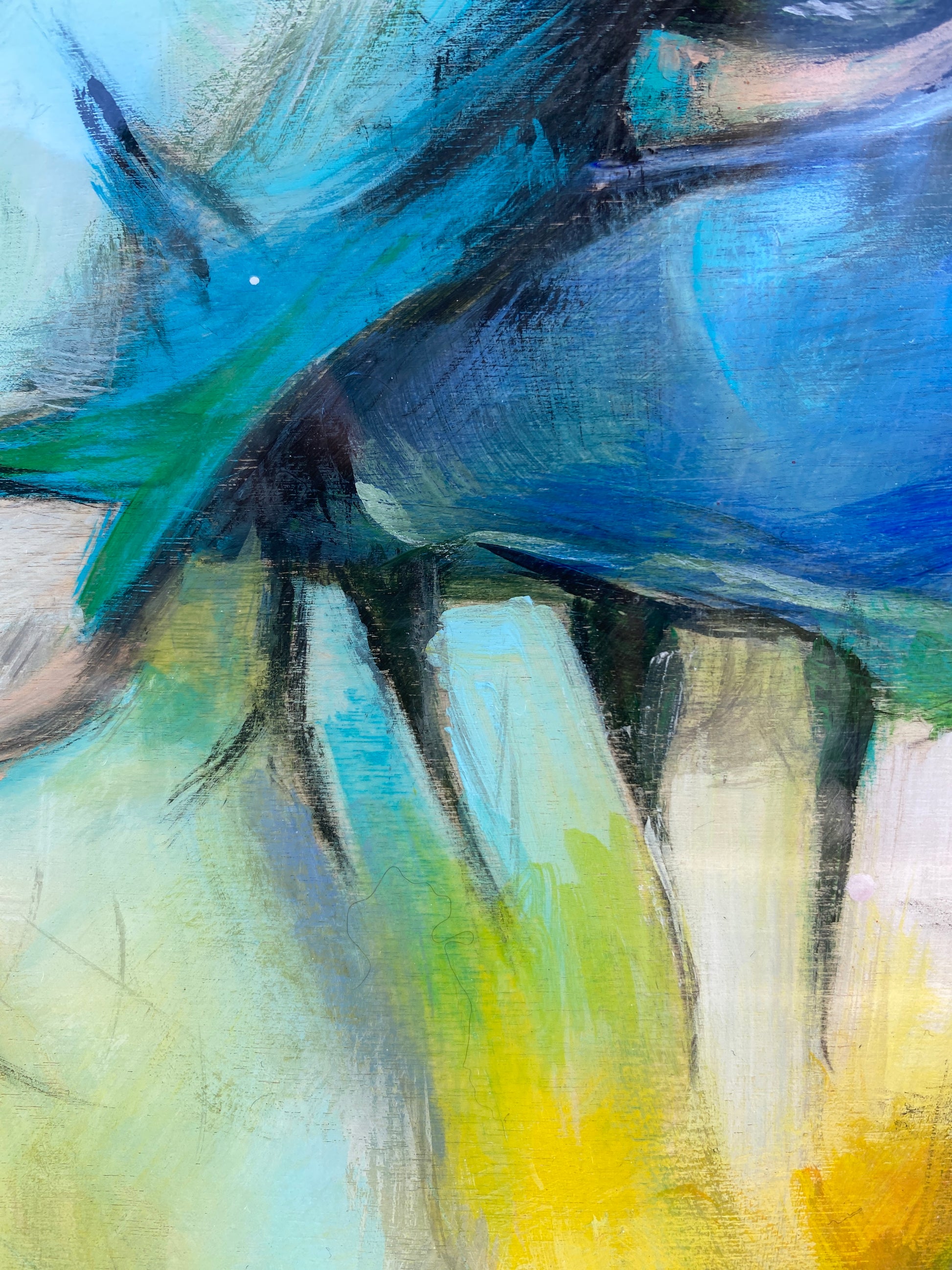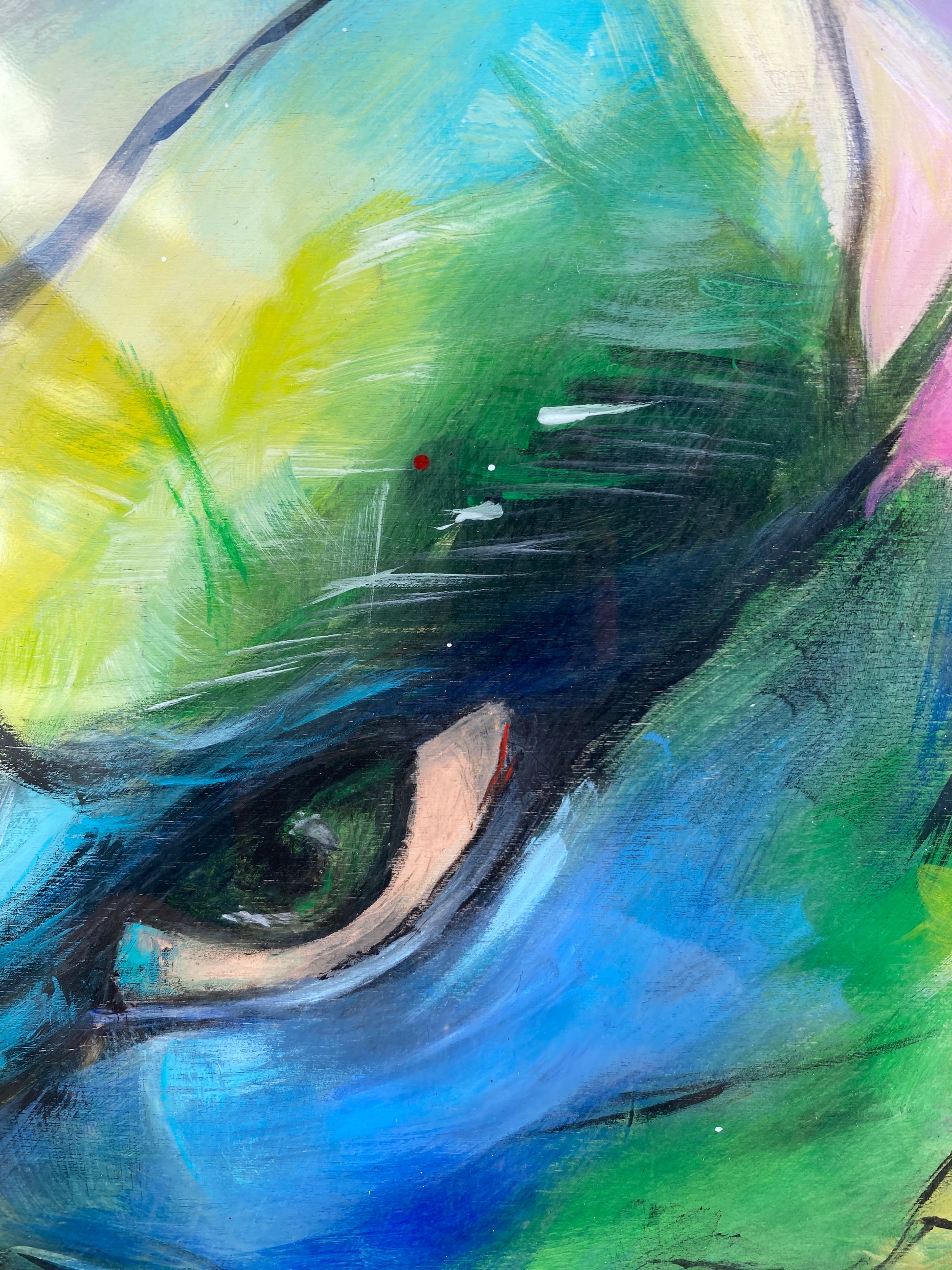 Gemalt wurde mit Acryl auf einer Holzleinwand. Diese besteht zu 100 % aus Holz und ist aufgebaut wie eine Leinwand, die auf einem Keilrahmen aufgezogen ist.