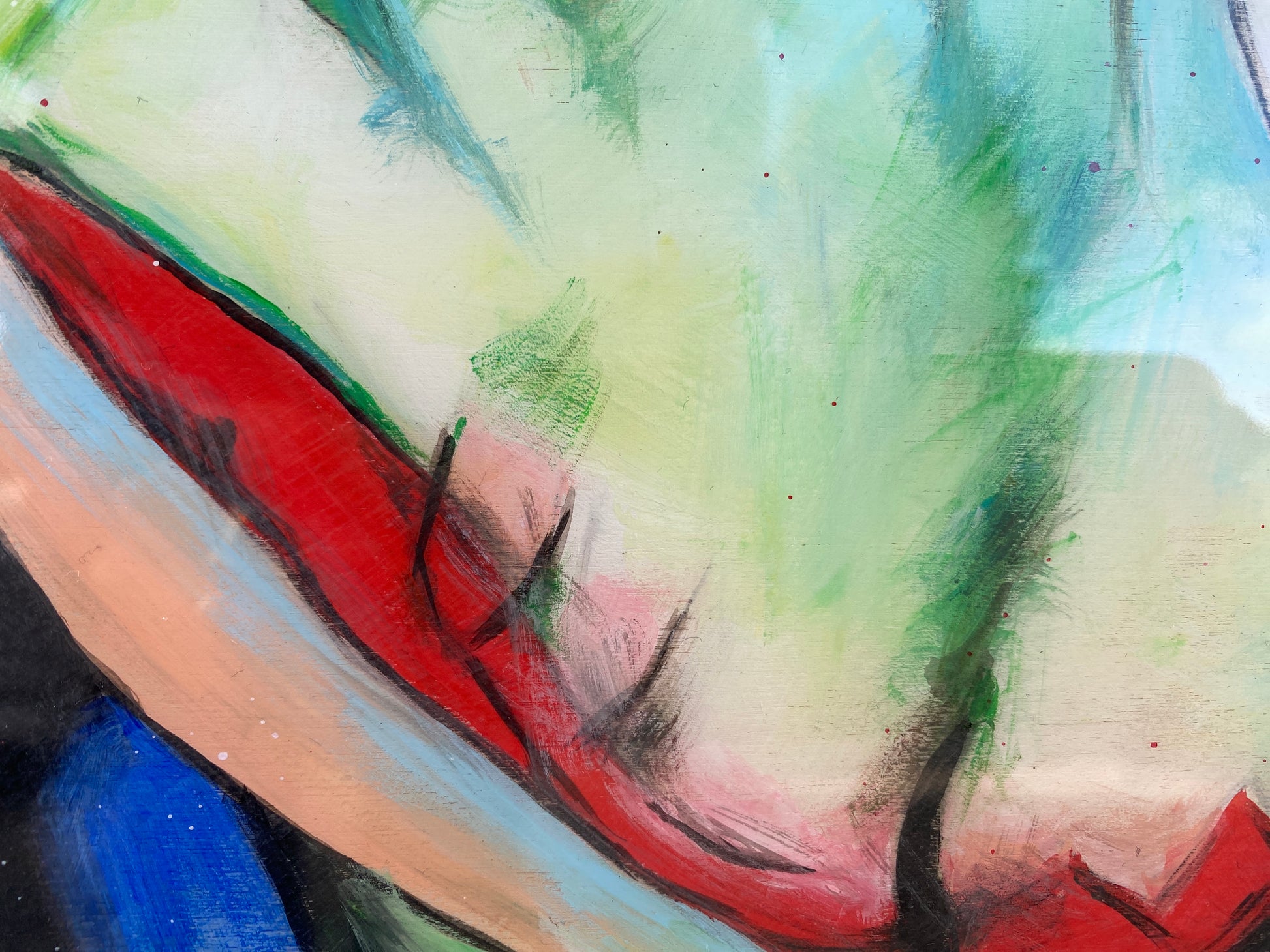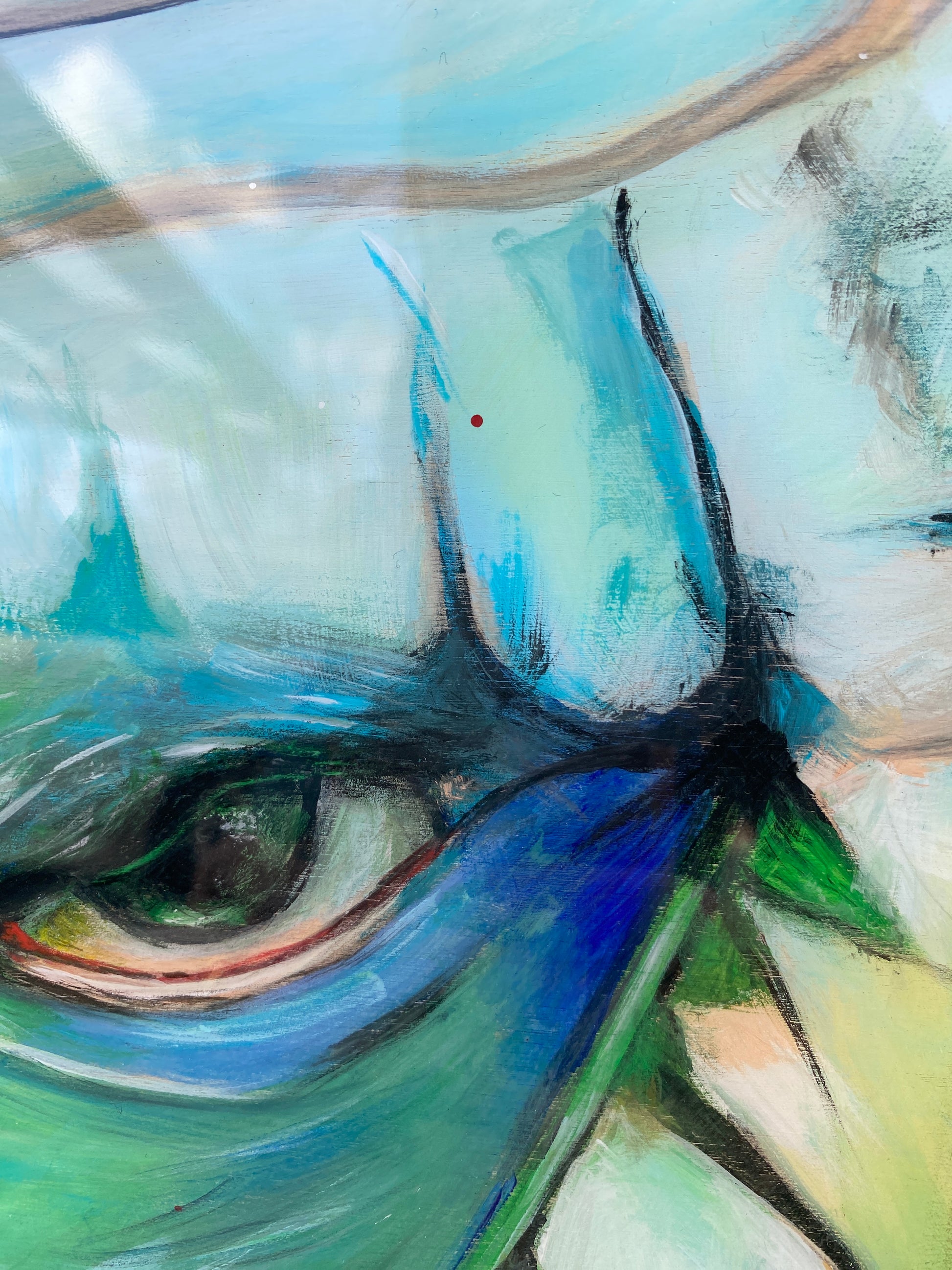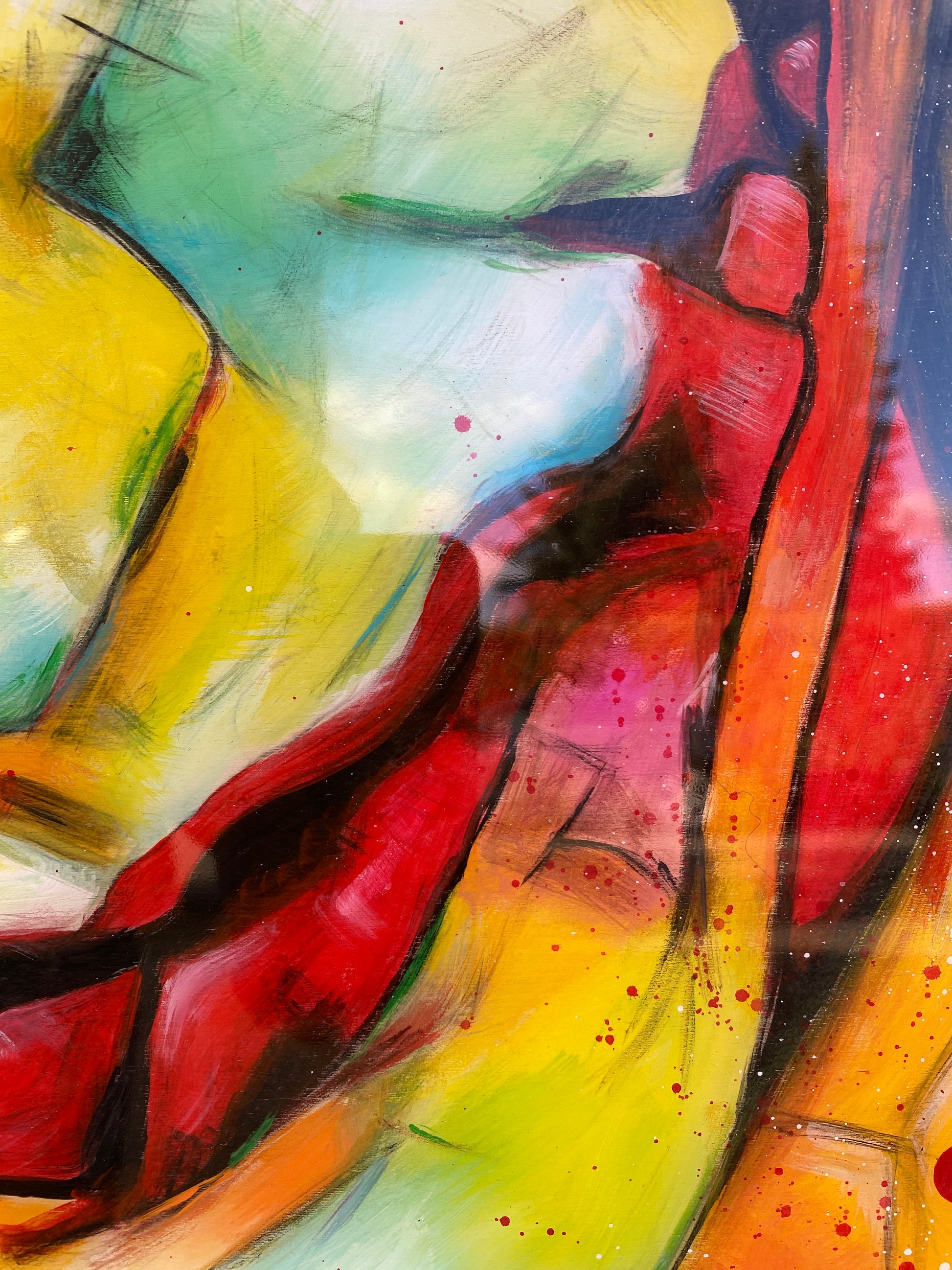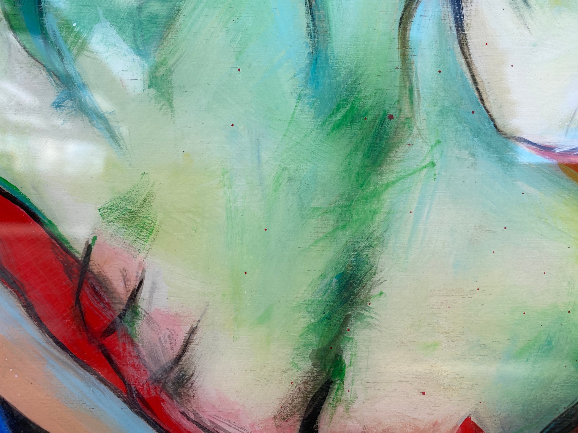 Gemalt wurde mit Acryl auf einer Holzleinwand. Diese besteht zu 100 % aus Holz und ist aufgebaut wie eine Leinwand, die auf einem Keilrahmen aufgezogen ist.