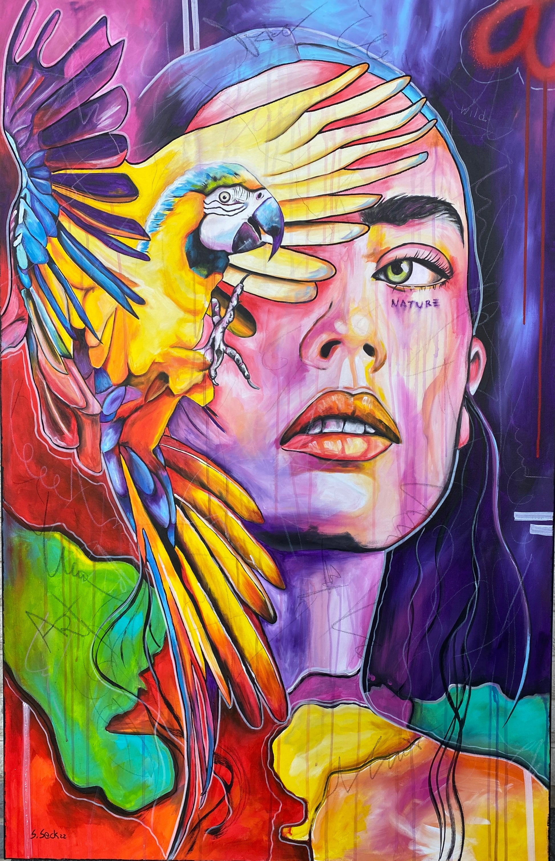 Die Wildheit beider Spezies in einem wunderbaren Werk in prachtvollen Farben zusammengefügt.